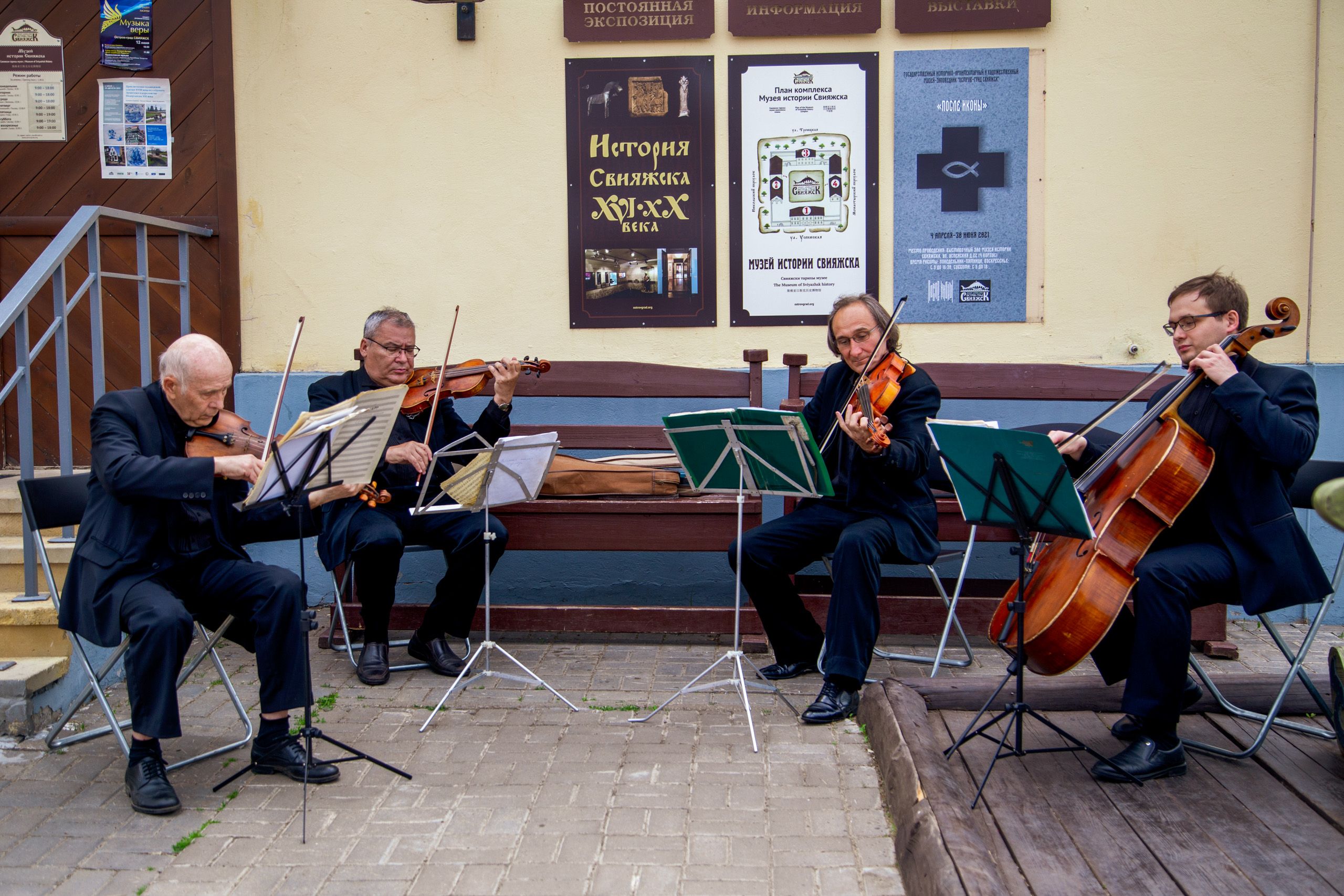 На площадке под открытым небом перед Музеем истории Свияжска прозвучала камерная музыка в исполнении Государственного струнного квартета РТ.