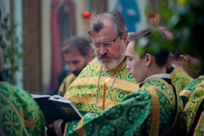 Желаю всем нам всегда быть верными Богу, быть носителями Его благодати, которая сегодня снизошла на святых апостолов. Апостол Павел говорит, что благодать надо возгревать, то есть постоянно поддерживать. Мы вскипятили воду, у нас есть кипяток, но он быстро остынет. Через час вода будет в одном состоянии, через десять часов — в другом. Нужно, чтобы благодать Божия всегда теплилась в нашем сердце как лампадка.