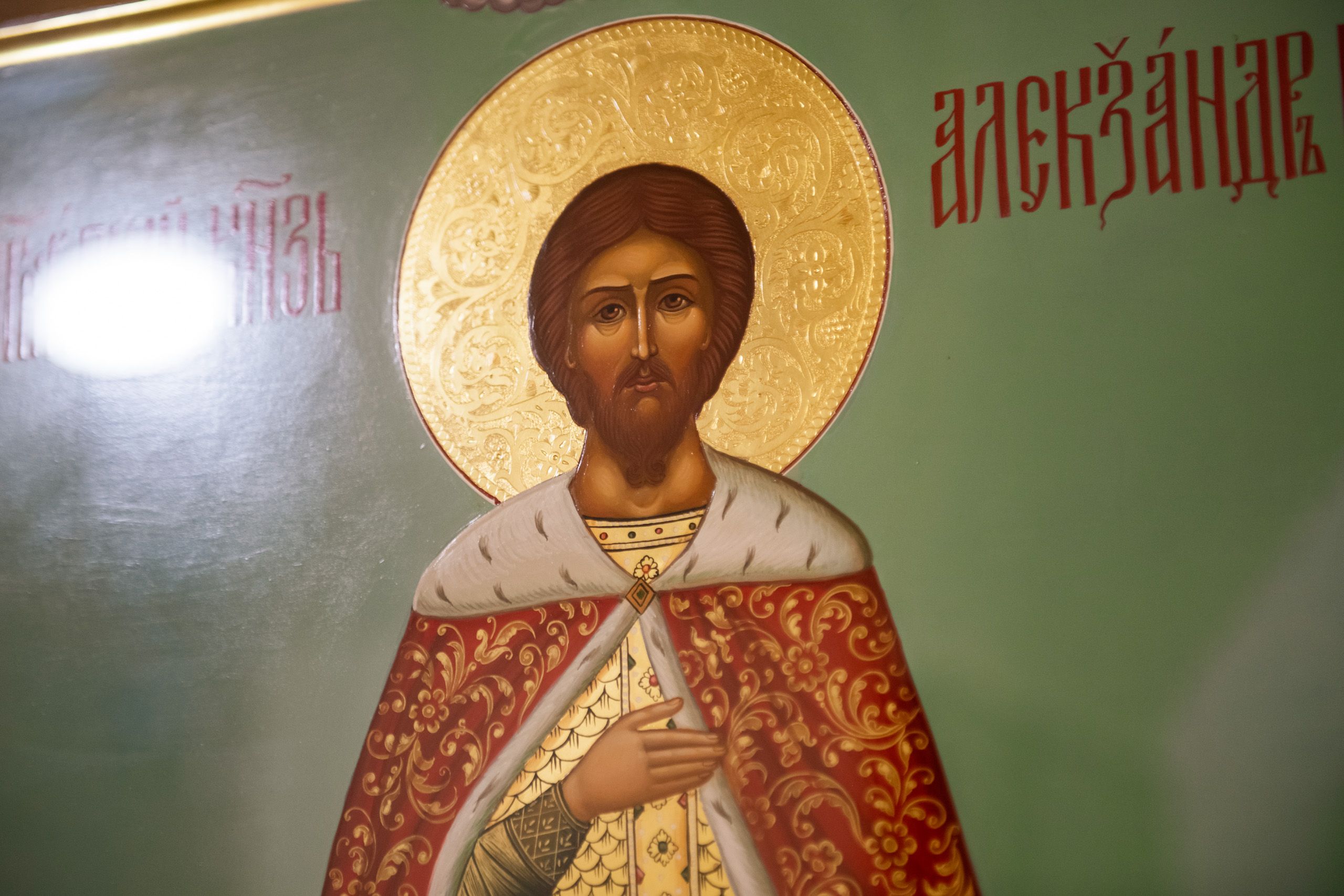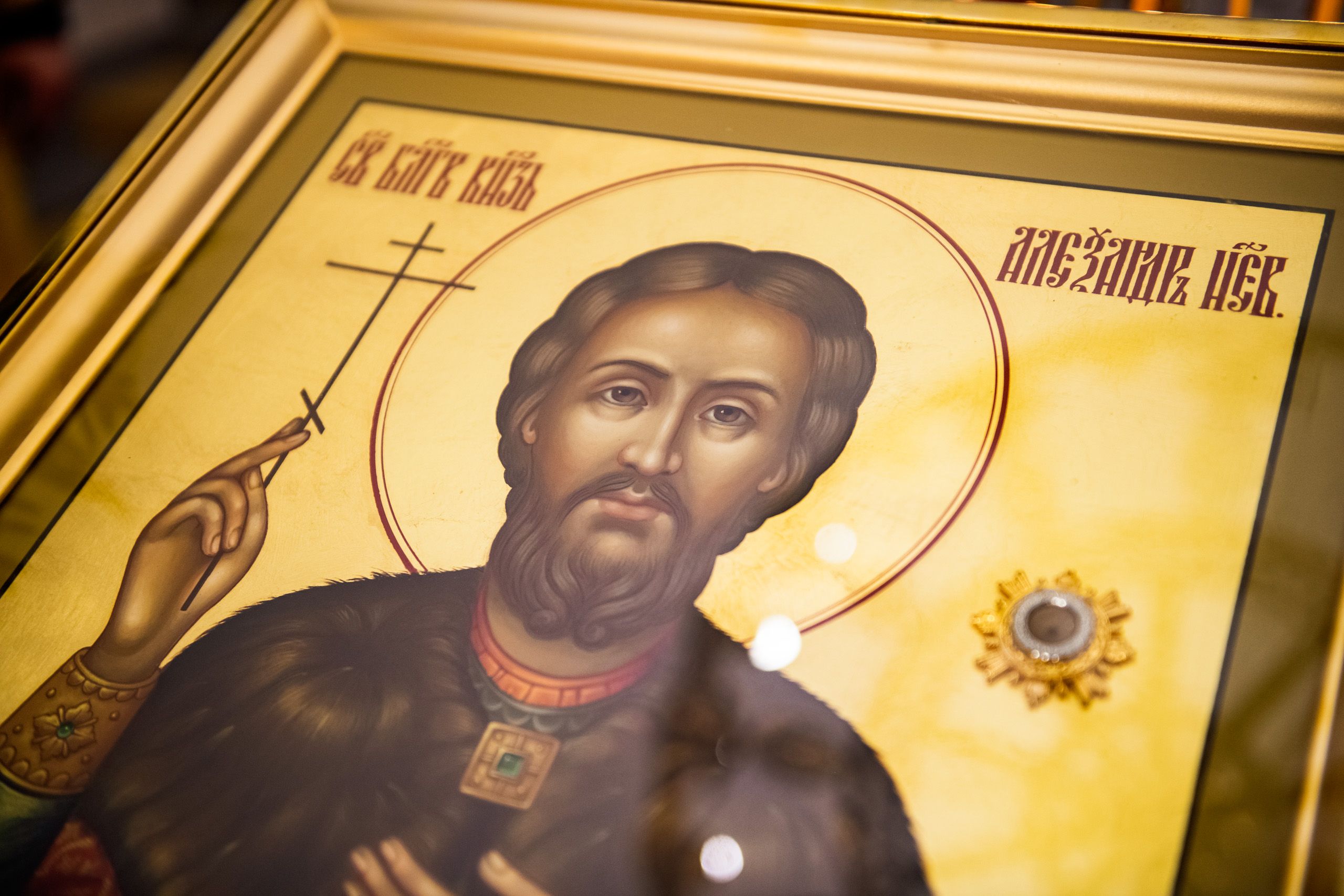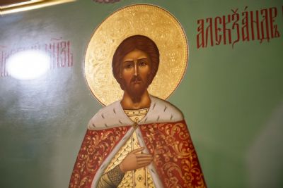Под пение тропаря благоверному князю икона была внесена в храм и возложена на центральный аналой. Митрополит Кирилл и митрополит Марк совершили полиелей. Духовенство пропело величание святому Александру и всем святым, в земле Русской просиявшим.