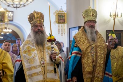По завершении службы владыка Кирилл и владыка Марк преподали верующим благословение.