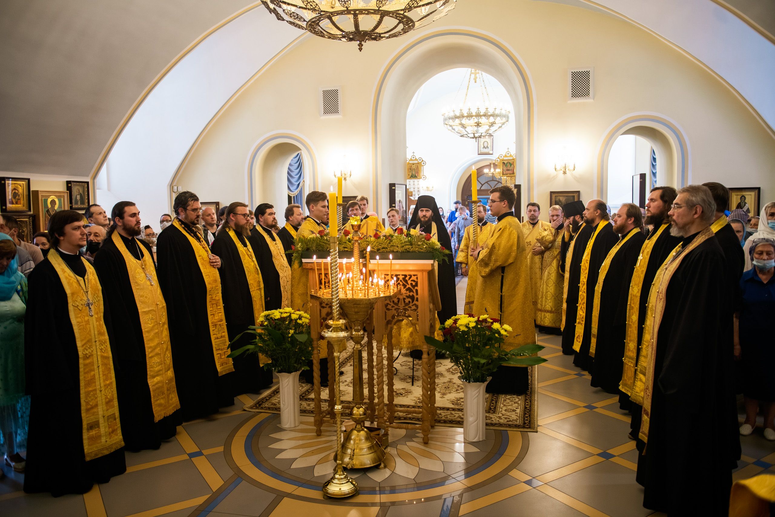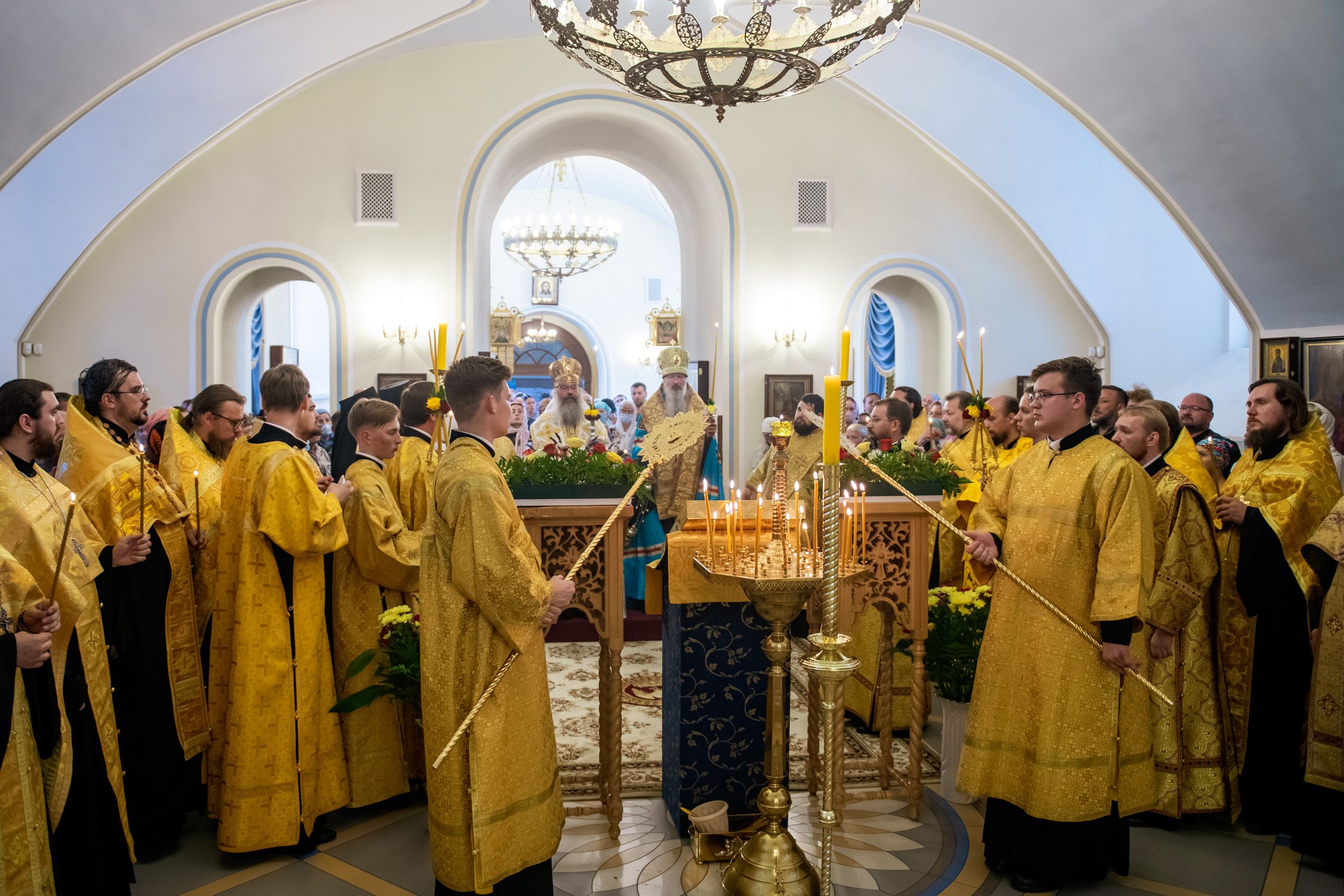 Его Высокопреосвященству сослужили секретарь Татарстанской митрополии иеромонах Кирилл (Корытко), настоятель прихода протоиерей Владимир Пономарев, иеромонах Алексий (Яцейко), настоятель Успенского храма посёлка Дербышки протоиерей Алексий Краевский, первый проректор Казанской духовной семинарии протоиерей Алексий Колчерин, настоятель казанского храма святых мучениц Веры, Надежды, Любови и матери их Софии протоиерей Александр Павлов, настоятель Казанско-Богородицкого храма посёлка Царицыно протоиерей Евгений Гаврилкин, благочинный Пестречинского церковного округа иерей Ярослав Петрущенков, благочинный Высокогорского церковного округа иерей Александр Ермолин, духовенство города Казани.