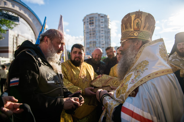 Дорогой владыка Марк! Сердечно благодарим Вас за тот подвиг, который Вы вместе со своими друзьями приняли на себя, проехав большую часть нашей страны, благословляя образом святого Александра Невского разные уголки нашей Родины, которые соприкасались крестному ходу. Мы видим особое Божие благословение в том, что святой благоверный князь Александр Невский как заступник нашего Отечества сегодня шествует по всей земле Русской, которая так нуждается в печаловании и заботе.