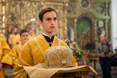 Песнопения исполнил архиерейский мужской хор под управлением Дениса Рогова.