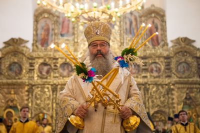 Я приветствую сегодня владыку Лонгина, митрополита Симбирского и Новоспасского. Мы с ним соседи; в соседних епархиях мы трудимся с недавних пор, а знаем друг друга очень давно. Глубоко почитаю владыку Лонгина и владыку Нила, который прибыл к нам из древнего города Мурома. Выражаю признательность владыке Иннокентию, который трудится и молится на нашей земле и, в частности, в этой святой обители.