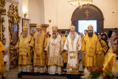 Архипастырям сослужили секретарь Татарстанской митрополии иеромонах Кирилл (Корытко), наместник Раифского монастыря игумен Гавриил (Рожнов), наместник Свияжского Успенского монастыря игумен Симеон (Кулагин), наместник Казанско-Богородицкого монастыря игумен Марк (Виленский), настоятель Кизического монастыря игумен Пимен (Ивентьев), наместник Вознесенского Макарьевского монастыря иеромонах Амвросий (Горновский), иеромонах Алексий (Яцейко), братия Раифской обители в священном сане, клирики Казанской, Симбирской и Муромской епархий.