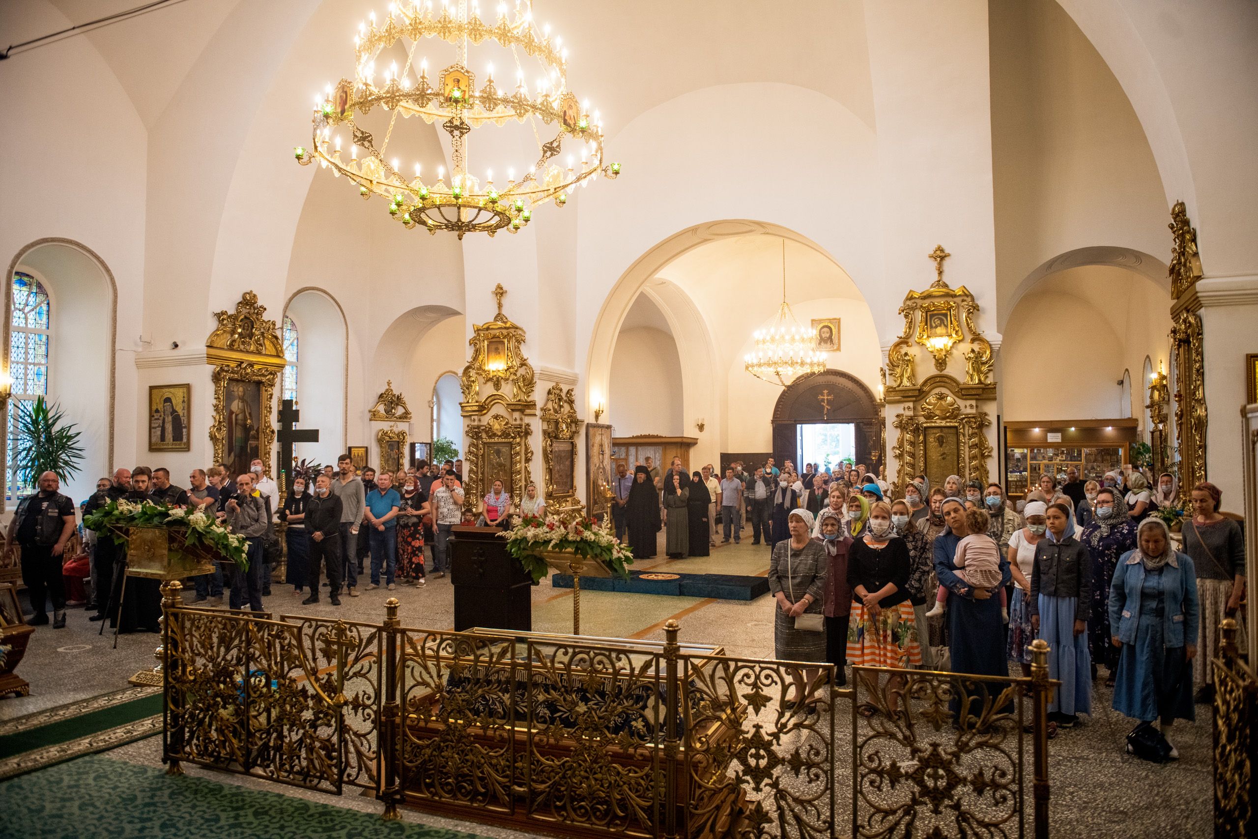 За Литургией молились насельники обители, жители Казани и Зеленодольского района Республики Татарстан, паломники, участники крестного хода с образом святого благоверного Александра Невского, следующие из Владивостока в Санкт-Петербург.