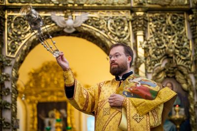 Проповедь по запричастном стихе произнёс иеромонах Антоний (Панькин).
