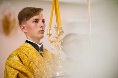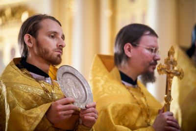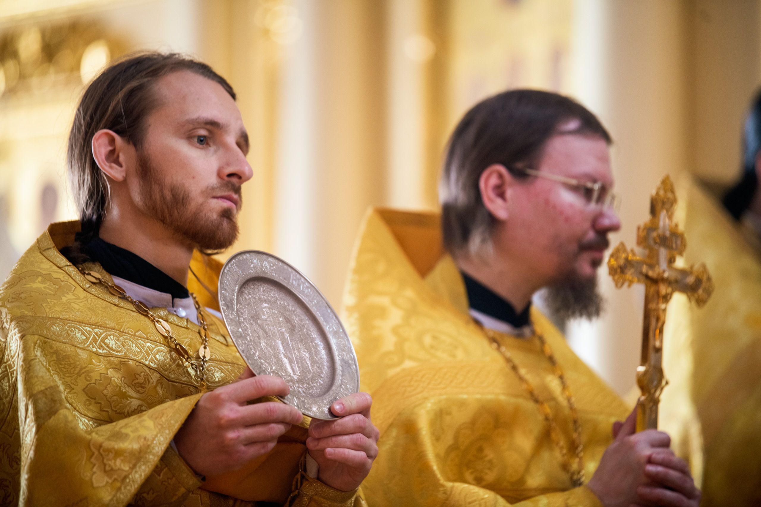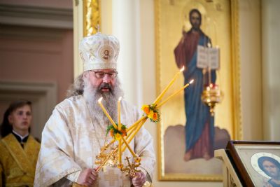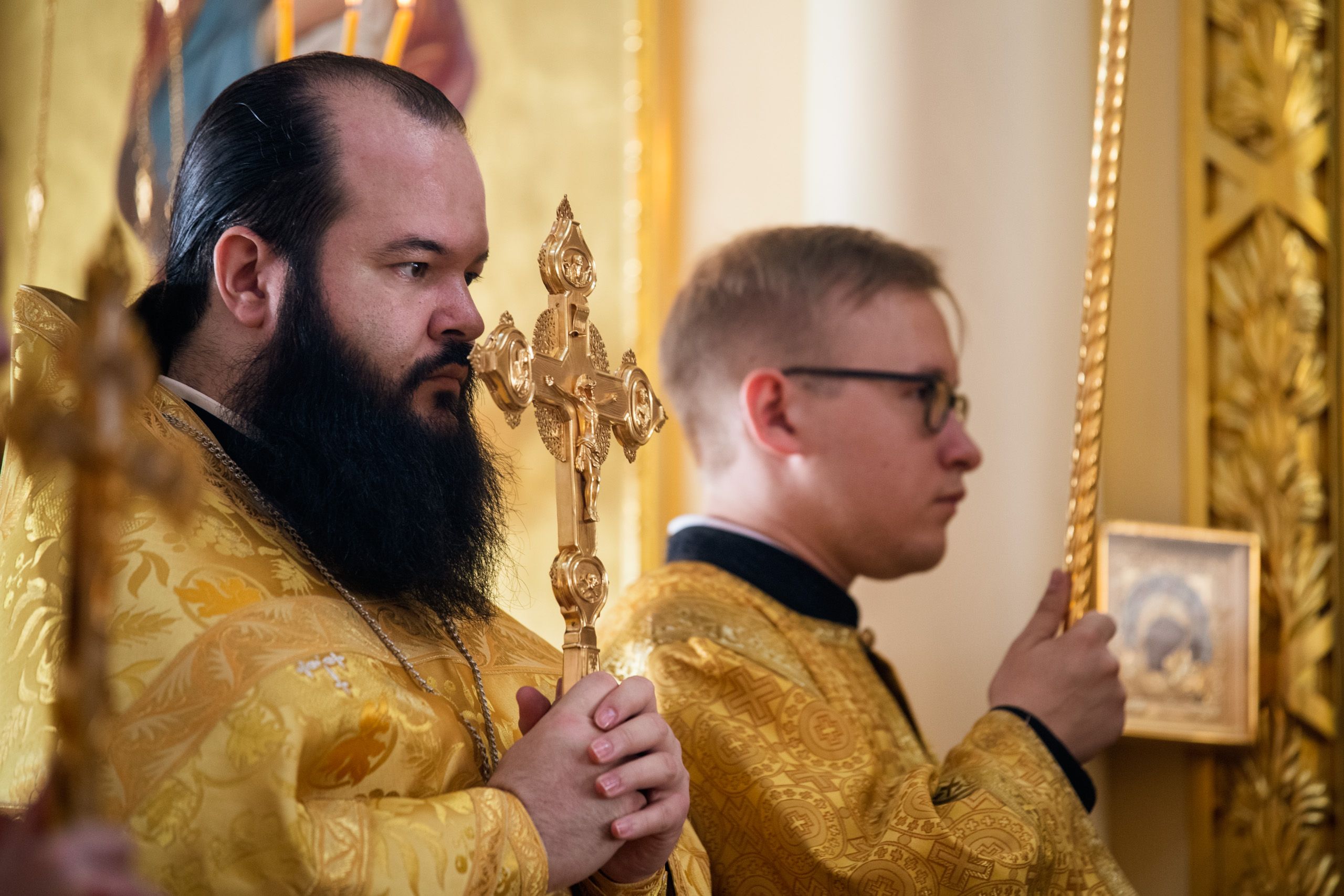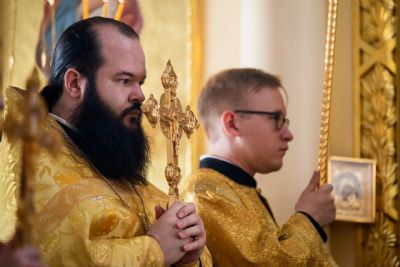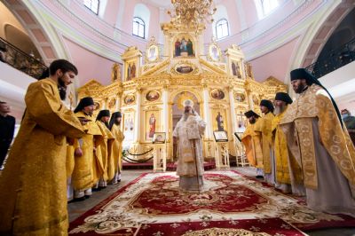 За Литургией Его Высокопреосвященству сослужили секретарь Татарстанской митрополии иеромонах Кирилл (Корытко), наместник Казанско-Богородицкого монастыря игумен Марк (Виленский), иеромонах Алексий (Яцейко), братия обители в священном сане.
