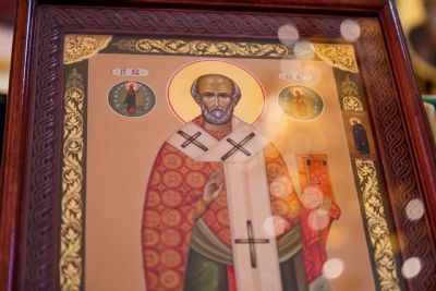 По запричастном стихе проповедь произнёс благочинный монастыря иеромонах Андрей (Сироткин). В завершение богослужения состоялось славление святителю Николаю.