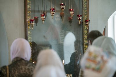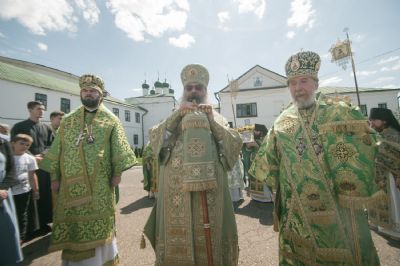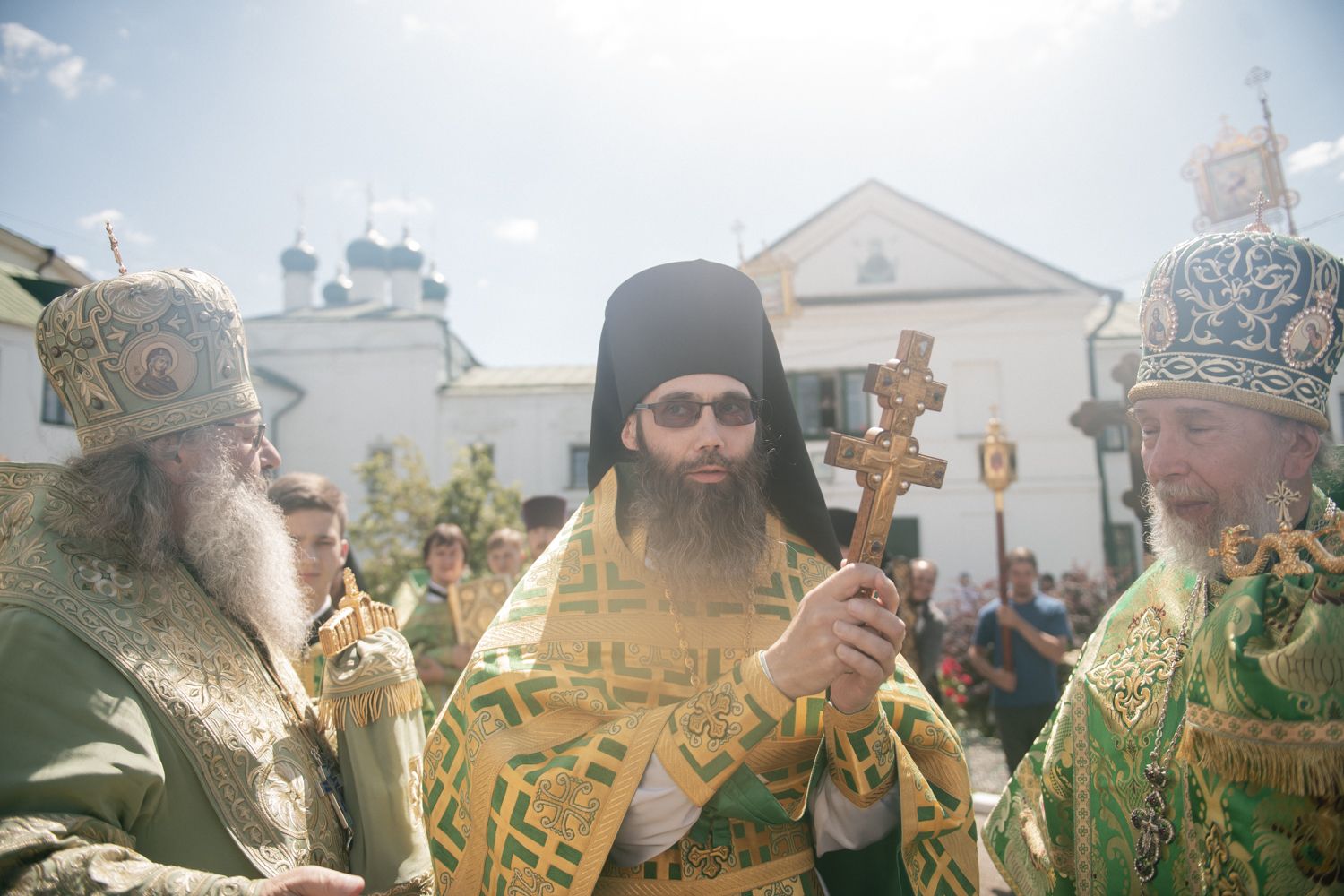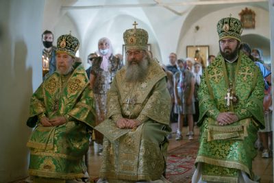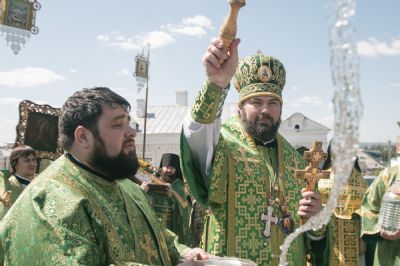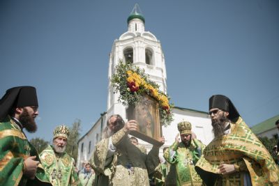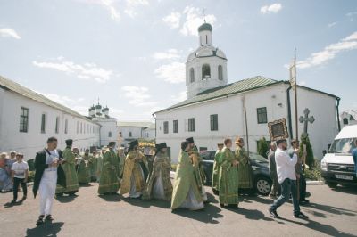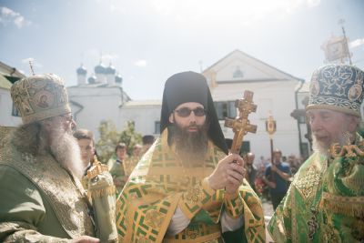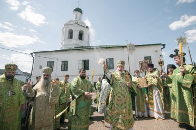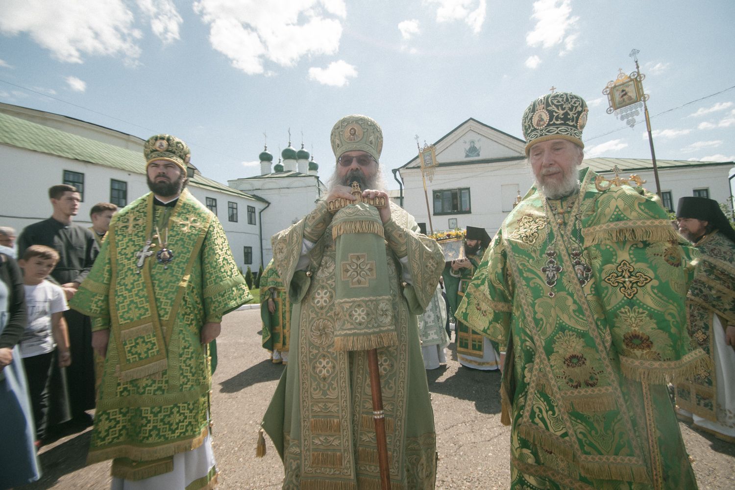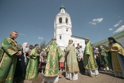 Буквально вчера мы совершали праздник перенесения мощей святителя Казанского Германа и переносили его святые мощи из Свияжского Иоанно-Предтеченского монастыря в Свияжский Успенский монастырь, основанный святителем. А сегодня мы совершили Литургию в Иоанновском монастыре, который святитель Герман построил здесь, у стен Казанского кремля, и где также почивают мощи этого угодника Божия.