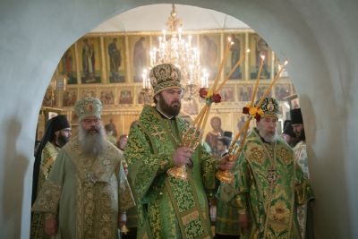 За Божественной литургией главе Татарстанской митрополии сослужили митрополит Анастасий (Меткин), епископ Альметьевский и Бугульминский Мефодий, секретарь митрополии иеромонах Кирилл (Корытко), настоятель Кизического монастыря игумен Пимен (Ивентьев), наместник Иоанно-Предтеченского монастыря иеромонах Гурий (Ананьев), иеромонах Алексий (Яцейко), братия обители в священном сане.