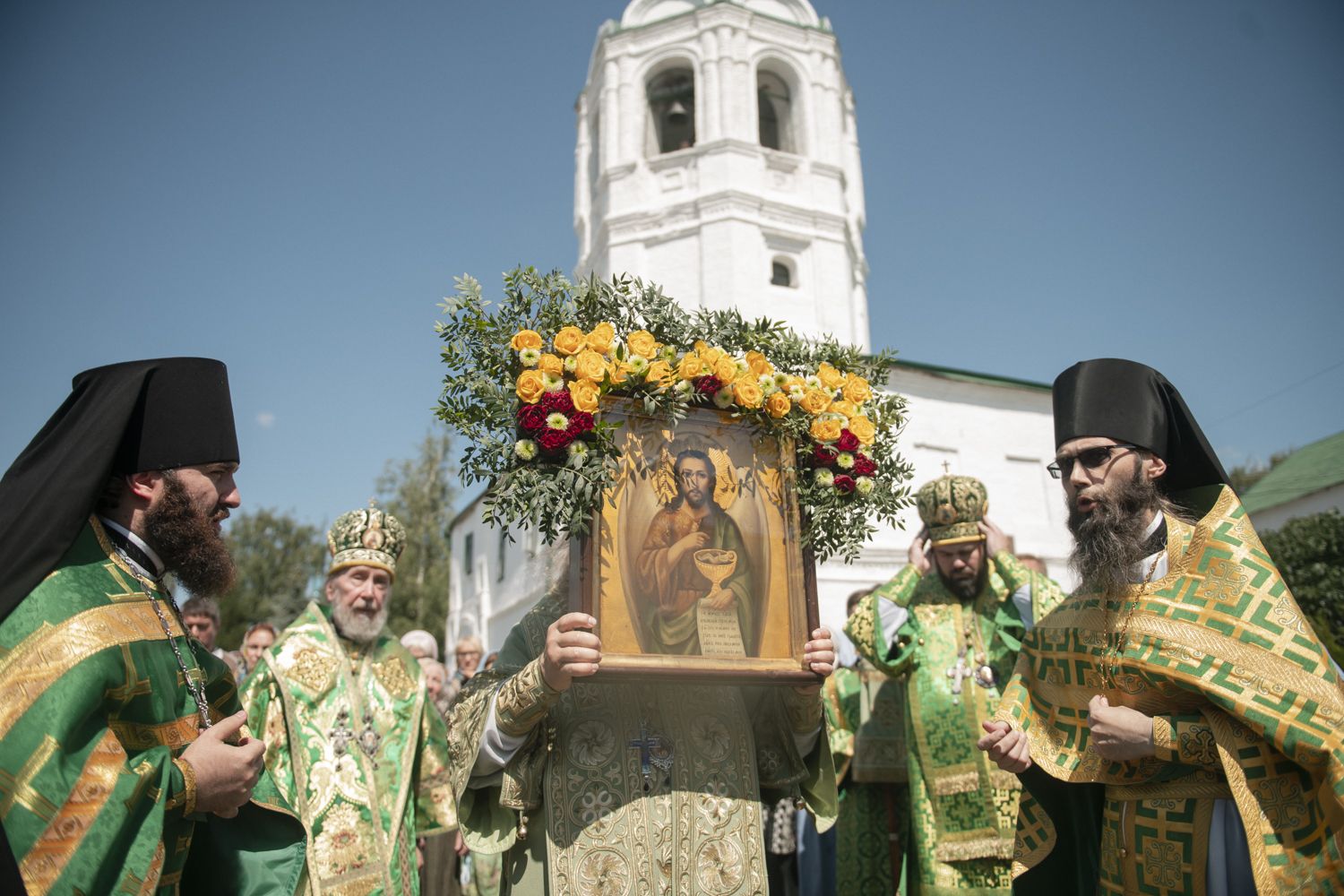 Богослужебные песнопения исполнил монастырский хор под управлением Ольги Ефимовой. По запричастном стихе проповедь произнёс иеромонах Иоанн (Илькин). После Литургии на территории обители состоялся крестный ход. Затем духовенство совершило славление Иоанну Предтече.