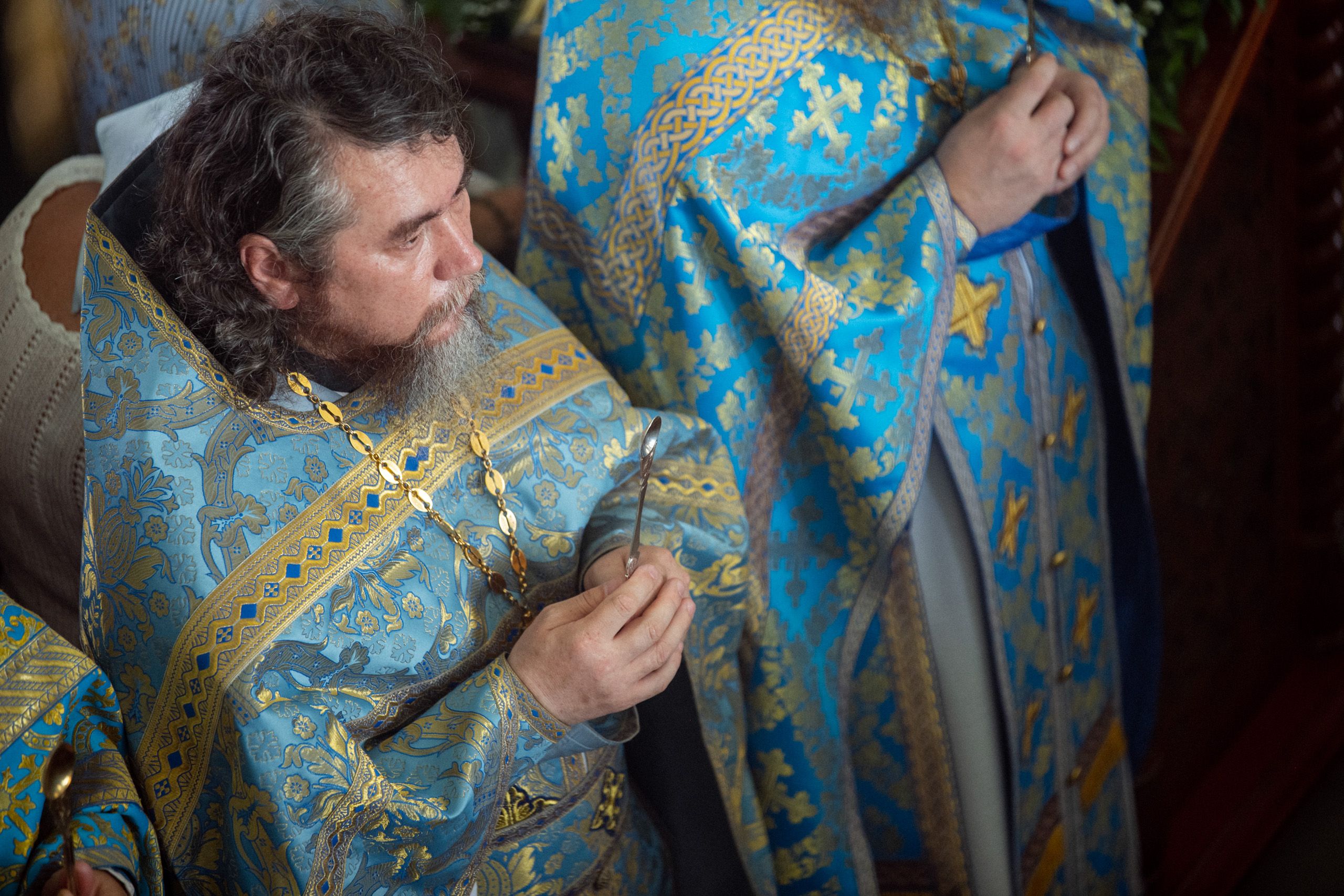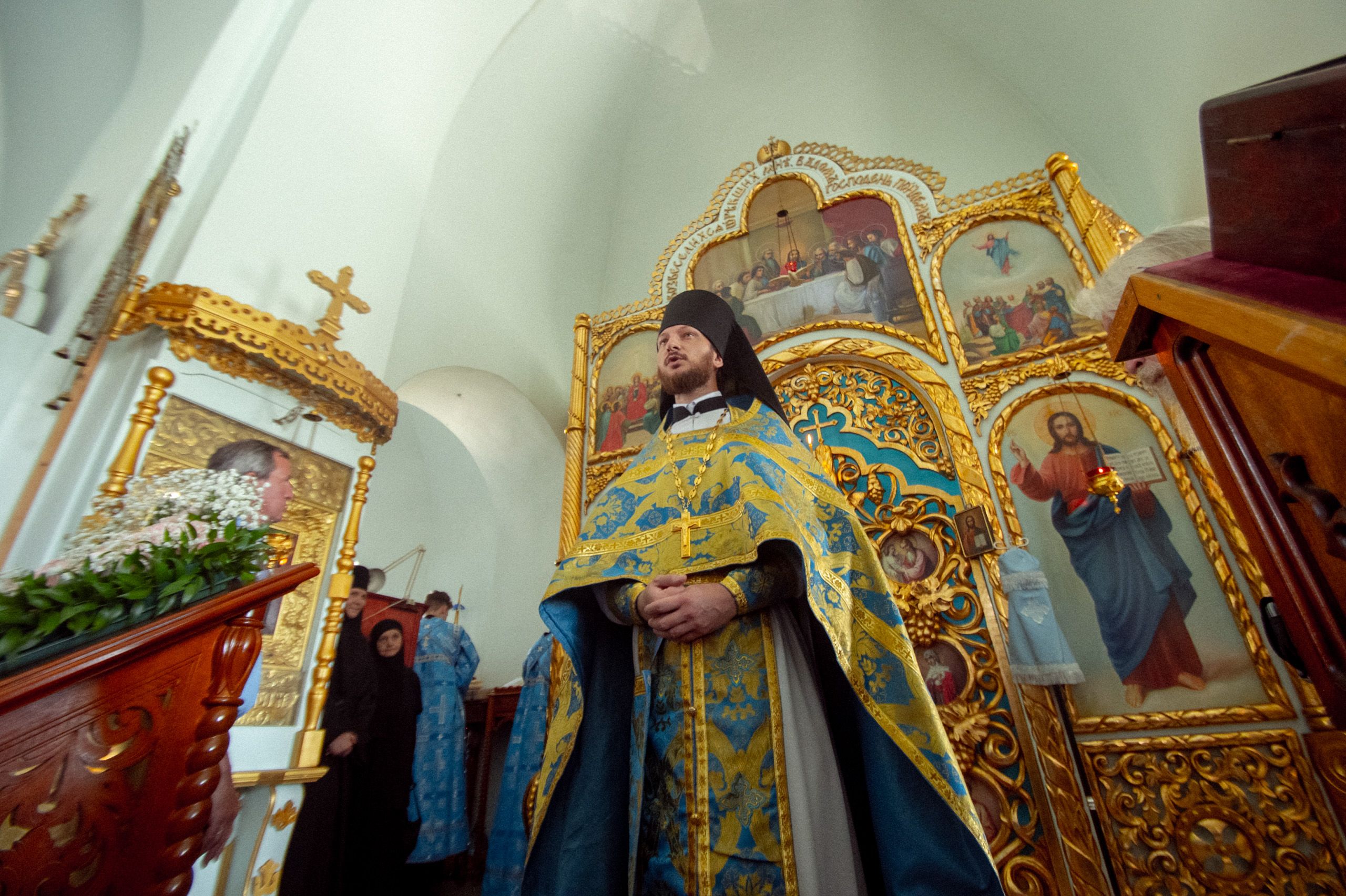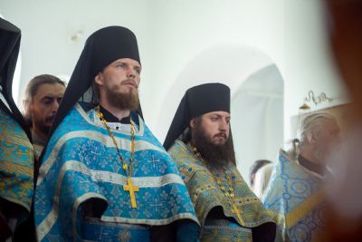За Литургией Его Высокопреосвященству сослужили секретарь митрополии иеромонах Кирилл (Корытко), настоятель Седмиезерного монастыря архимандрит Герман (Кузьмин), ректор Екатеринбургской духовной семинарии иеромонах Корнилий (Зайцев), наместник Свияжского Богородице-Успенского мужского монастыря игумен Симеон (Кулагин), наместник Раифского Богородицкого мужского монастыря игумен Гавриил (Рожнов), настоятель Кизического мужского монастыря игумен Пимен (Ивентьев), наместник Вознесенского Макарьевского мужского монастыря иеромонах Амвросий (Горновский), настоятель храма святого праведного Иоанна Кронштадтского при Казанской духовной семинарии иеромонах Филипп (Киселёв), иеромонах Алексий (Яцейко), братия пустыни в священном сане.