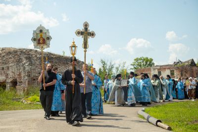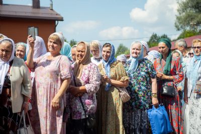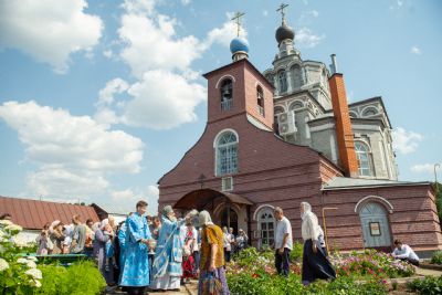 За богослужением пел архиерейский мужской хор под управлением Дениса Рогова. В храме молились монашествующие и паломники. Проповедь по запричастном стихе произнёс иеромонах Корнилий (Зайцев). По завершении Литургии духовенство и верующие прошли по территории обители крестным ходом; было совершено славление образу Богородицы.
