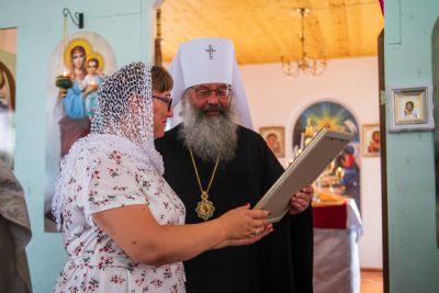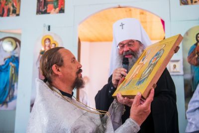 Митрополит Кирилл передал новоосвященному храму образ святых первоверховных апостолов Петра и Павла из кельи митрополита Феофана (Ашуркова), по благословению которого началось строительство Троицкой церкви. Владыка Кирилл также призвал настоятеля и прихожан храма сугубо молиться об упокоении души почившего архипастыря.