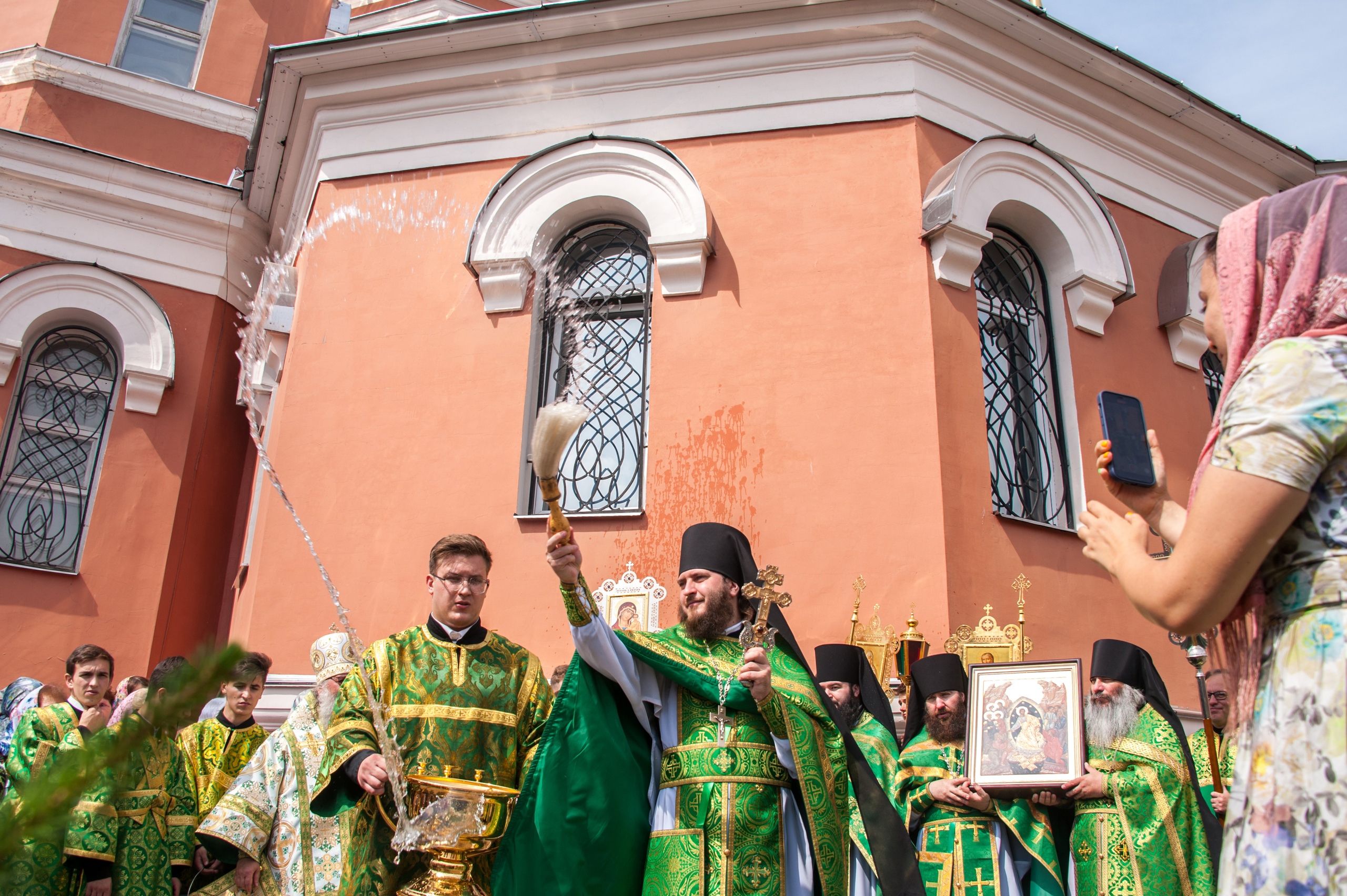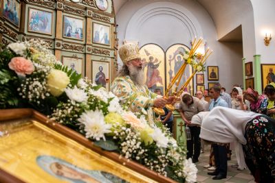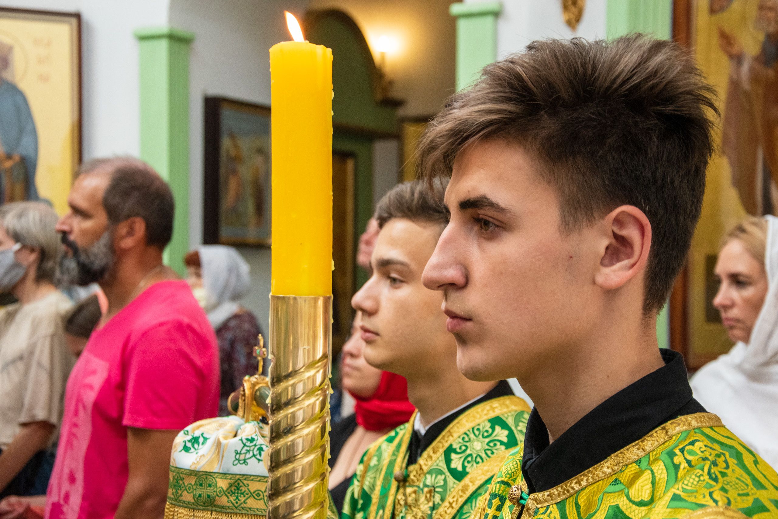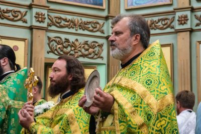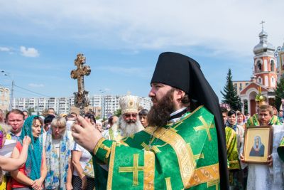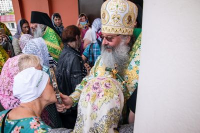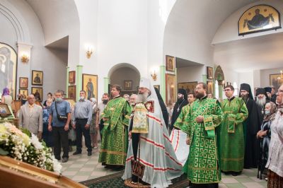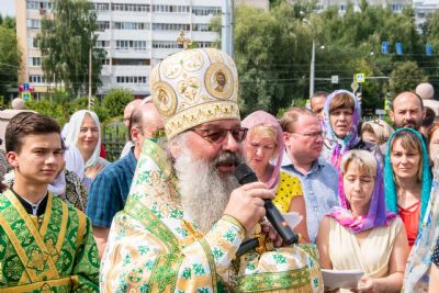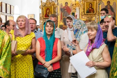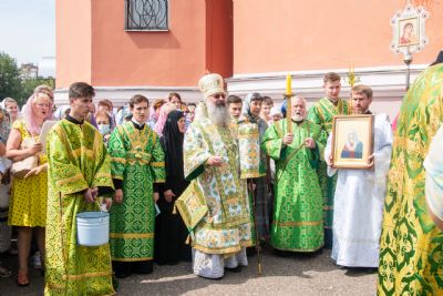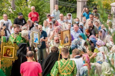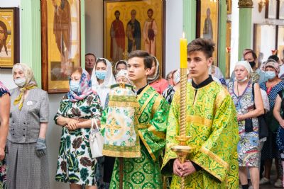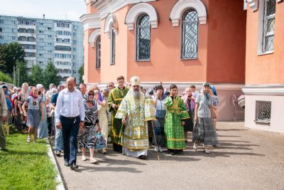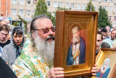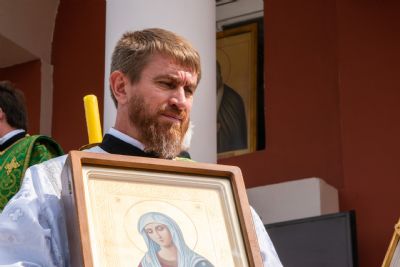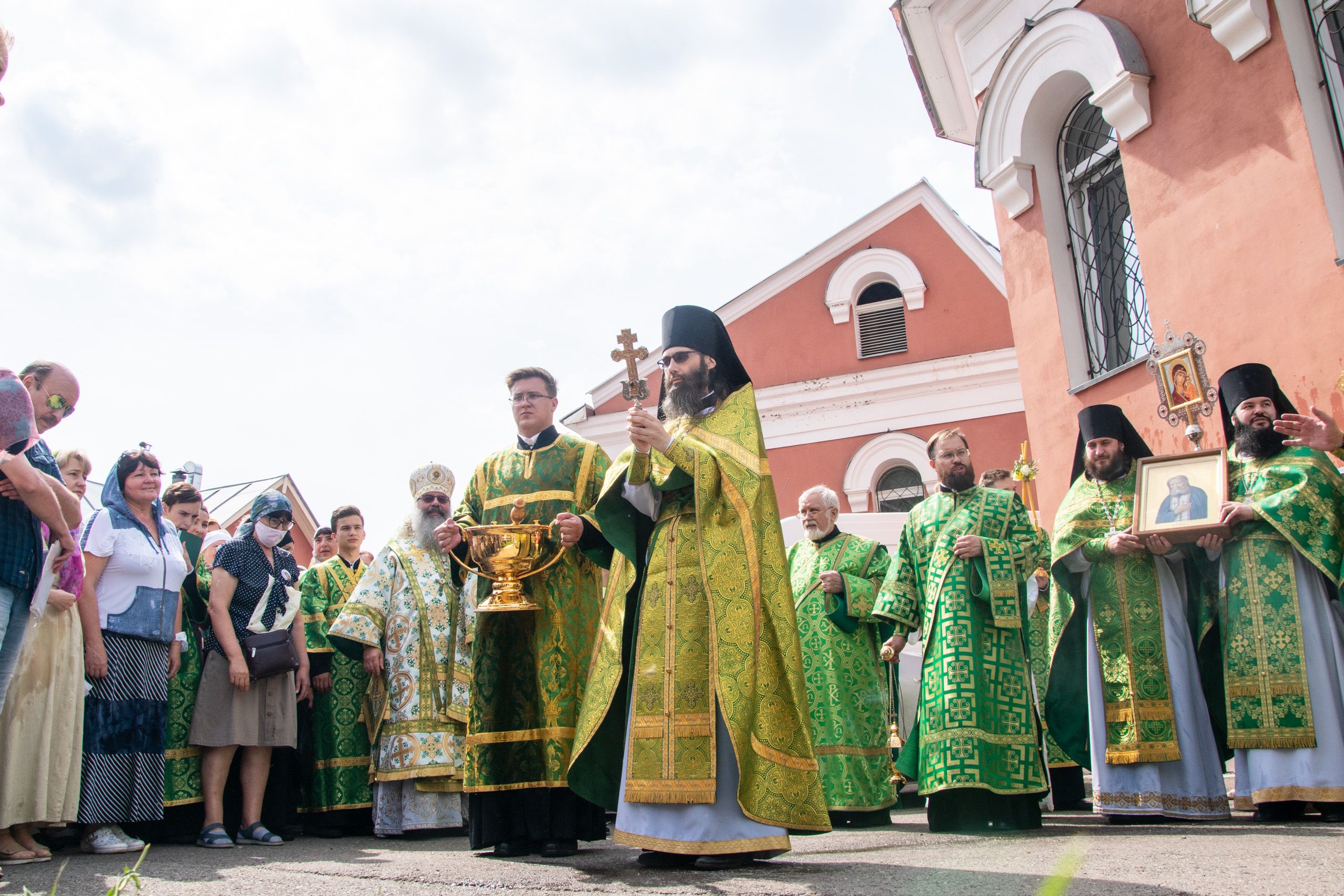 После Литургии вокруг храма состоялся крестный ход. Духовенство совершило славление преподобному Серафиму Саровскому.