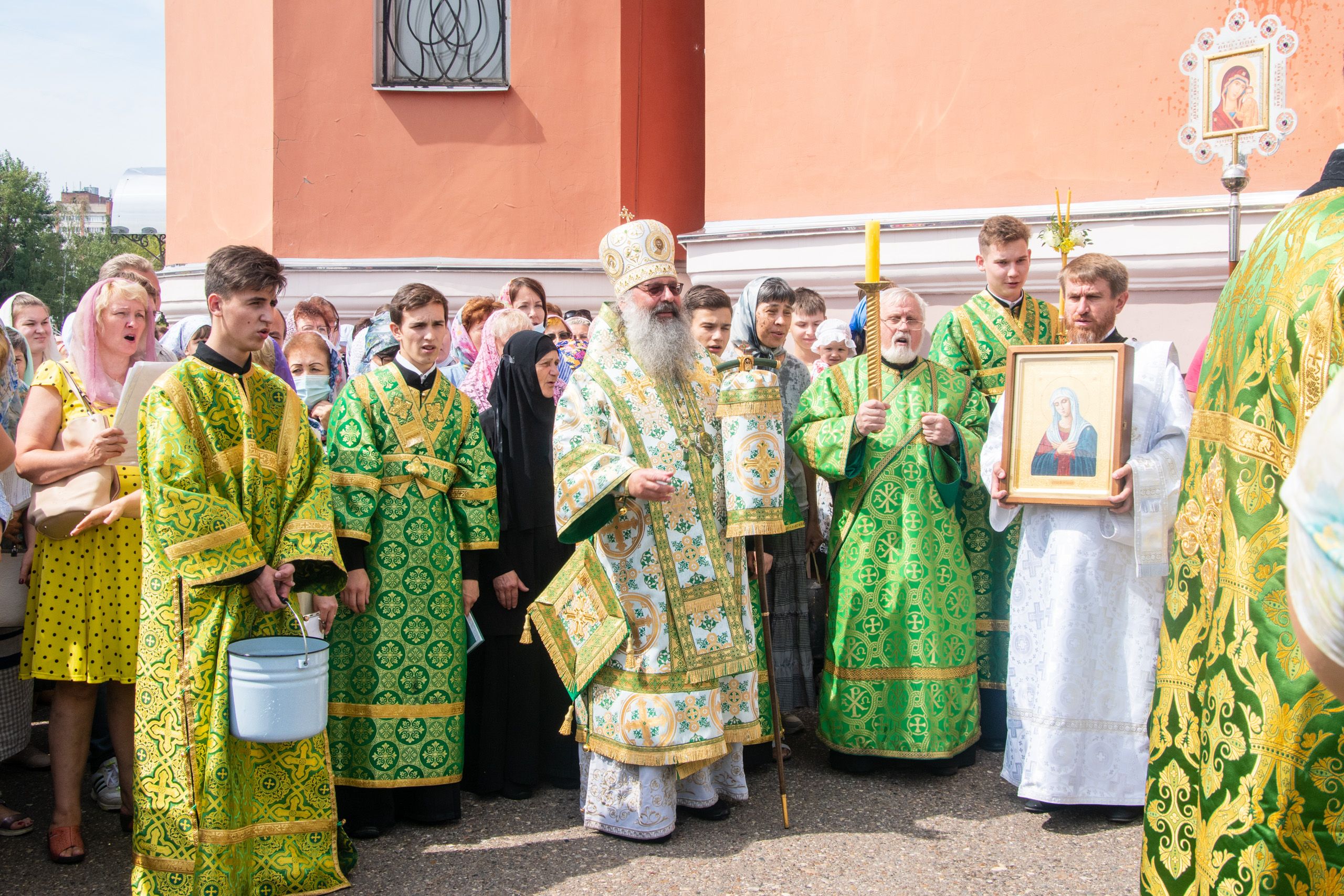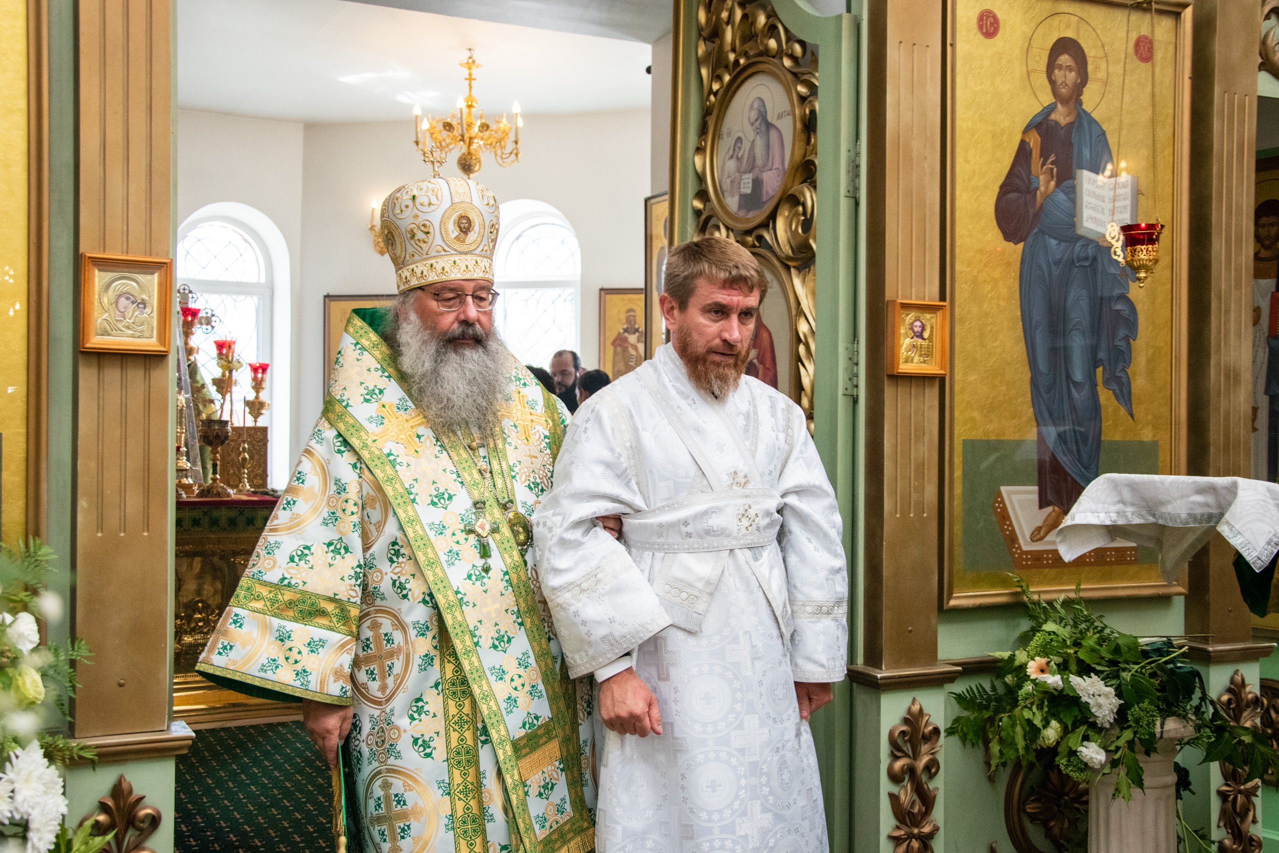Его Высокопреосвященству сослужили секретарь Татарстанской митрополии, настоятель прихода иеромонах Кирилл (Корытко), наместник Казанско-Богородицкого мужского монастыря игумен Марк (Виленский), наместник Воскресенского Новоиерусалимского архиерейского подворья города Казани иеромонах Роман (Модин), настоятель Введенского Кизического мужского монастыря города Казани игумен Пимен (Ивентьев), иеромонах Алексий (Яцейко), клирики Серафимовского храма.