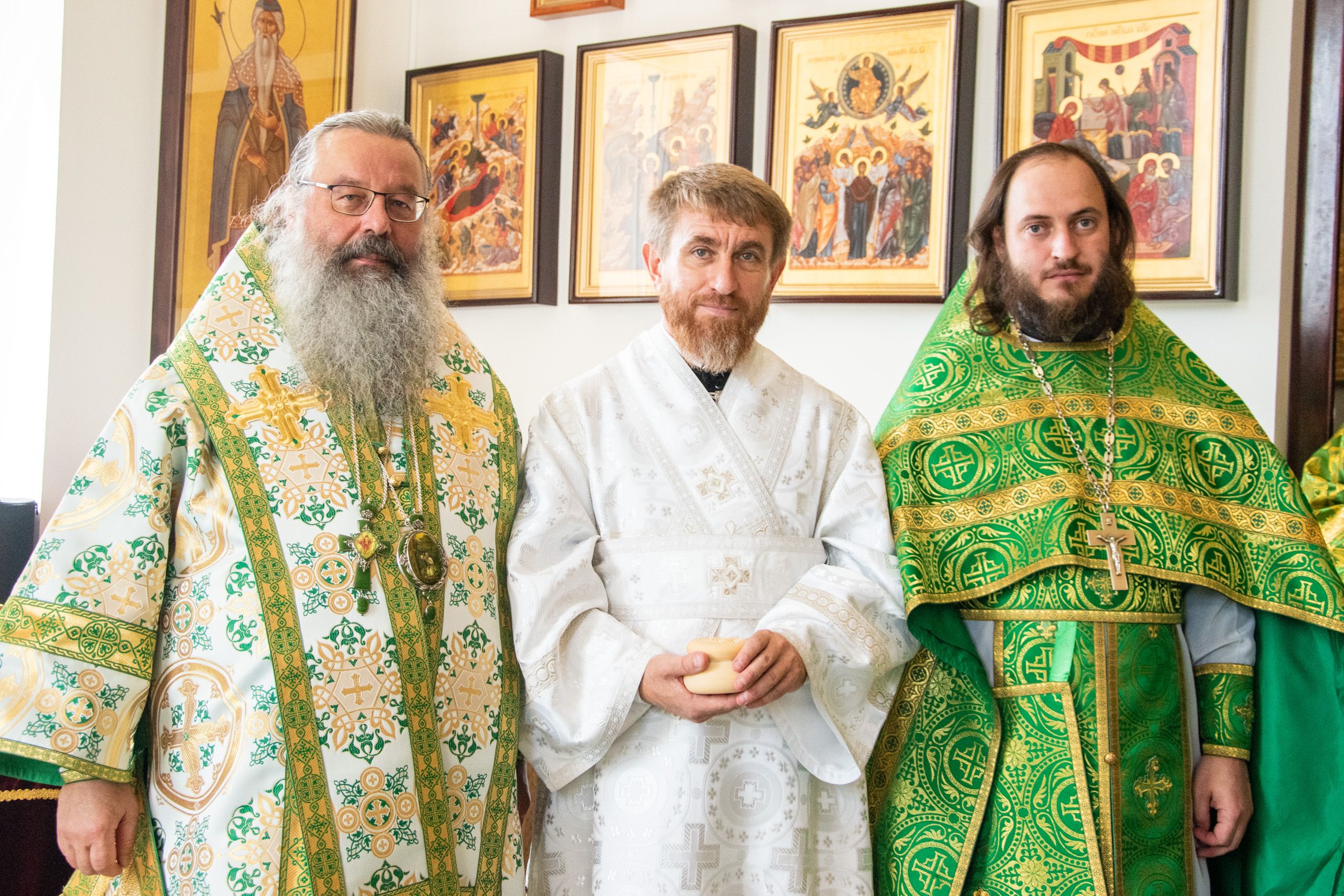 Митрополит Кирилл поздравил диакона Дионисия Ветошкина с принятием благодати Святого Духа, пожелал ему помощи Божией в служении Церкви Христовой.