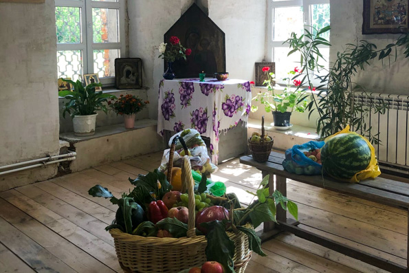 После Литургии состоялся крестный ход и праздничная трапеза с дарами августа — арбузами, дынями, яблоками, грушами, мёдом, угощениями с овощами и молодым ароматным картофелем, речной рыбой и пирогами. Во главе стола был поставлен дымящийся самовар.