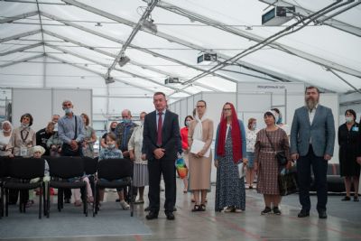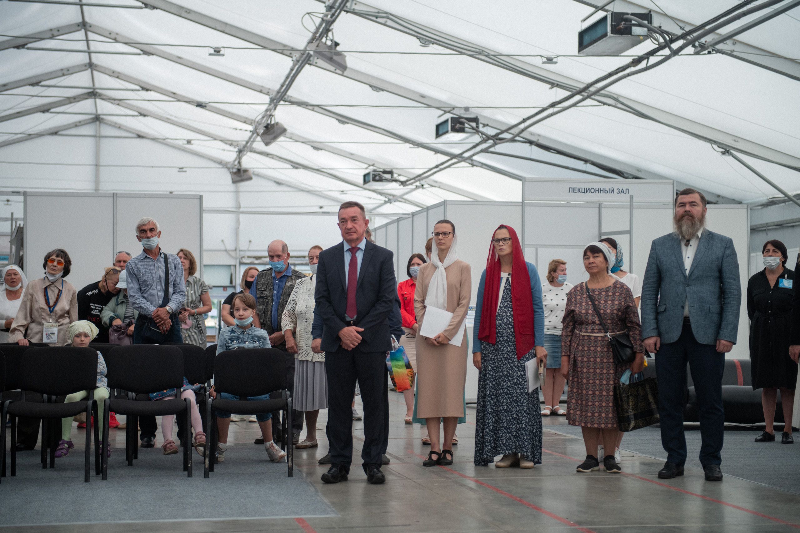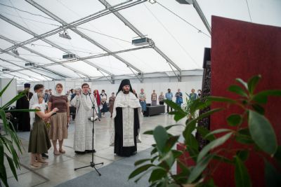 Работа выставочного проекта началась с соборной молитвы. Молебен на начало всякого благого дела совершил секретарь Татарстанской митрополии иеромонах Кирилл (Корытко). Песнопения молебна исполнил богослужебный хор казанского прихода преподобного Серафима Саровского под управлением Елены Васильевой.