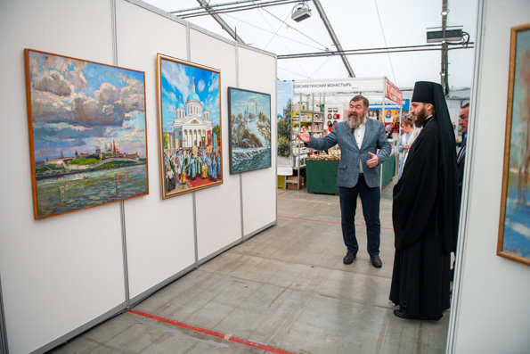 Участники церемонии открытия выставки-ярмарки ознакомились с представленной продукцией, осмотрели работы современных художников, которые экспонируются в павильонах выставочного центра. Выставки картин «Храмы России» и «Россия Православная» подготовил Союз художников Республики Татарстан.