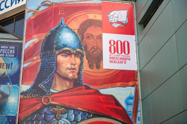 «Дорогие друзья, в сегодняшний день радостно быть со всеми вами и участвовать в открытии выставки, приуроченной к воссозданию Казанского собора и 800-летию со дня рождения святого благоверного князя Александра Невского.
