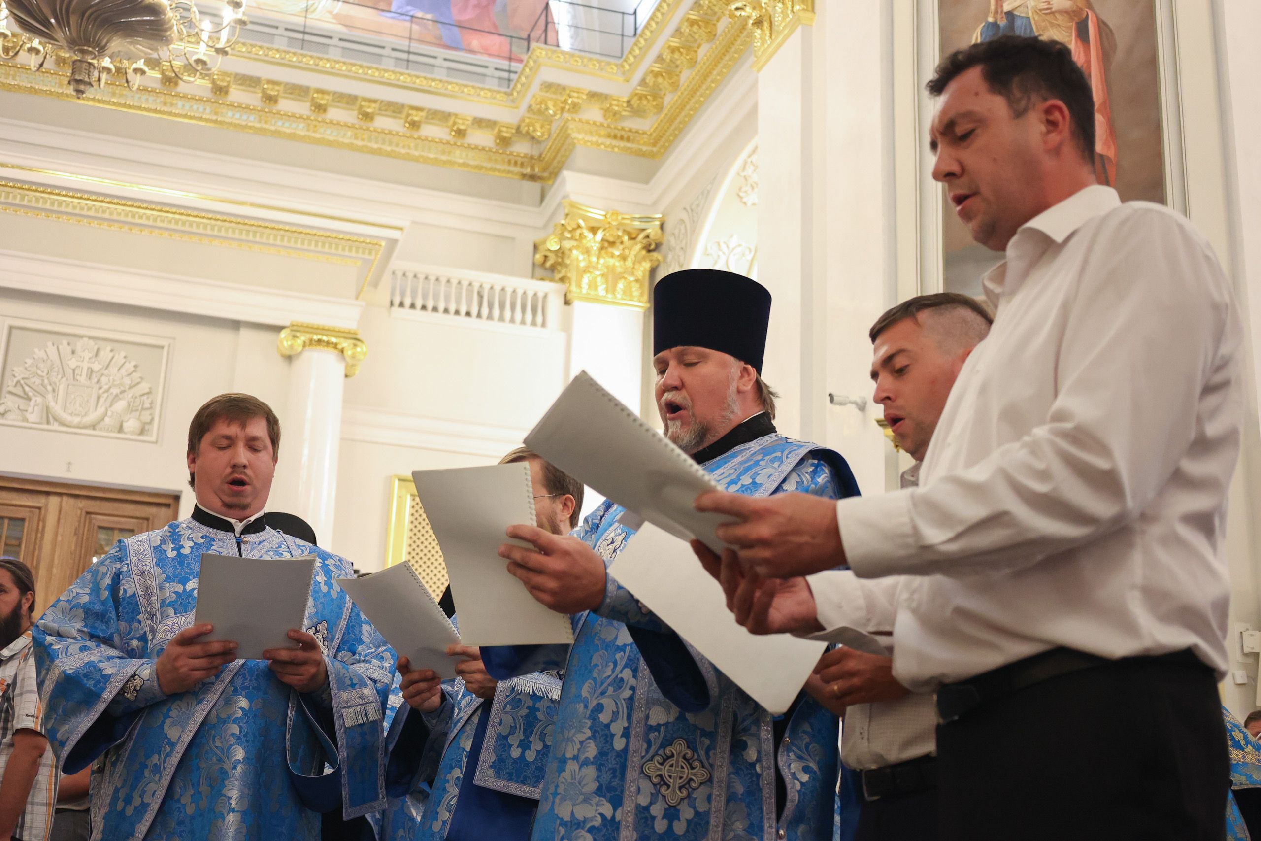 Богослужебные песнопения исполнил смешанный архиерейский хор Казанской епархии под управлением Марины Литвиненко.