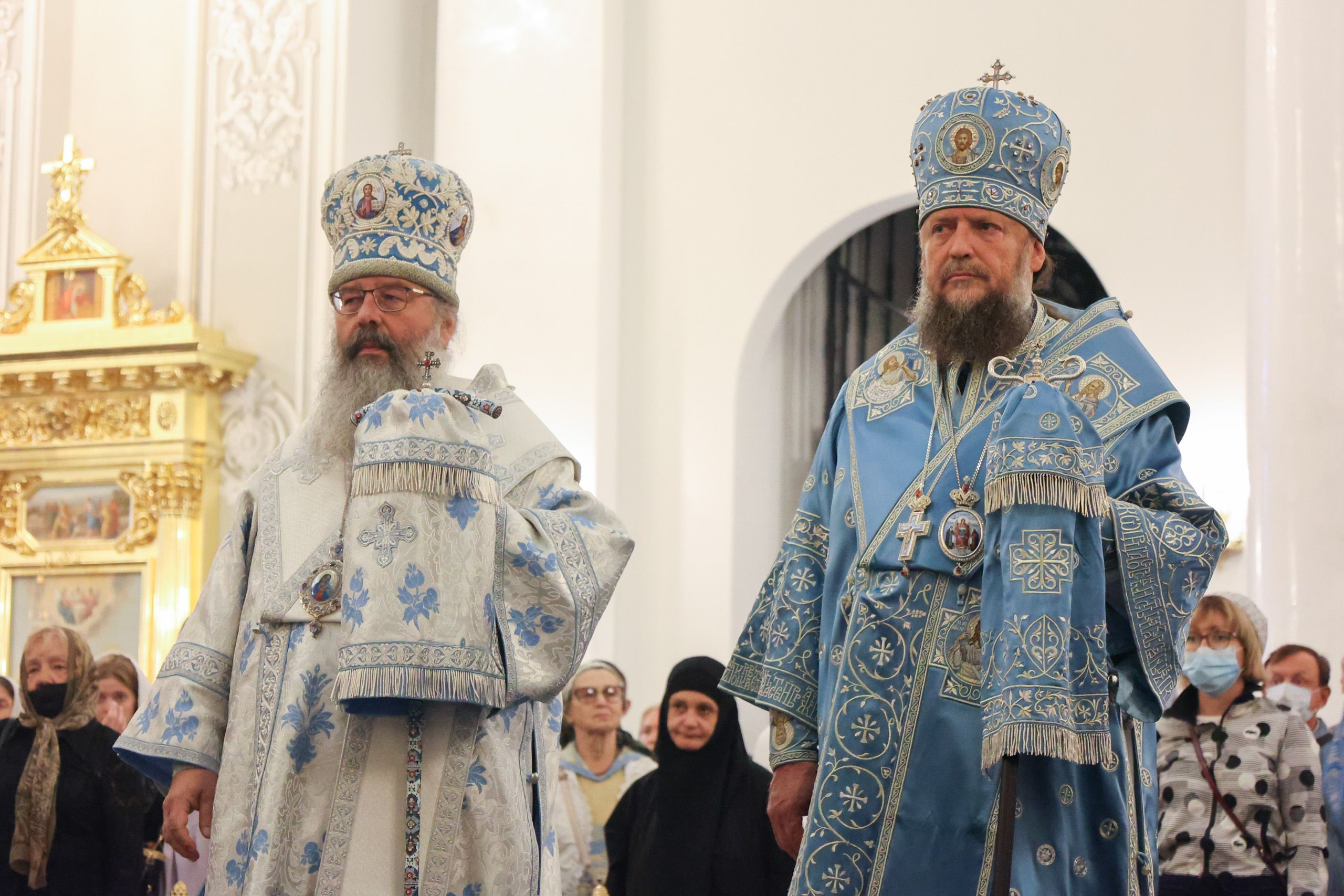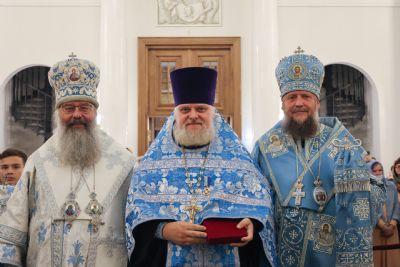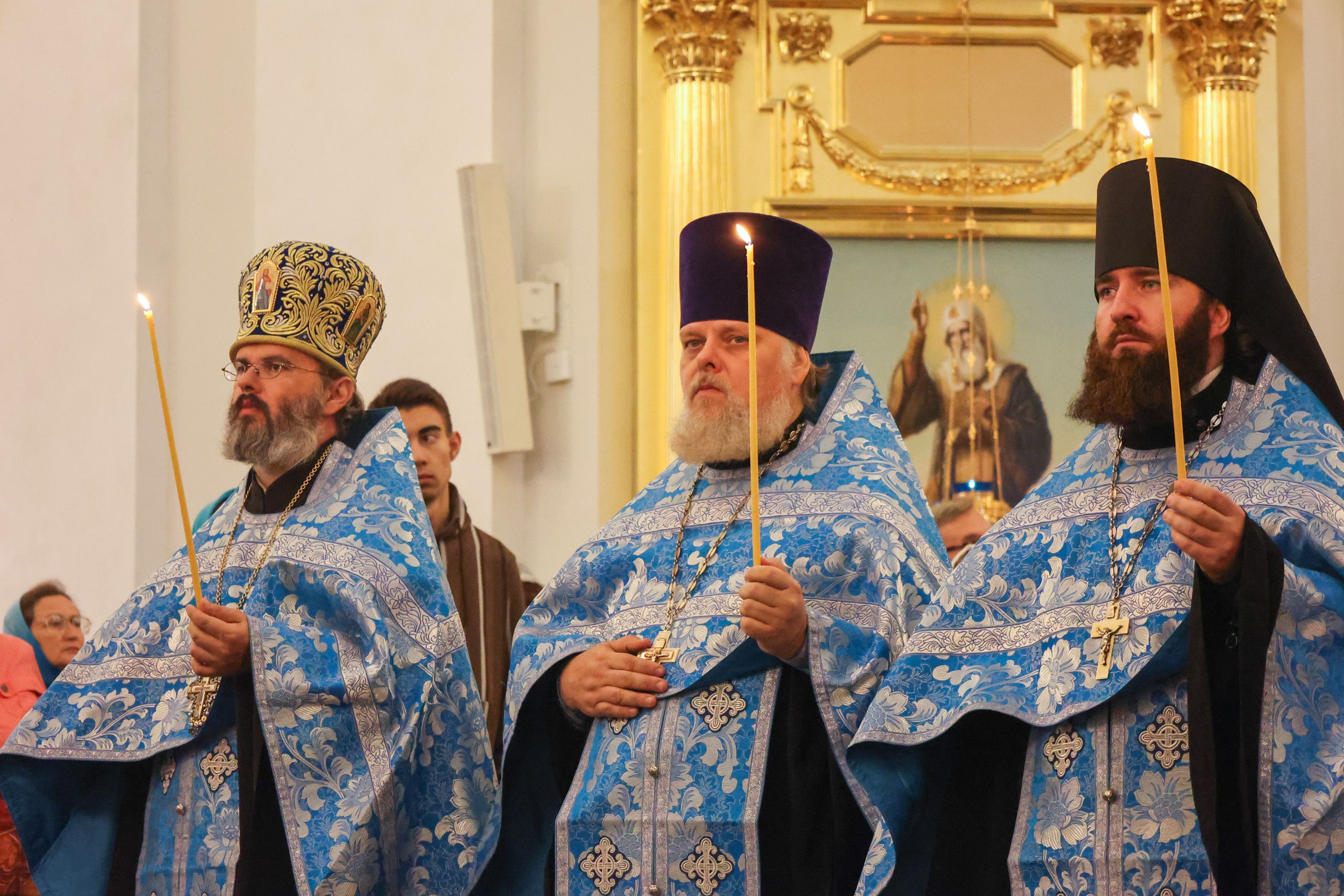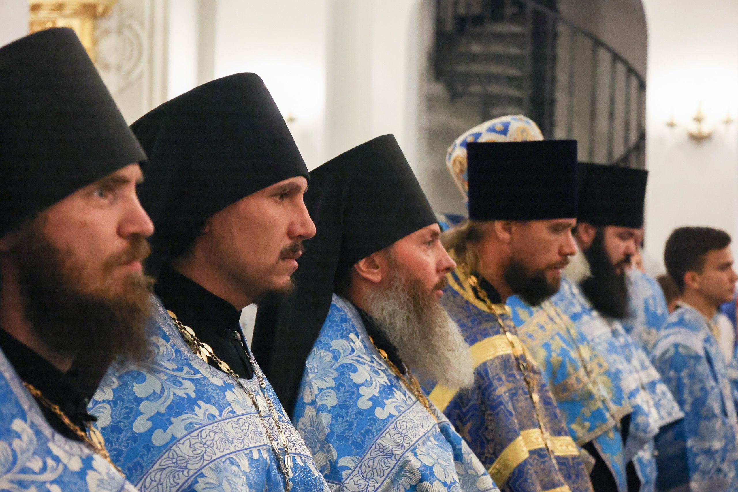 Архипастырям сослужили наместник обители игумен Марк (Виленский), представитель Православной Церкви в Америке при Патриархе Московском и всея Руси протоиерей Даниил Андреюк, секретарь Казанской епархии протоиерей Владимир Самойленко, председатель Экспертного совета по церковному искусству, архитектуре и реставрации протоиерей Леонид Калинин, заведующий канцелярией Казанской епархии протоиерей Александр Павлов, иеромонах Алексий (Яцейко).