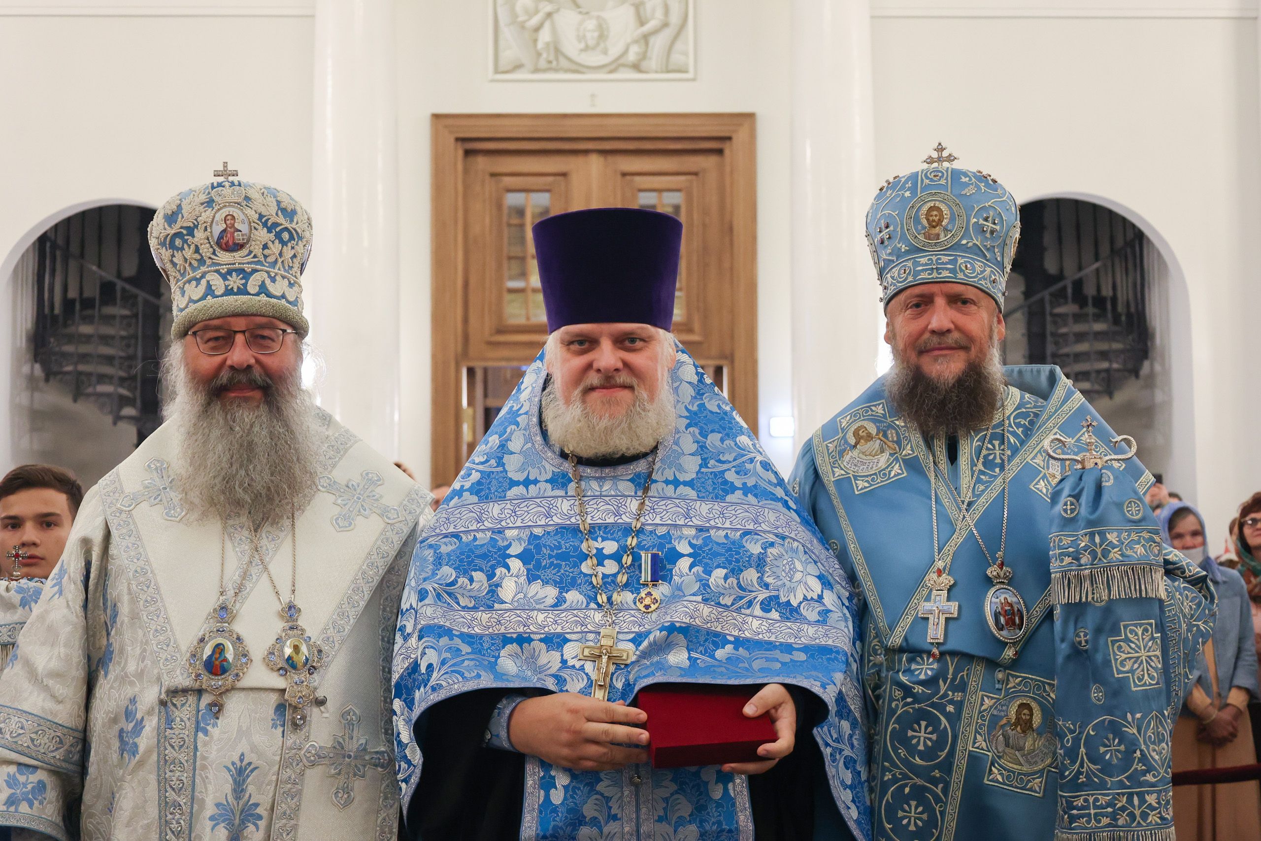 Глава Татарстанской митрополии вручил протоиерею Леониду Калинину медаль Казанской иконы Божией Матери I степени. Высшей награды Казанской епархии председатель Экспертного совета по церковному искусству удостоен за труды по воссозданию Казанского собора.