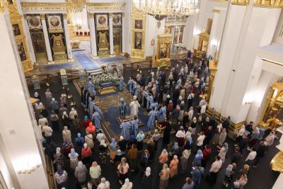 На утрене митрополит Кирилл прочитал канон Успению Пресвятой Богородицы.