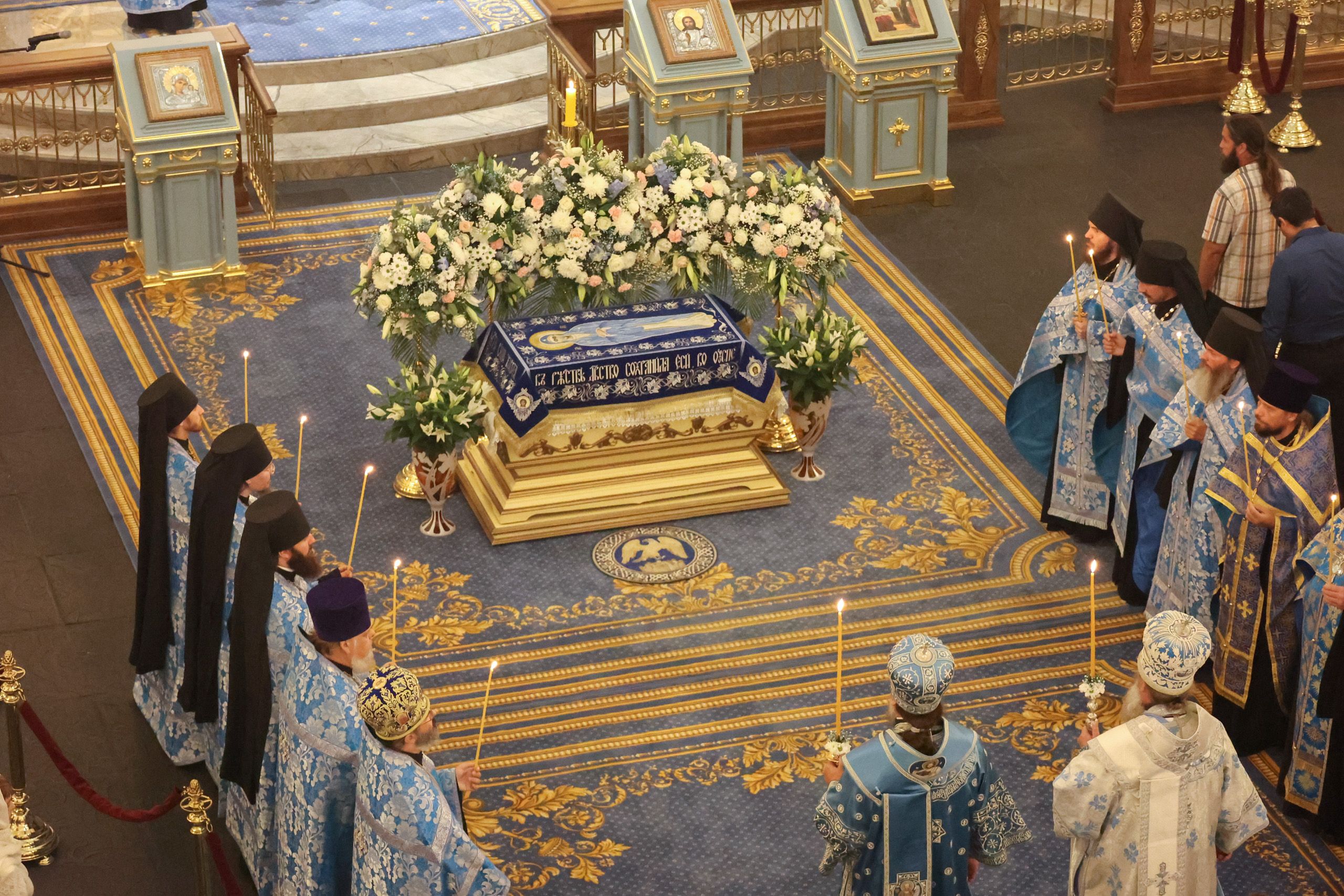 Праздник Успения Пресвятой Богородицы в Церкви называют Богородичной Пасхой. Мы с вами собрались здесь, в этом святилище Божием, как апостолы когда-то пришли ко гробу Матери Божией из разных концов земли. Владыка Гедеон приехал из города Киева — Матери городов Русских, отец Даниил прибыл из Америки, отец Леонид — из Москвы. Вы, братья и сёстры, также подобно апостолам пришли из разных мест, чтобы поклониться гробу Пресвятой Богородицы, принести Ей слёзы благодарности и благоговения.
