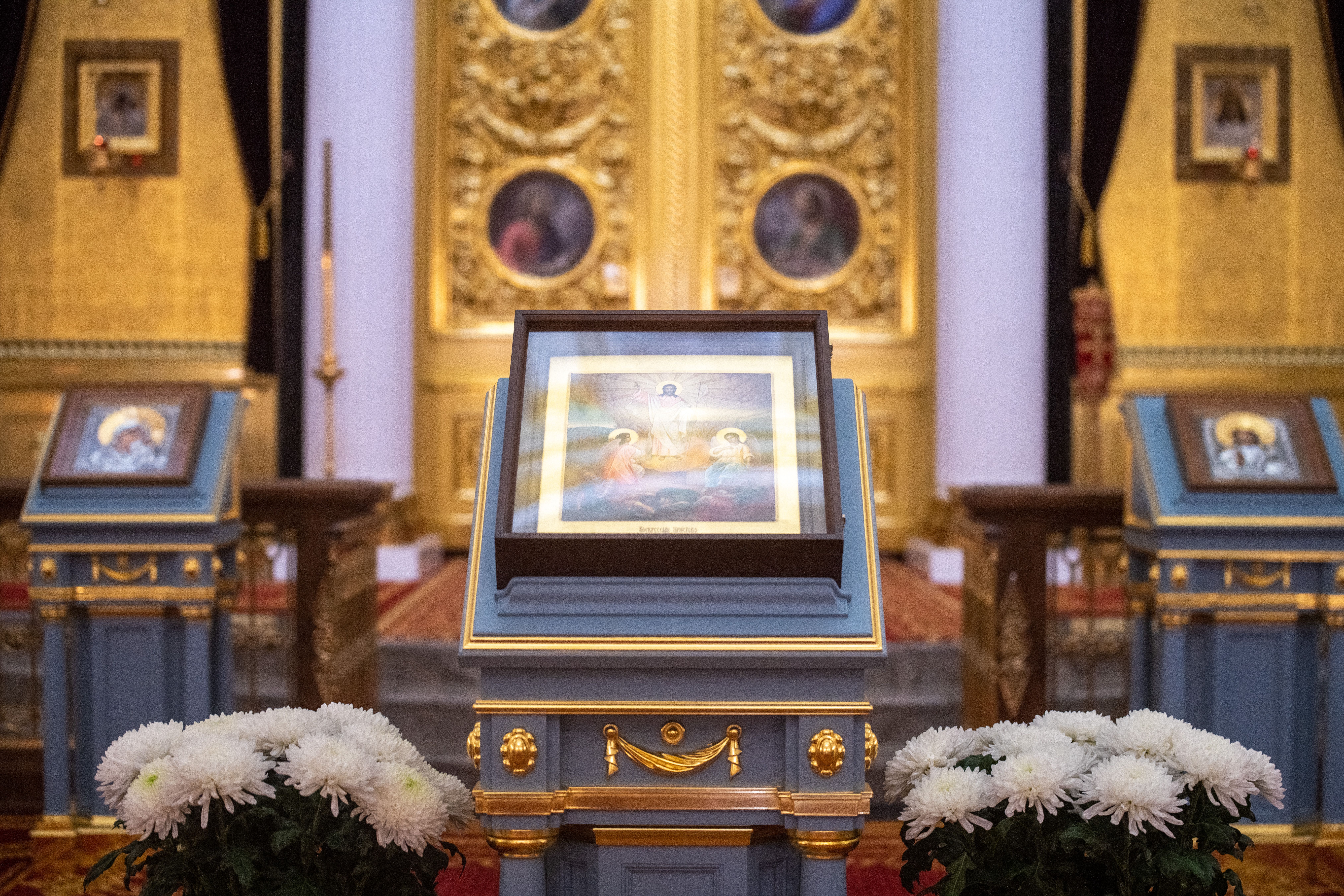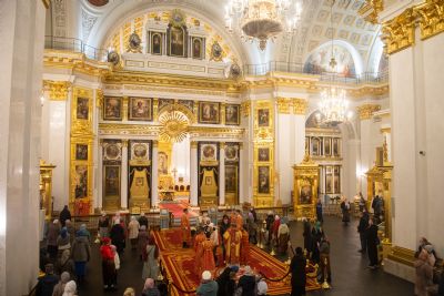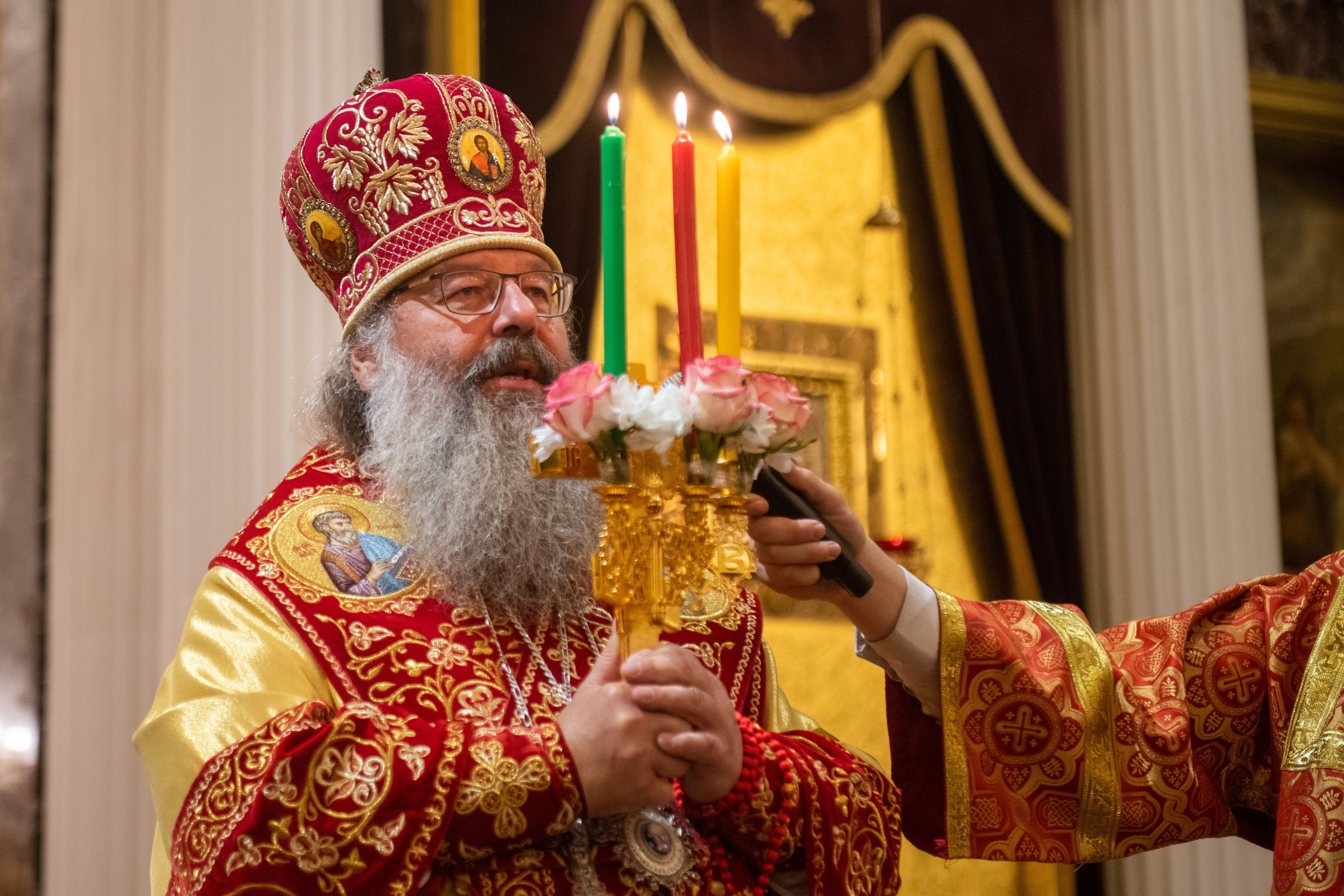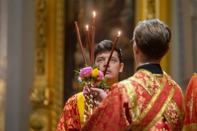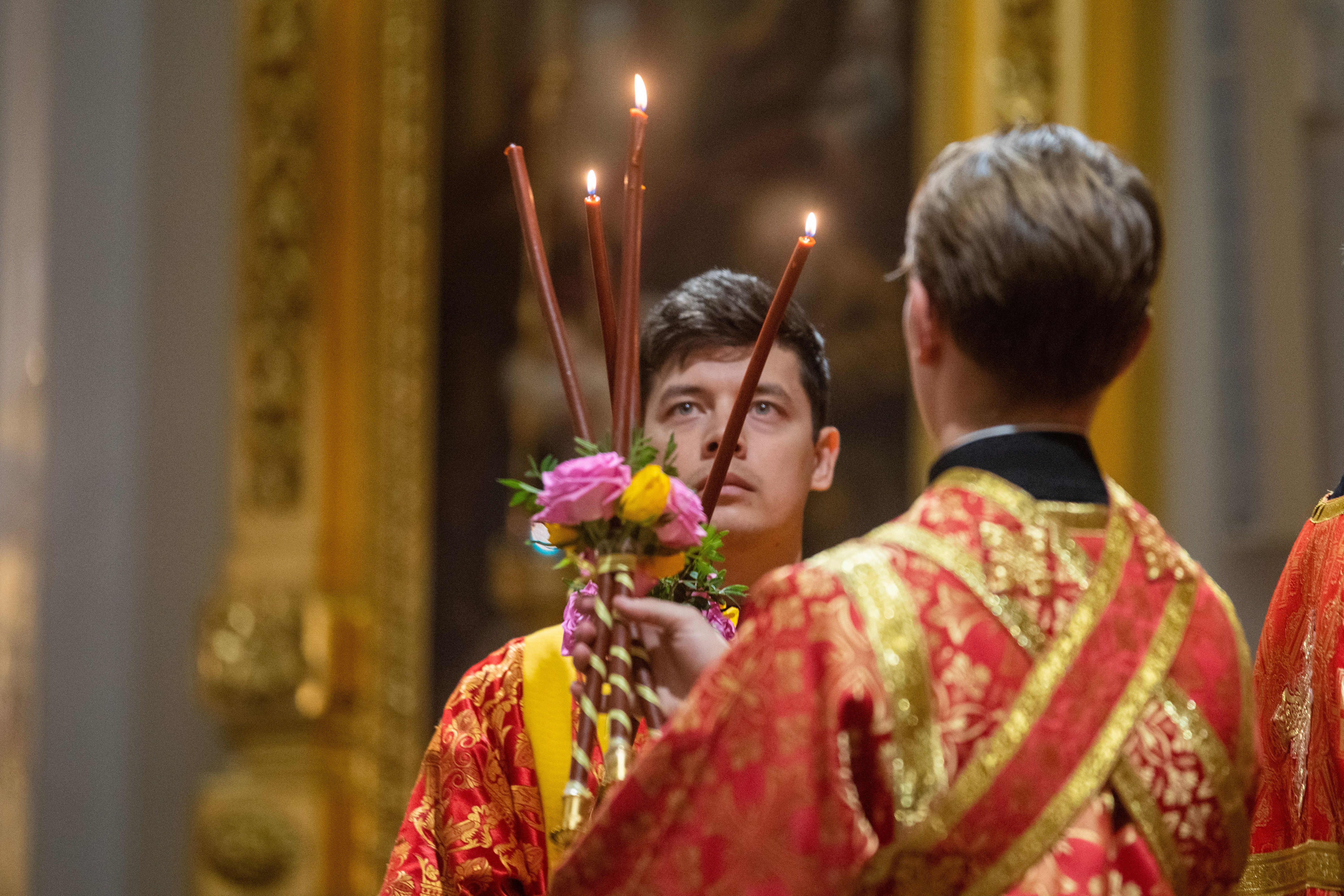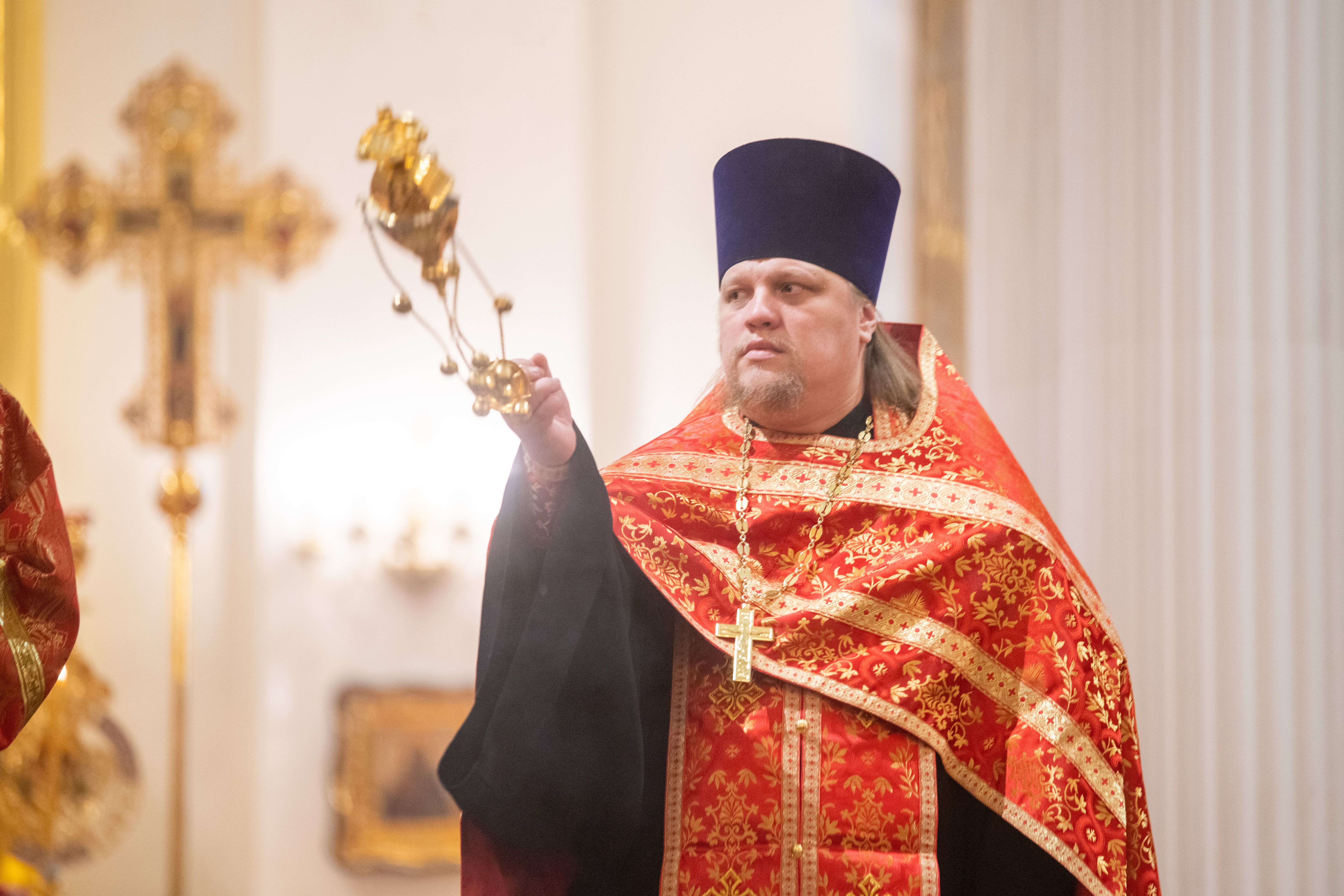 Богослужебные песнопения исполнили два архиерейских хора — мужской под управлением Дениса Рогова и смешанный под управлением Марины Литвиненко.