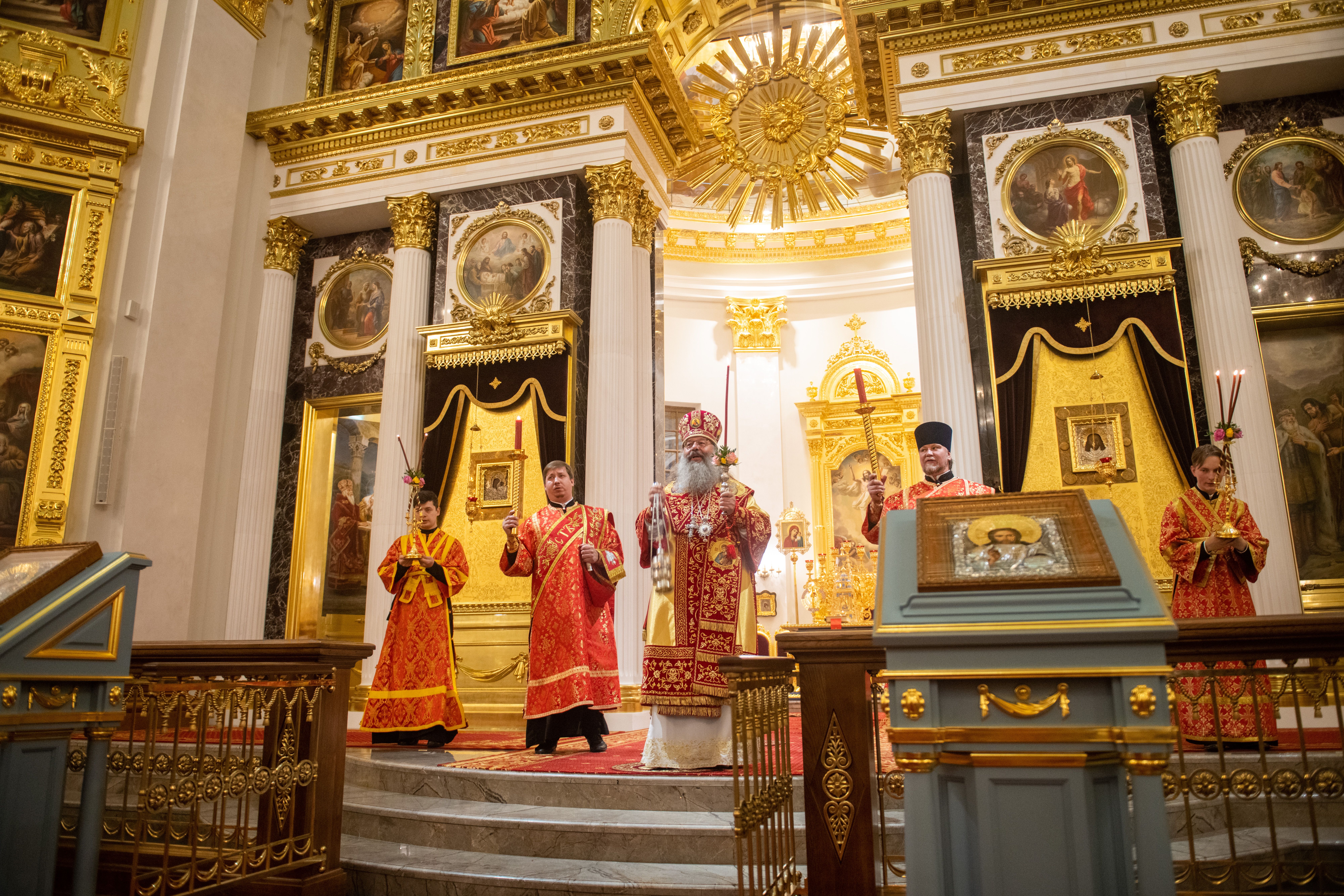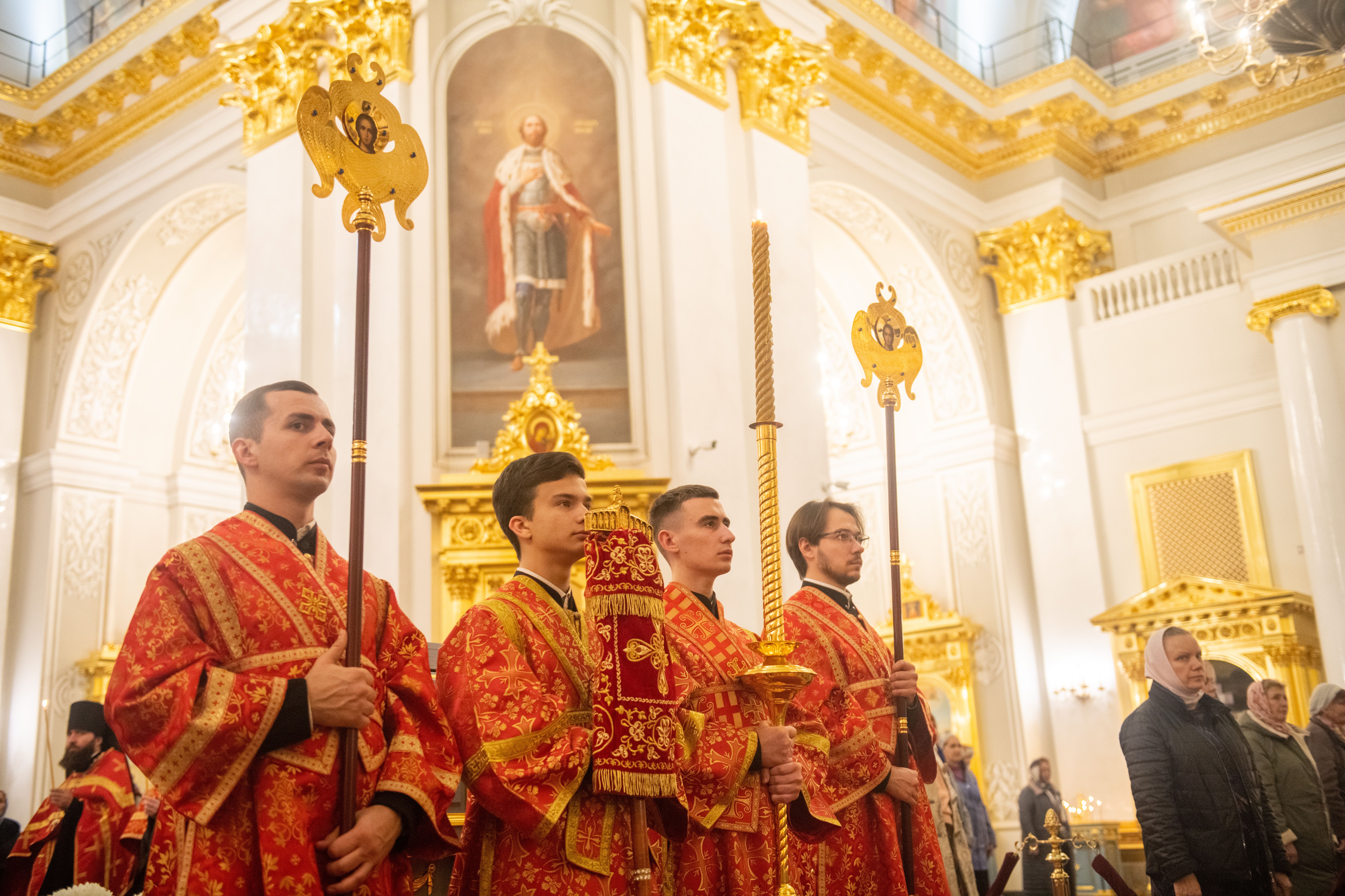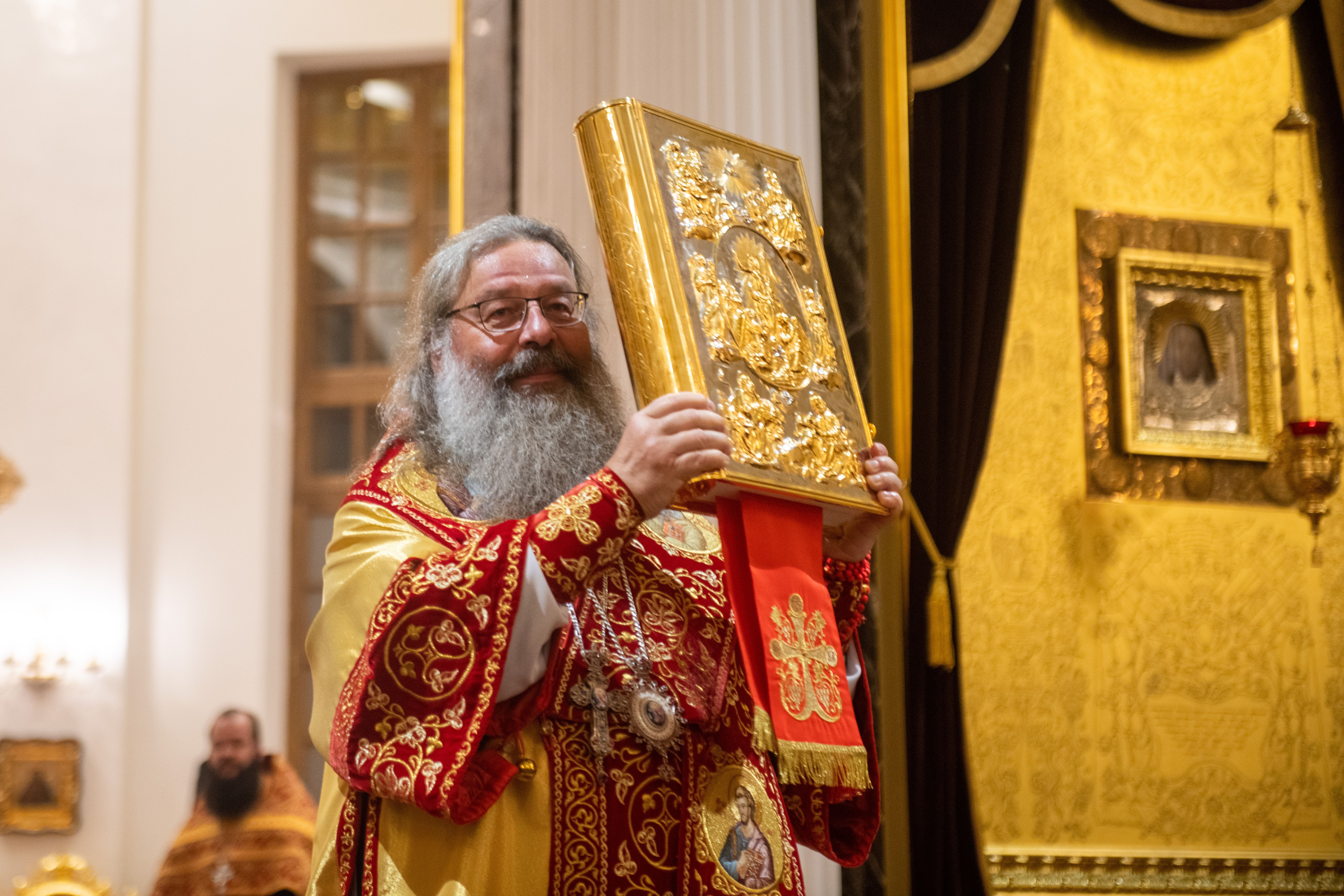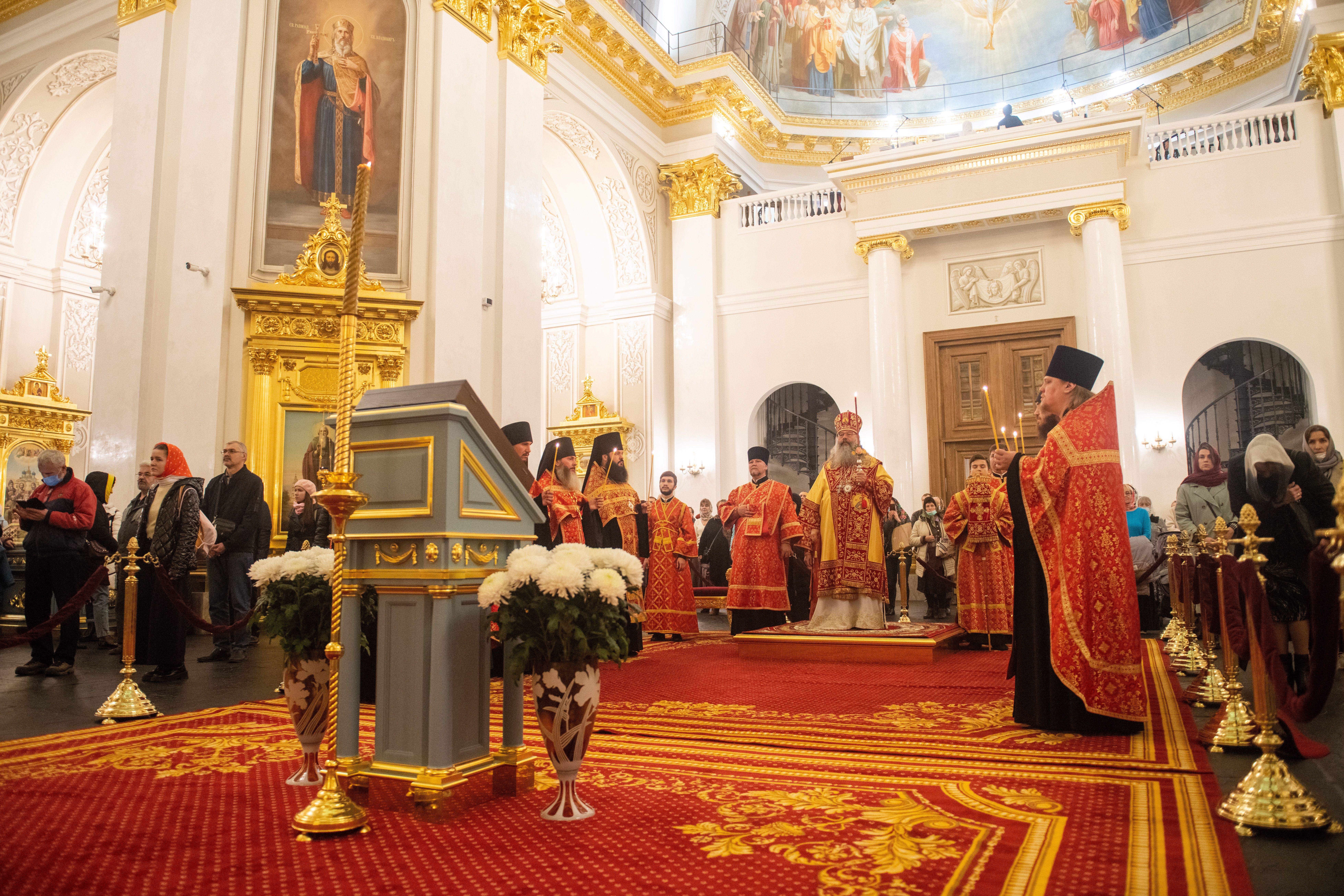 По завершении богослужения владыка Кирилл поздравил верующих с навечерием воскресного дня. Архипастырь сообщил, что на заседании Синода Русской Православной Церкви была утверждена служба Собору Казанских святых, который будет праздноваться 17 октября, и пригласил верующих на торжества в соборе Казанской иконы Божией Матери.
