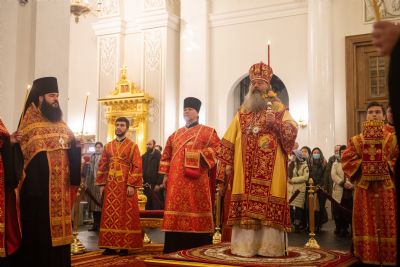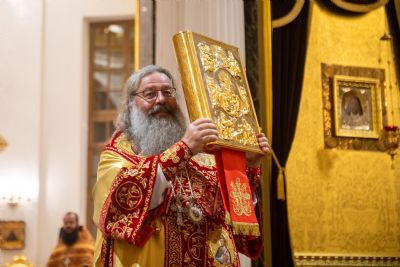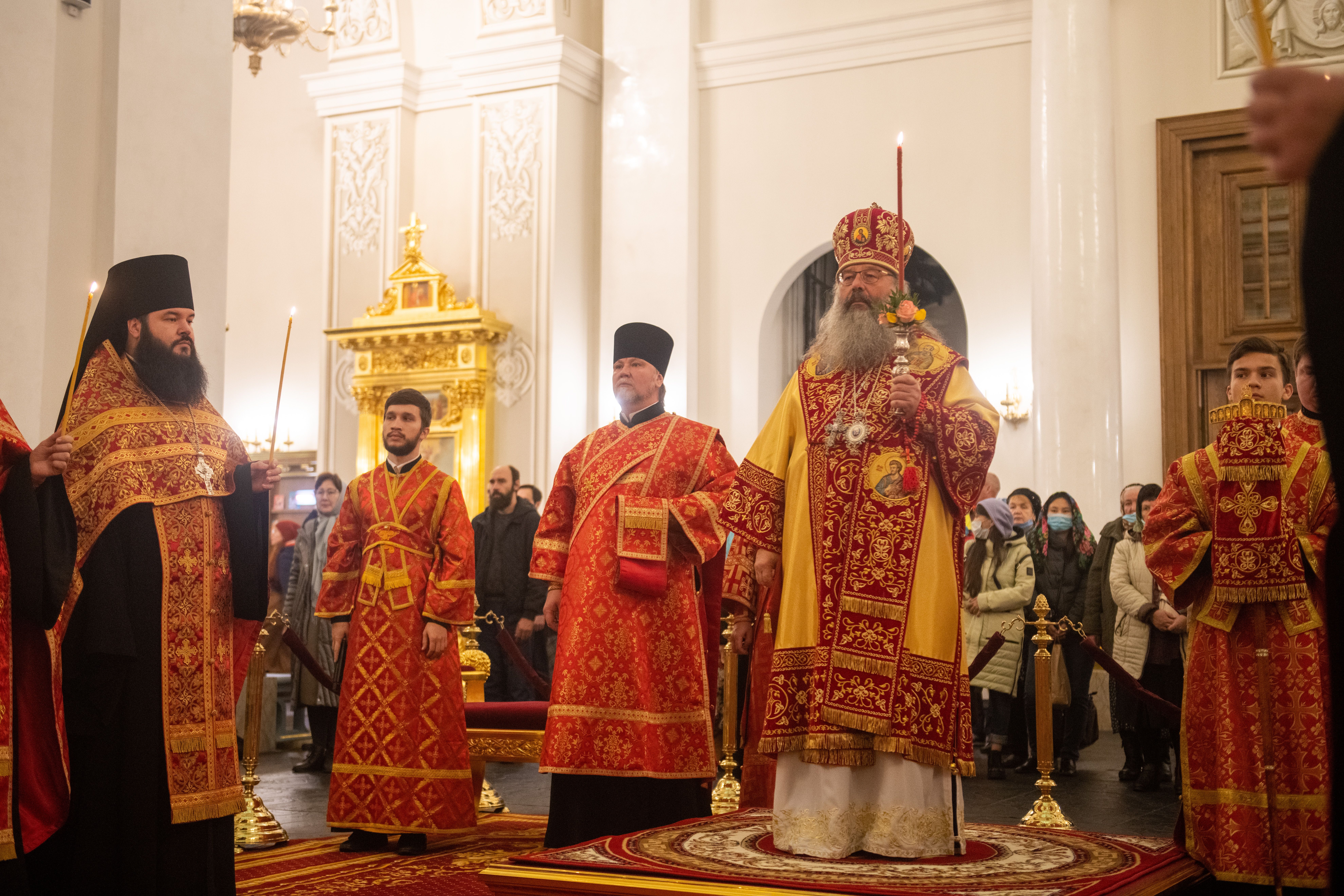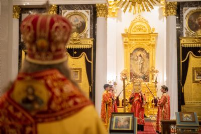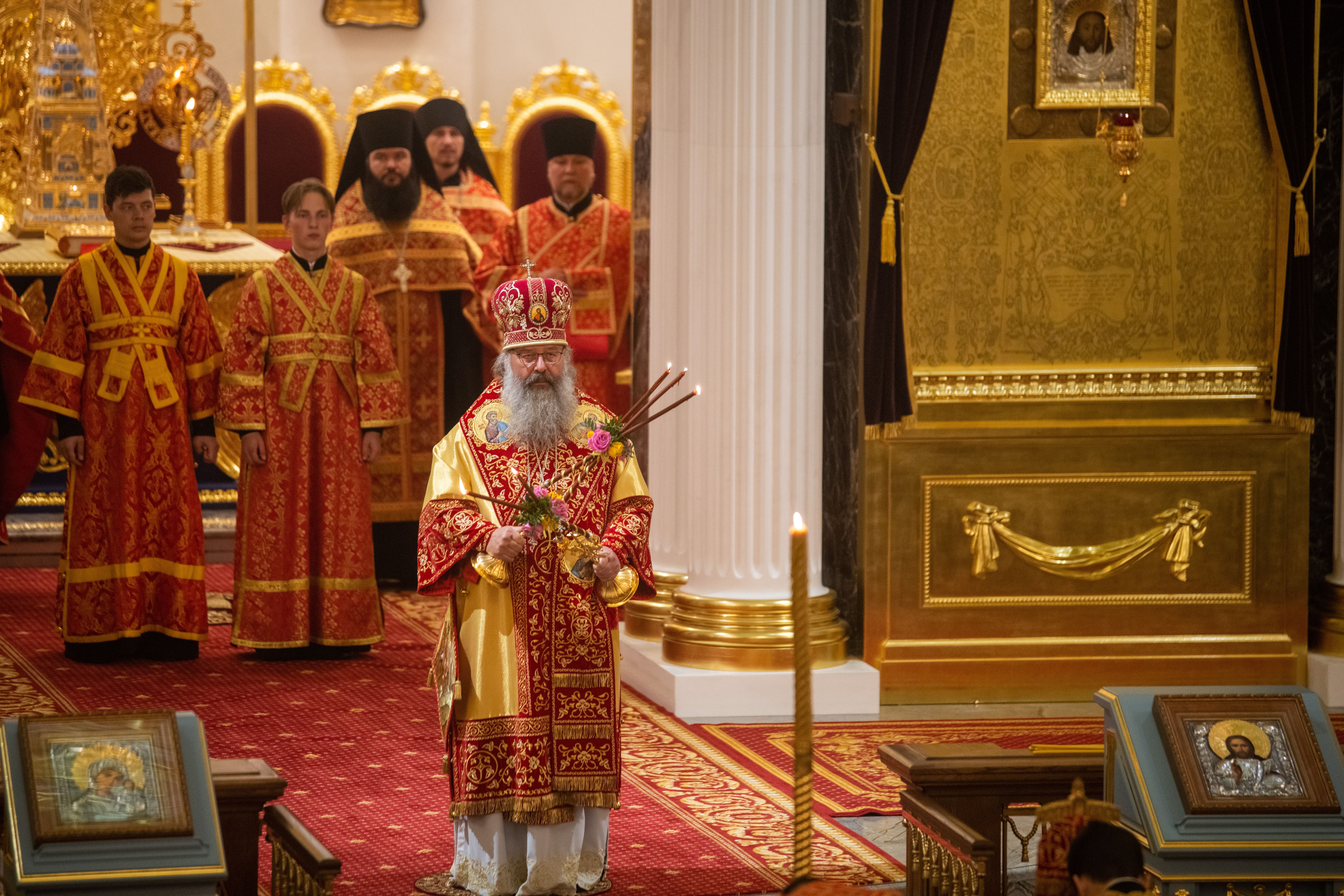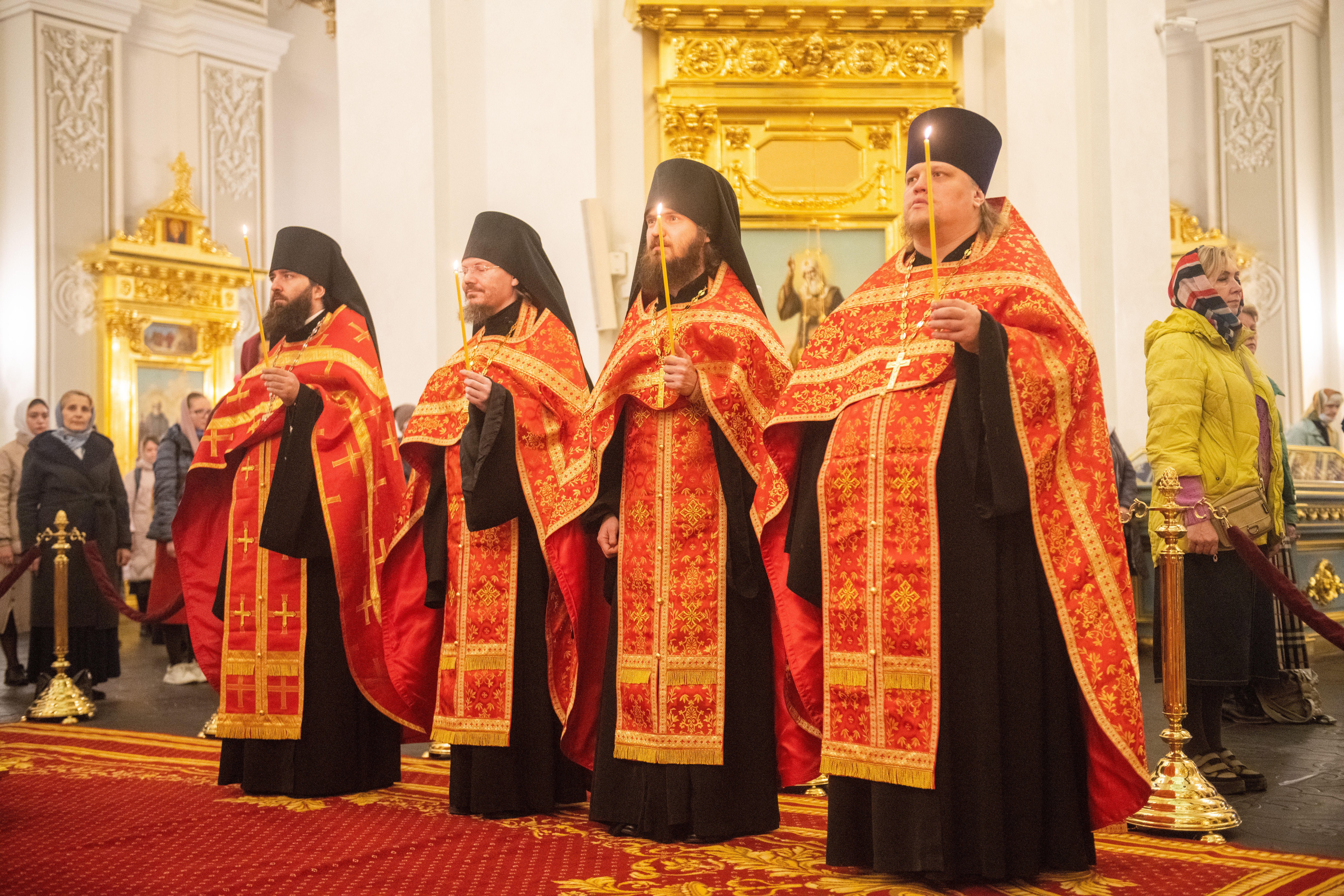 По завершении богослужения владыка Кирилл поздравил верующих с навечерием воскресного дня. Архипастырь сообщил, что на заседании Синода Русской Православной Церкви была утверждена служба Собору Казанских святых, который будет праздноваться 17 октября, и пригласил верующих на торжества в соборе Казанской иконы Божией Матери.