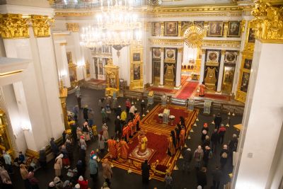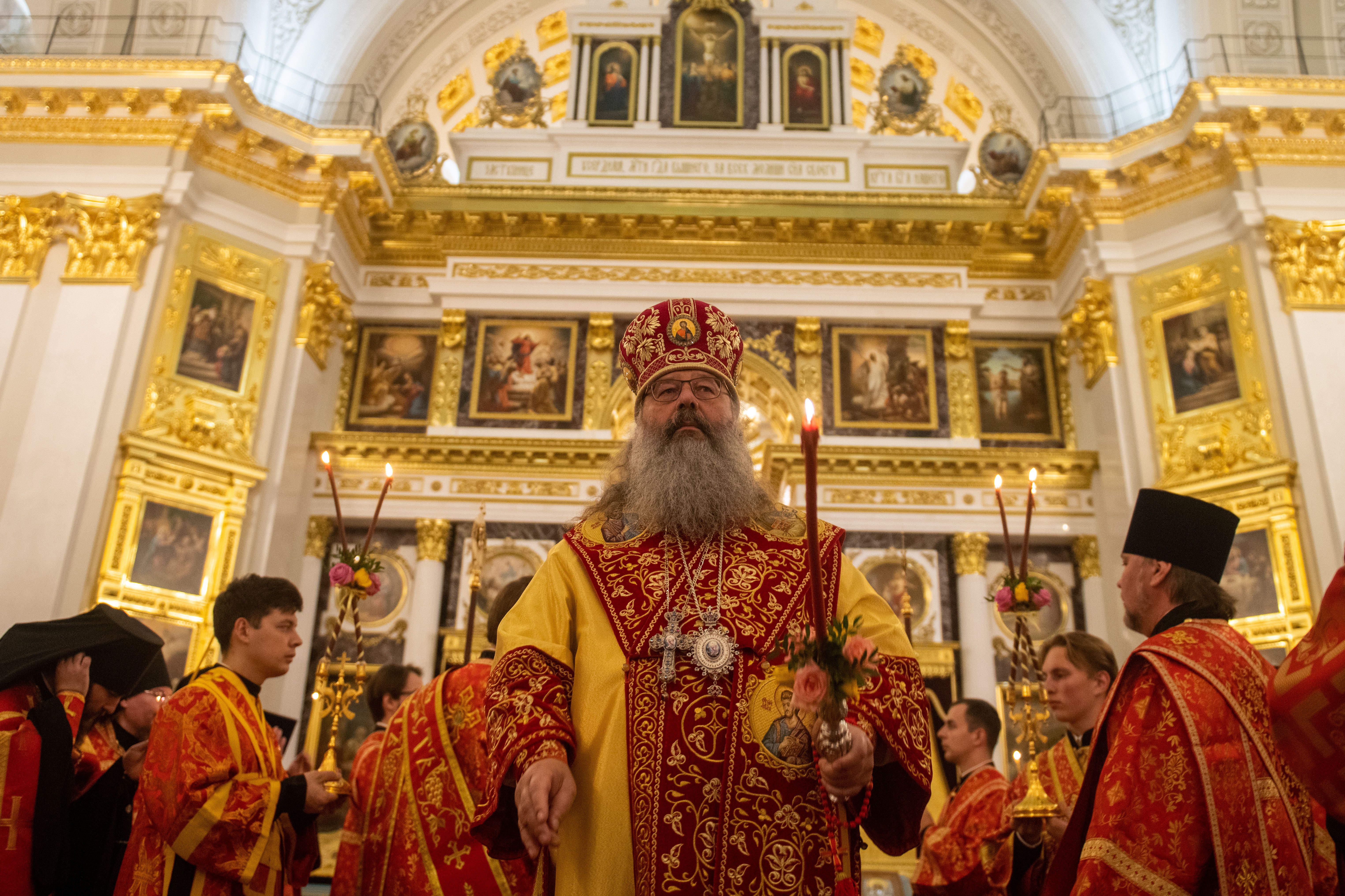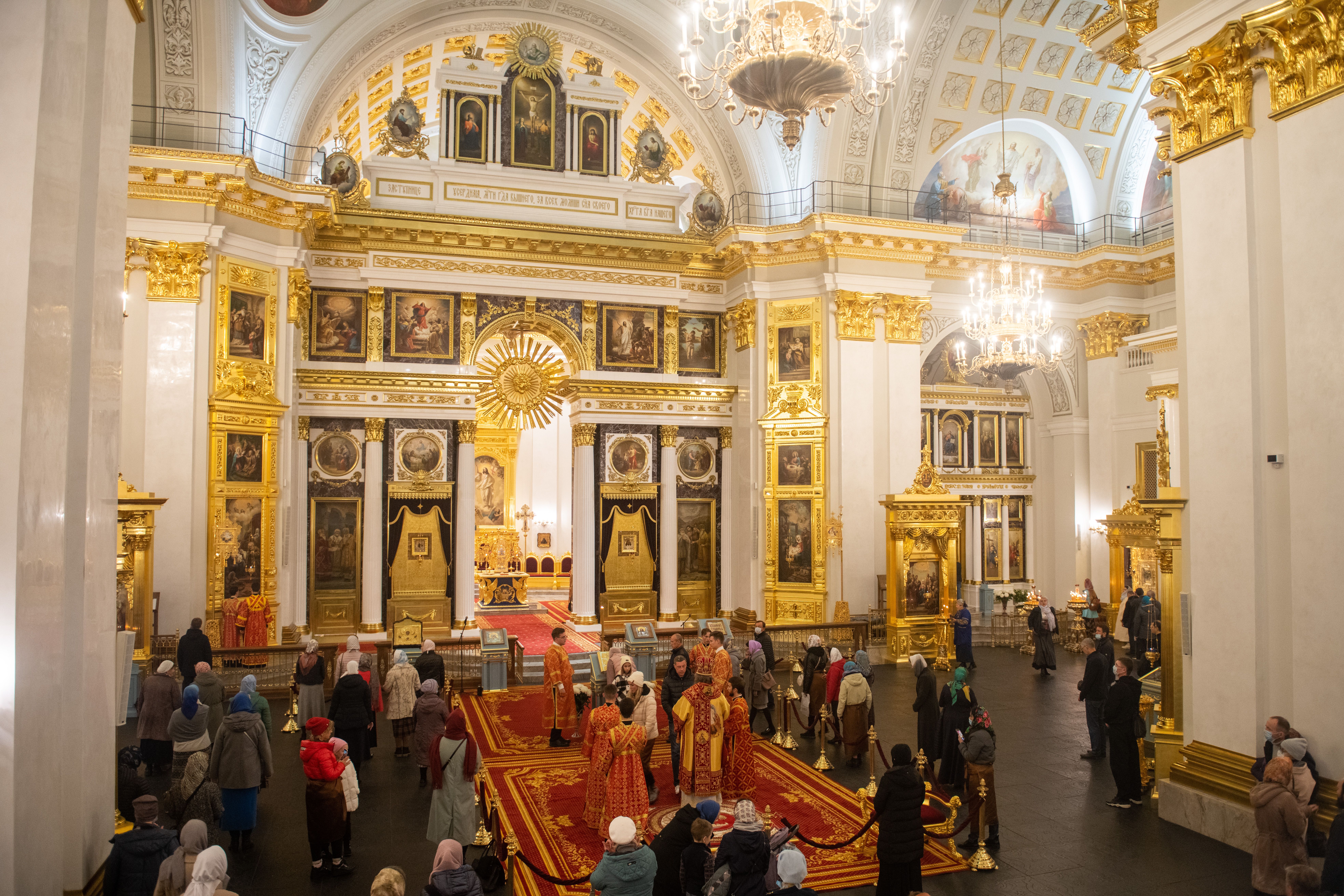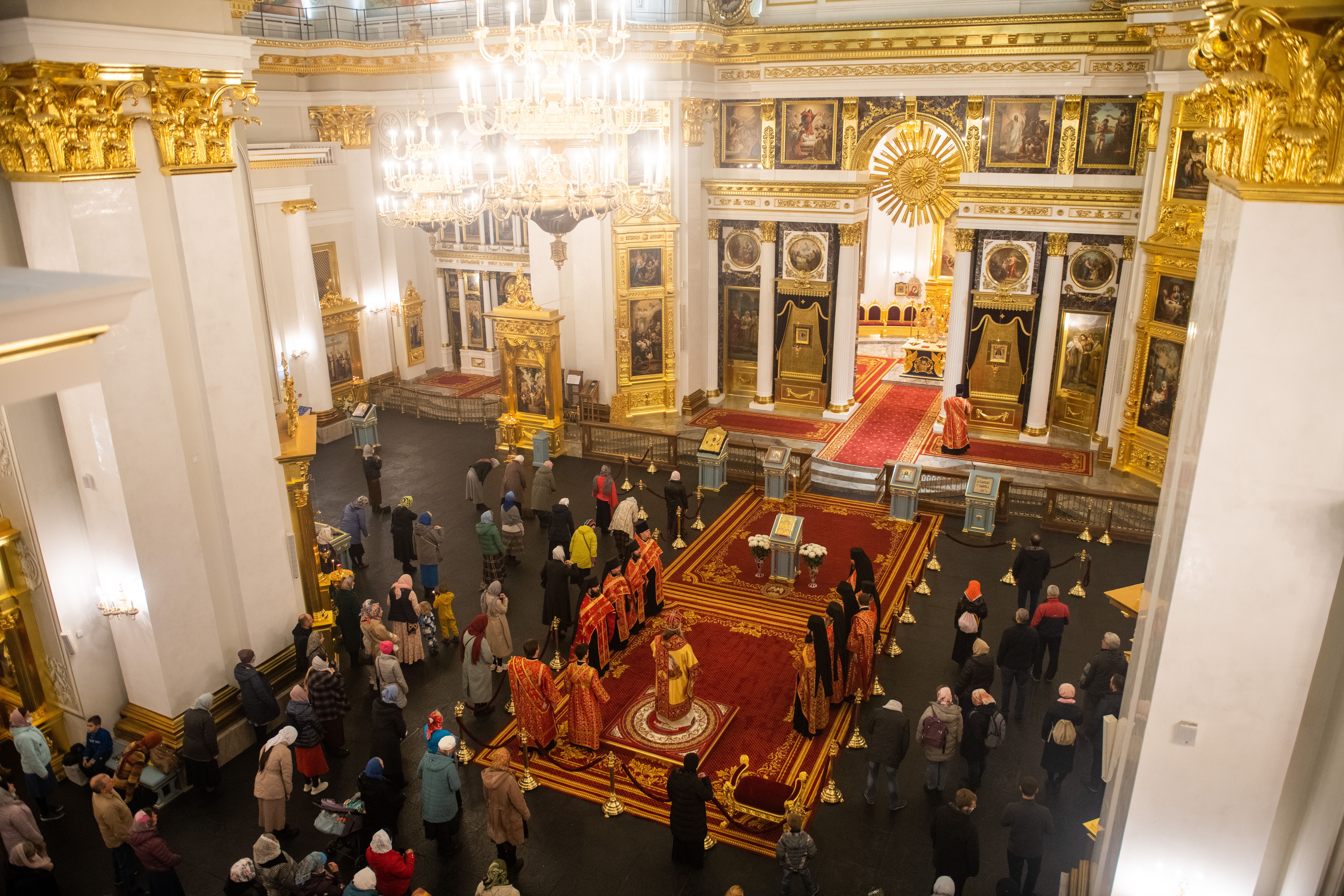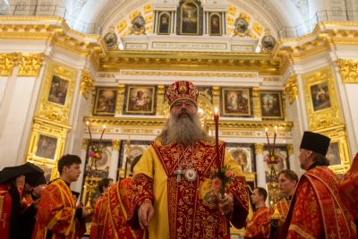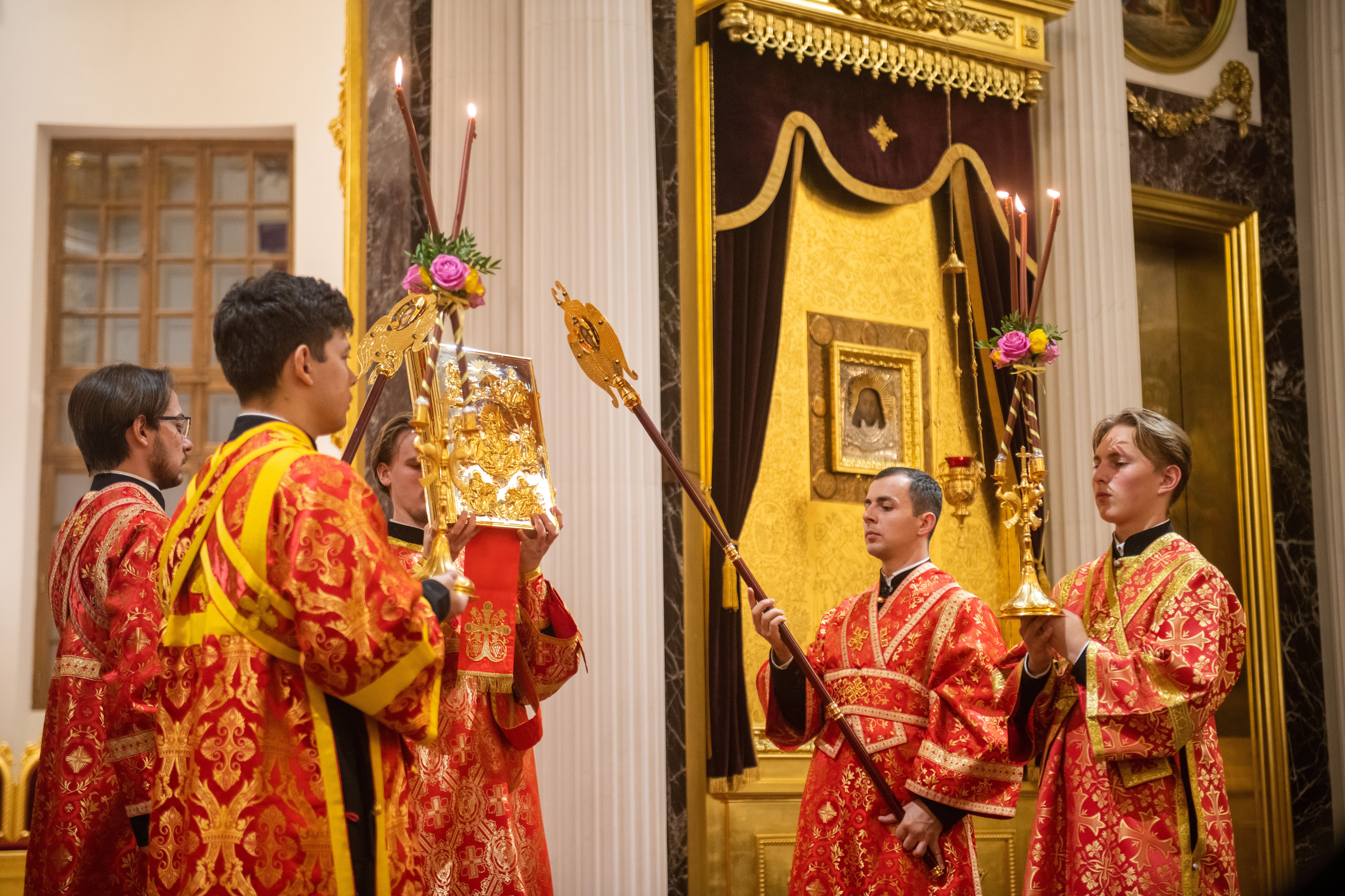 По завершении богослужения владыка Кирилл поздравил верующих с навечерием воскресного дня. Архипастырь сообщил, что на заседании Синода Русской Православной Церкви была утверждена служба Собору Казанских святых, который будет праздноваться 17 октября, и пригласил верующих на торжества в соборе Казанской иконы Божией Матери.