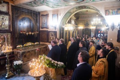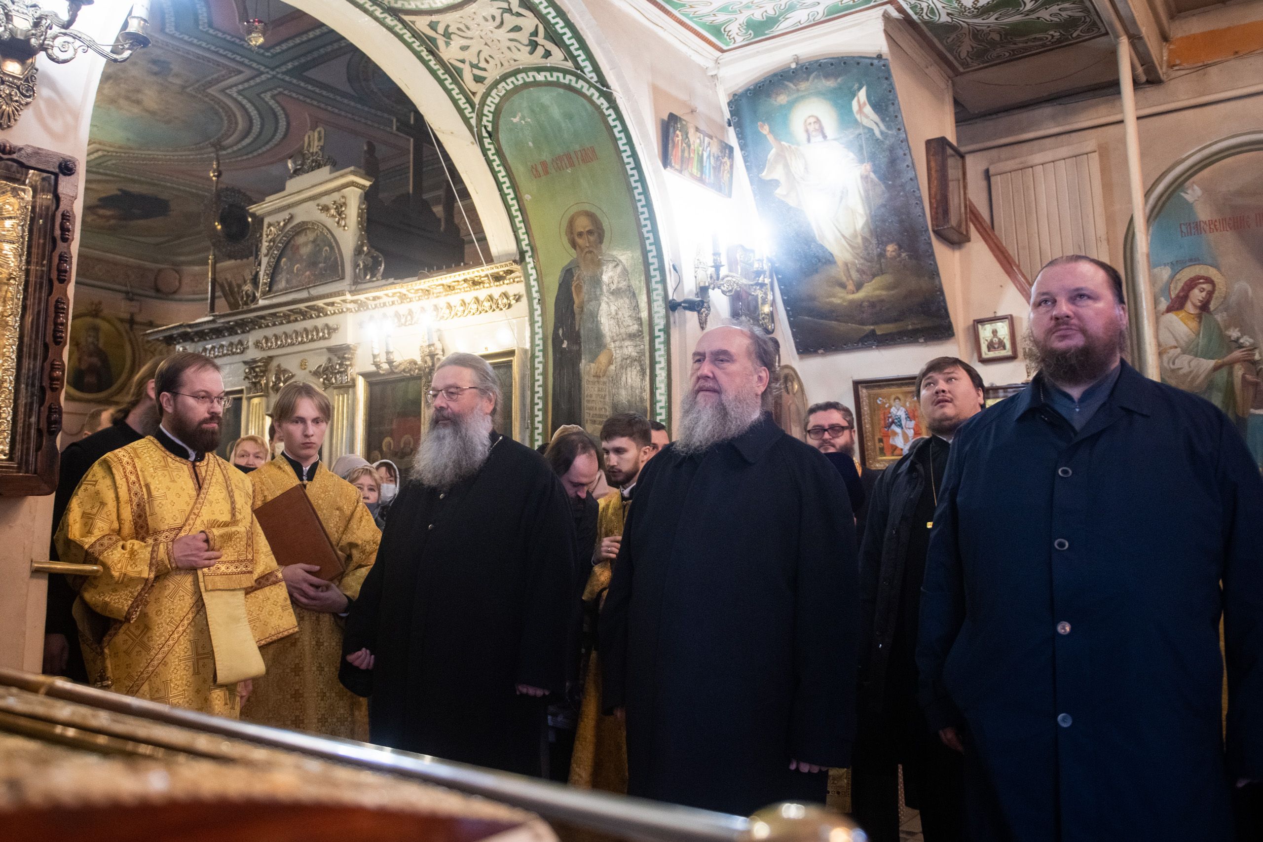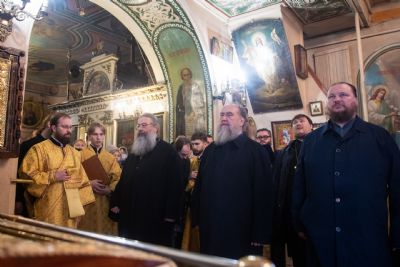 Митрополит Астанайский Александр, митрополит Казанский Кирилл и митрополит Костромской Ферапонт совершили славление святителю Гурию Казанского у раки с его честными мощами. Затем архипастыри помолились на могилах архиепископа Сергия (Королёва) и архиепископа Иустина (Мальцева) за алтарём храма.