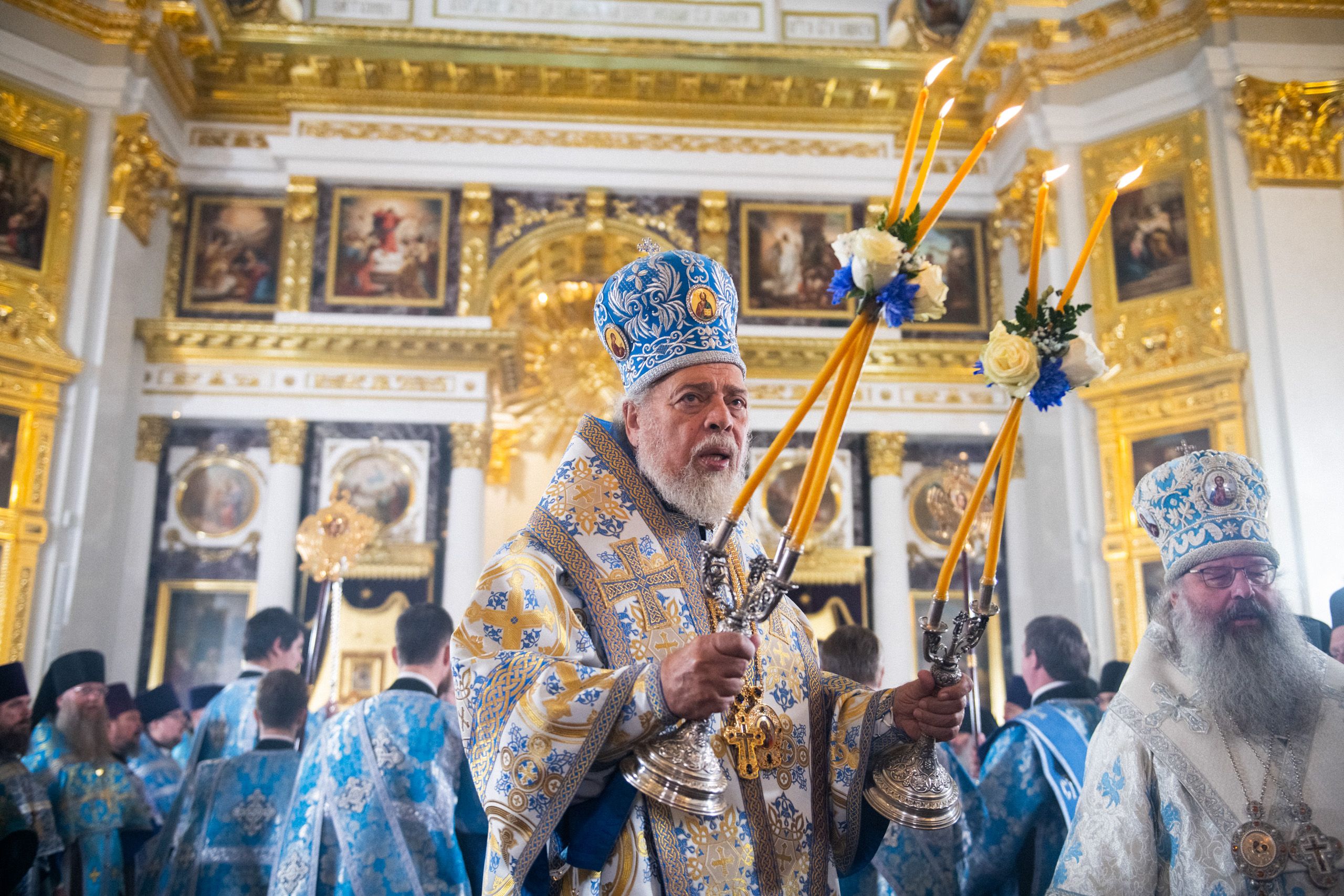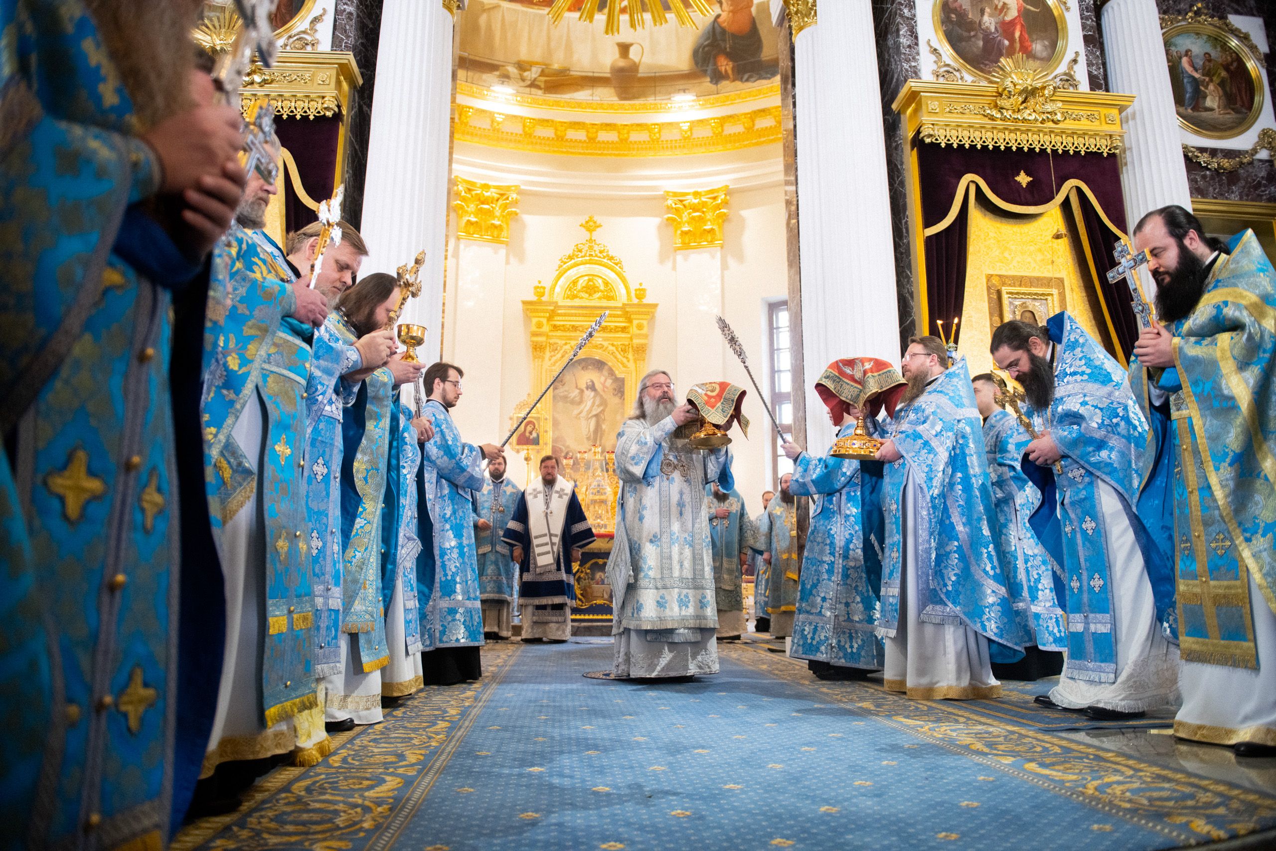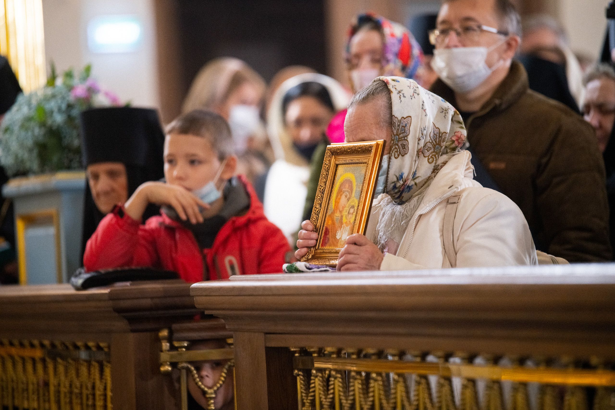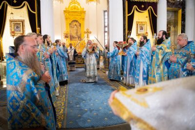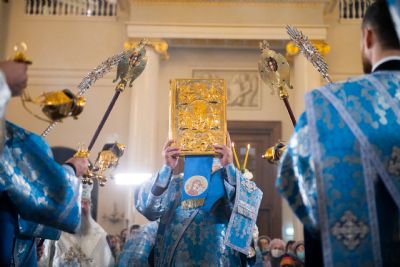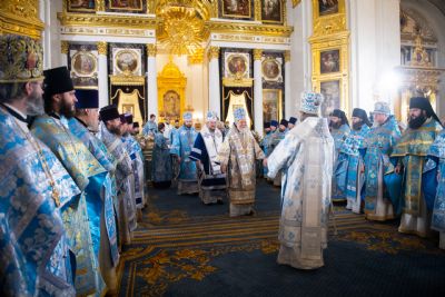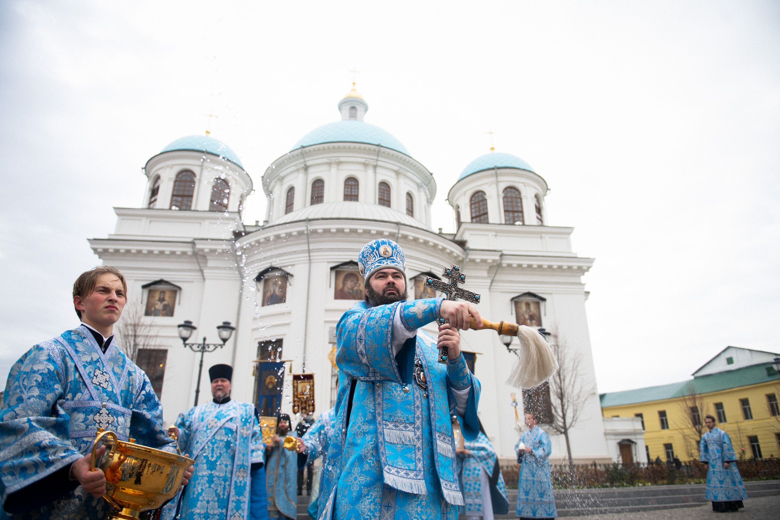 После отпуста архипастыри, духовенство и миряне прошли с Казанской иконой Богородицы и пением молитв Царице Небесной крестным ходом вокруг храма.