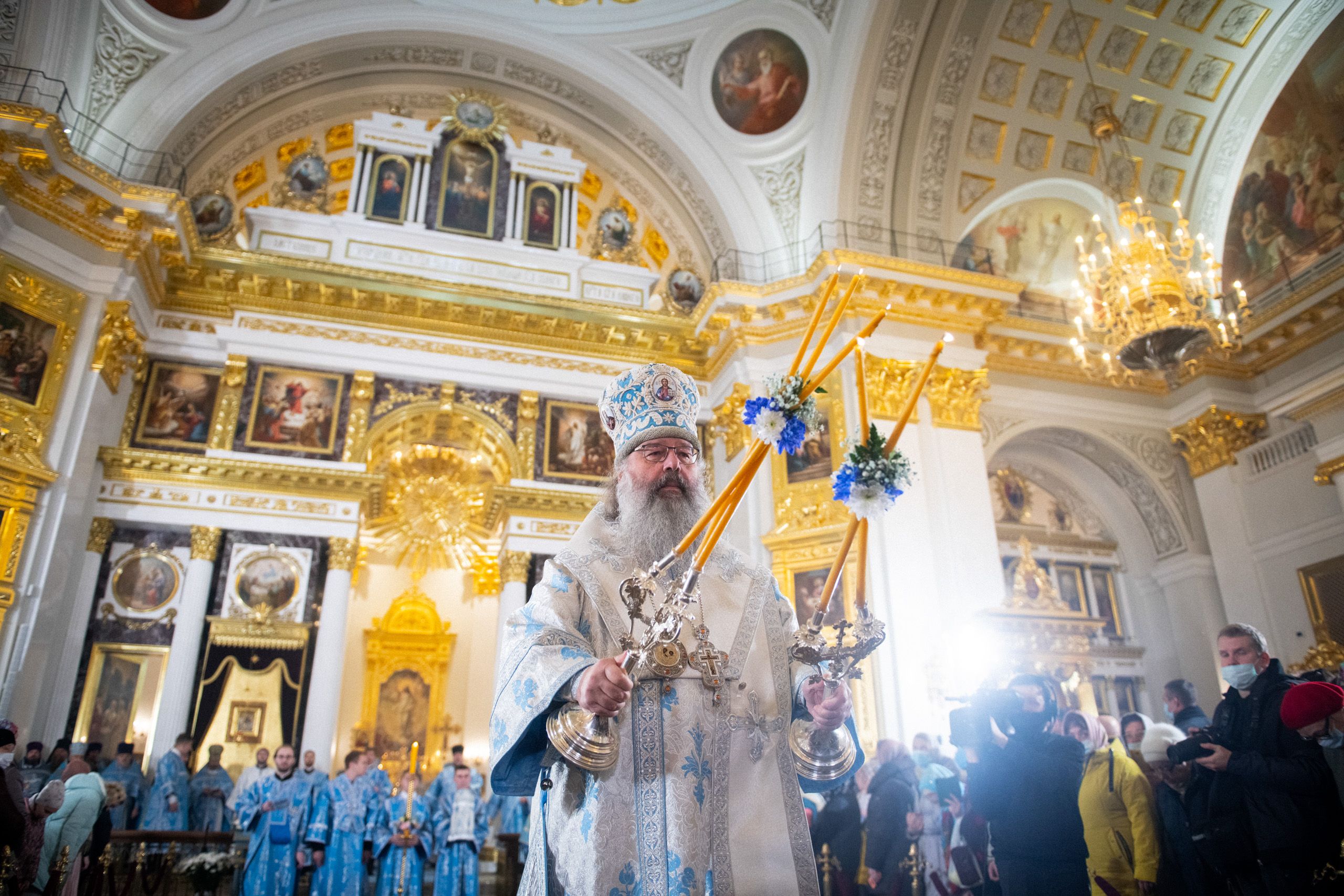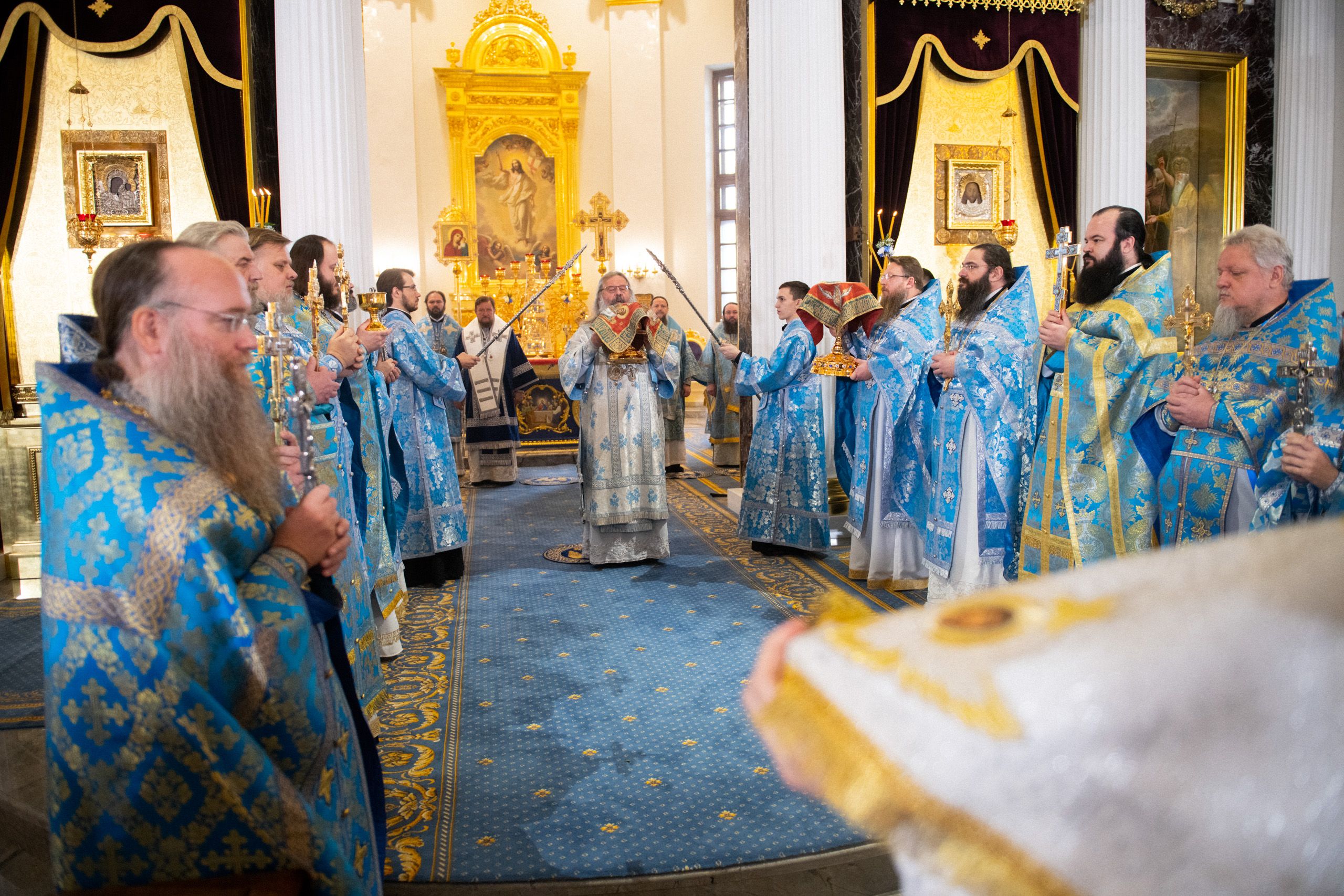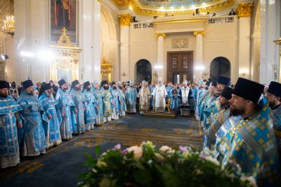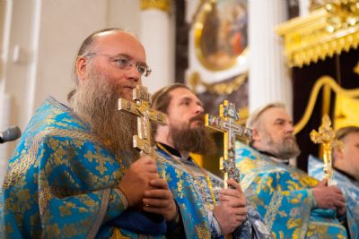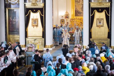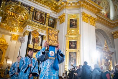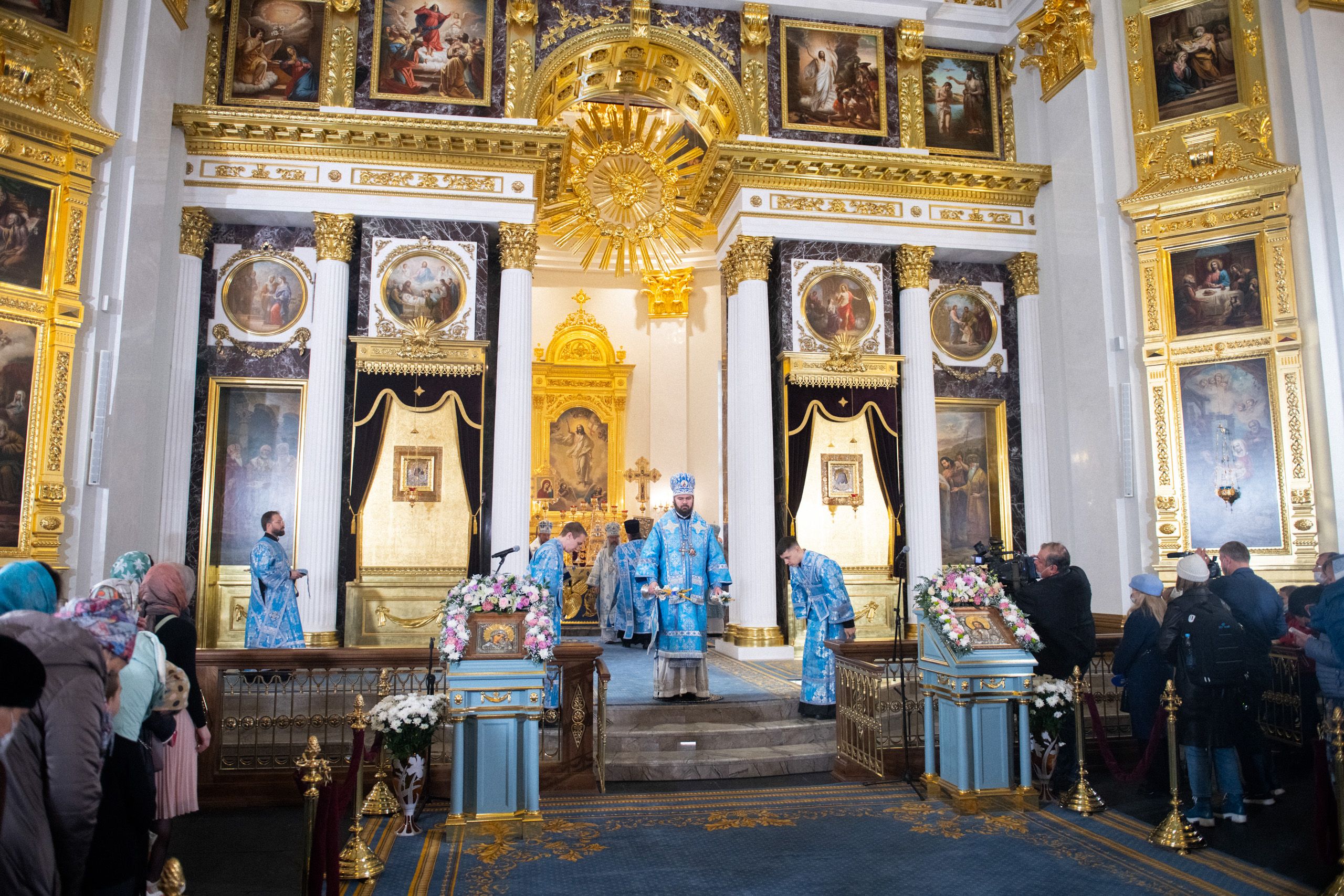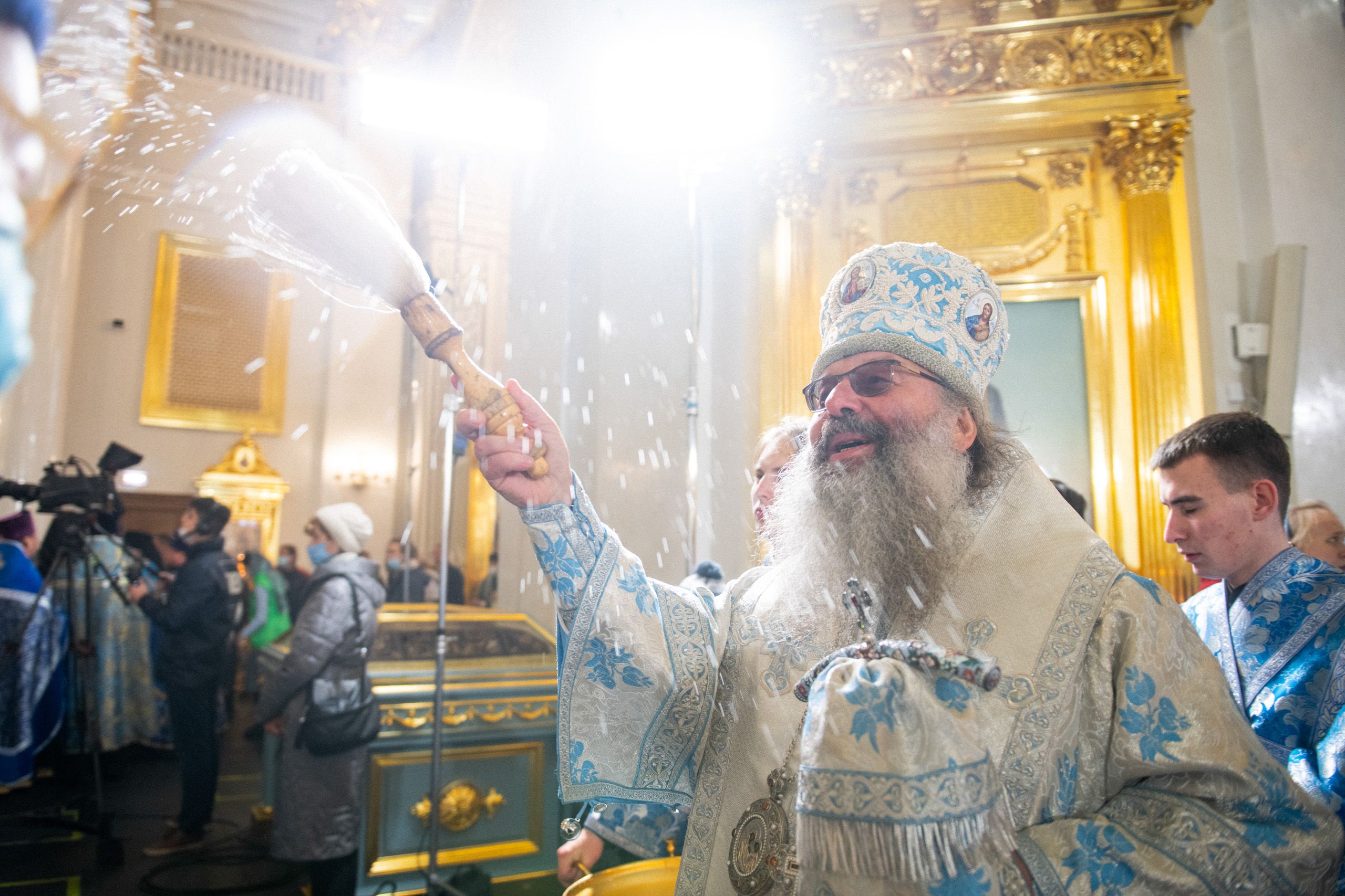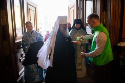 После отпуста архипастыри, духовенство и миряне прошли с Казанской иконой Богородицы и пением молитв Царице Небесной крестным ходом вокруг храма.