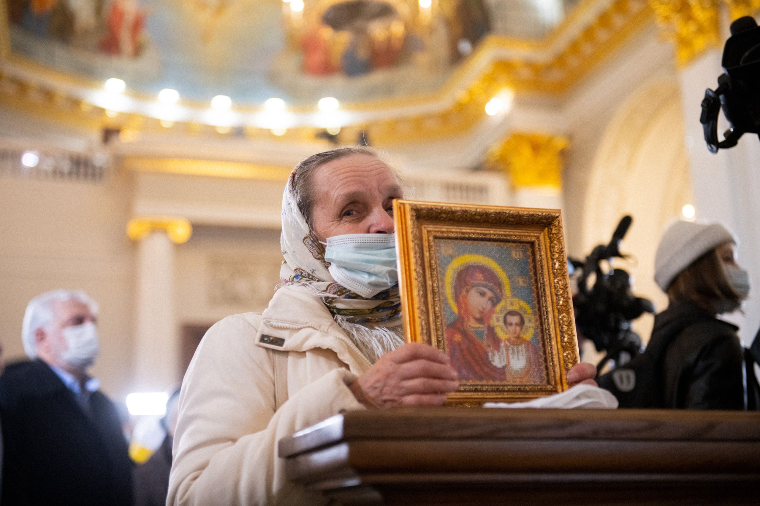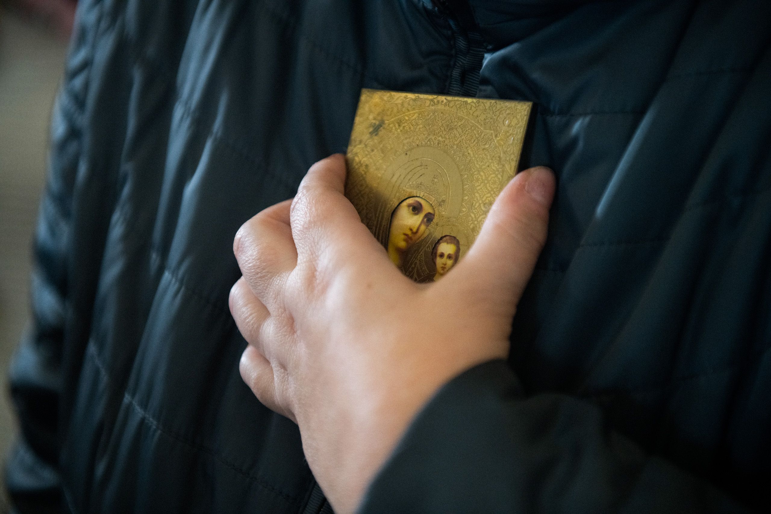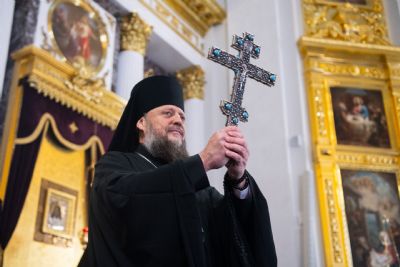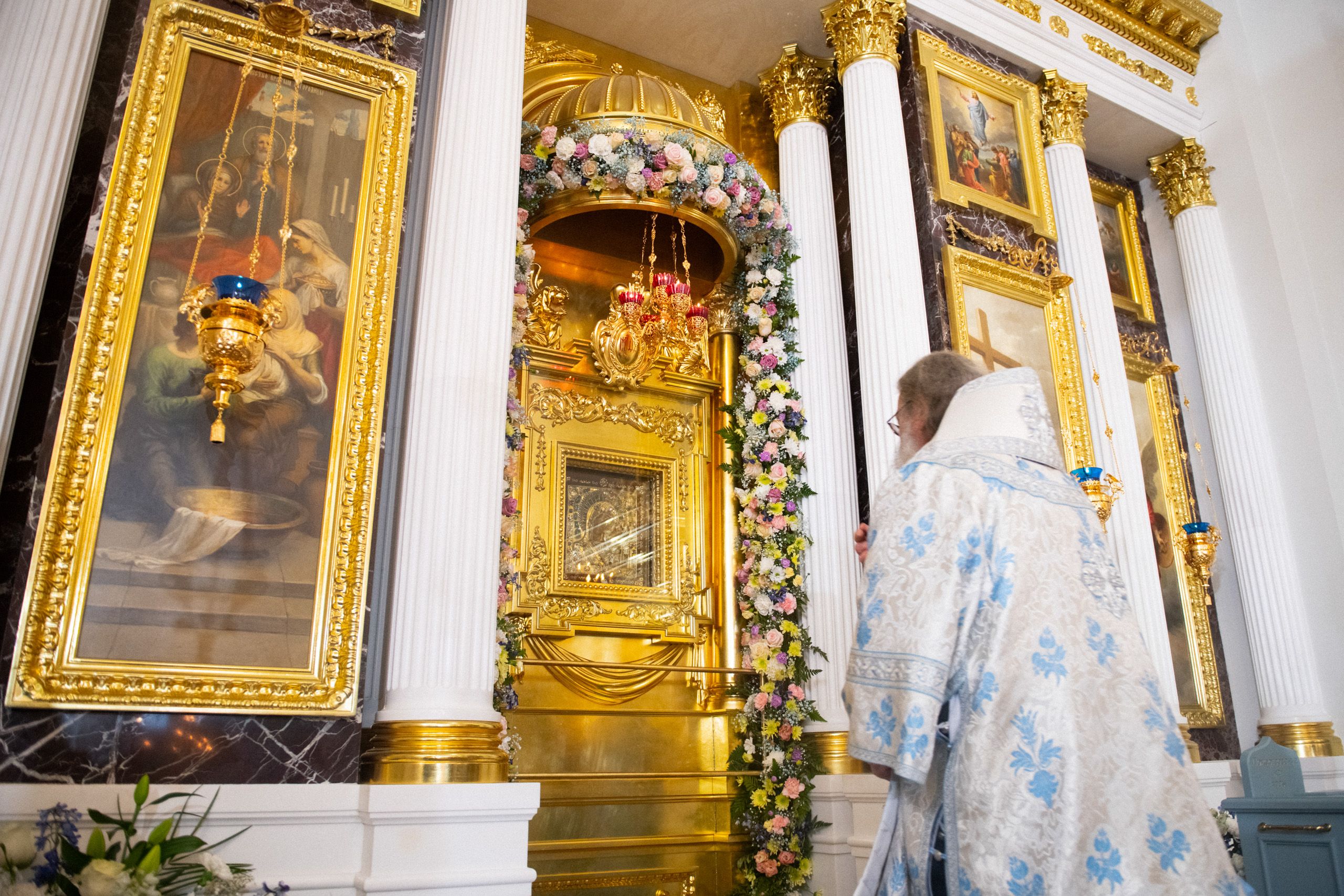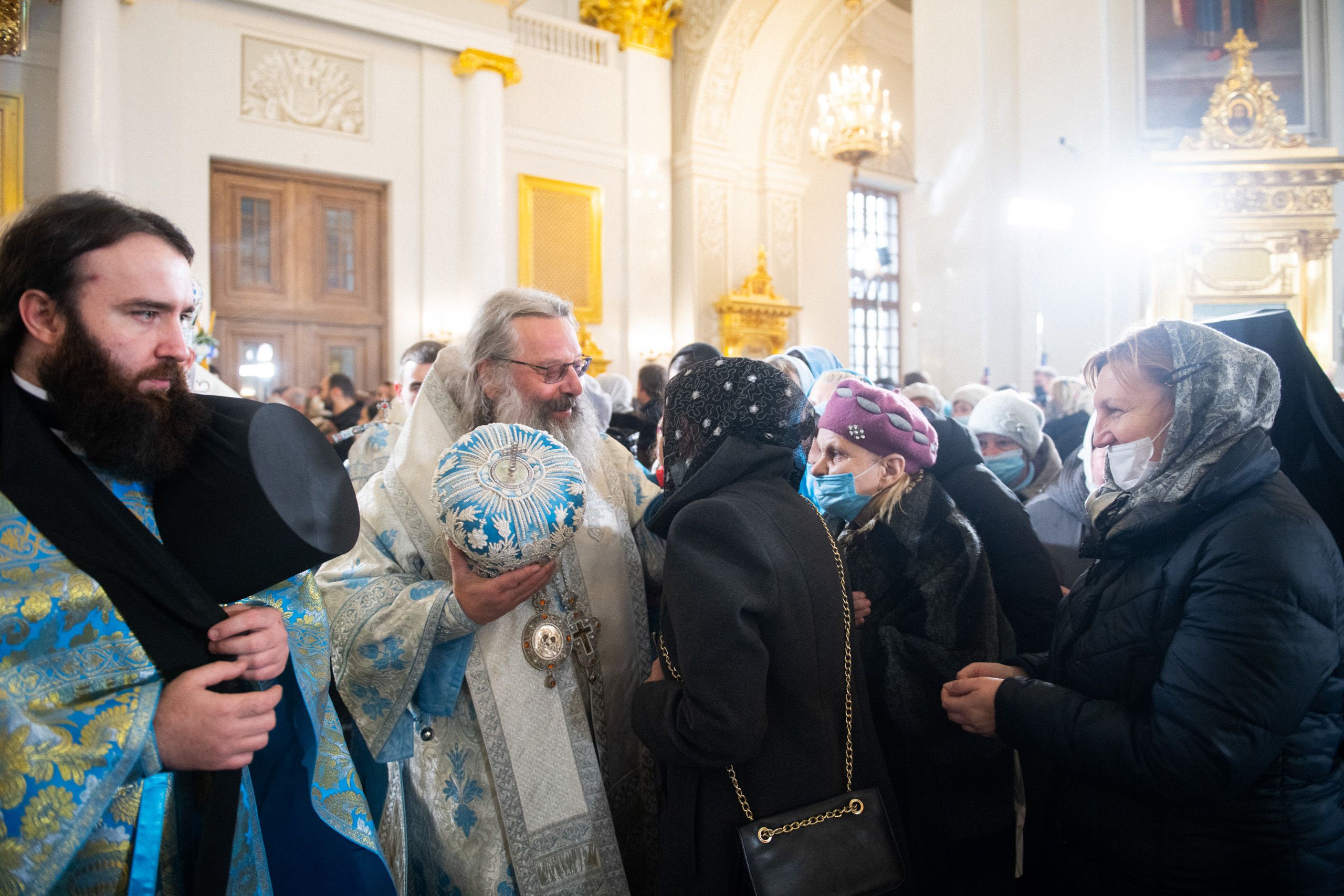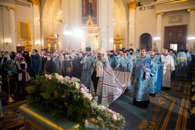 После отпуста архипастыри, духовенство и миряне прошли с Казанской иконой Богородицы и пением молитв Царице Небесной крестным ходом вокруг храма.