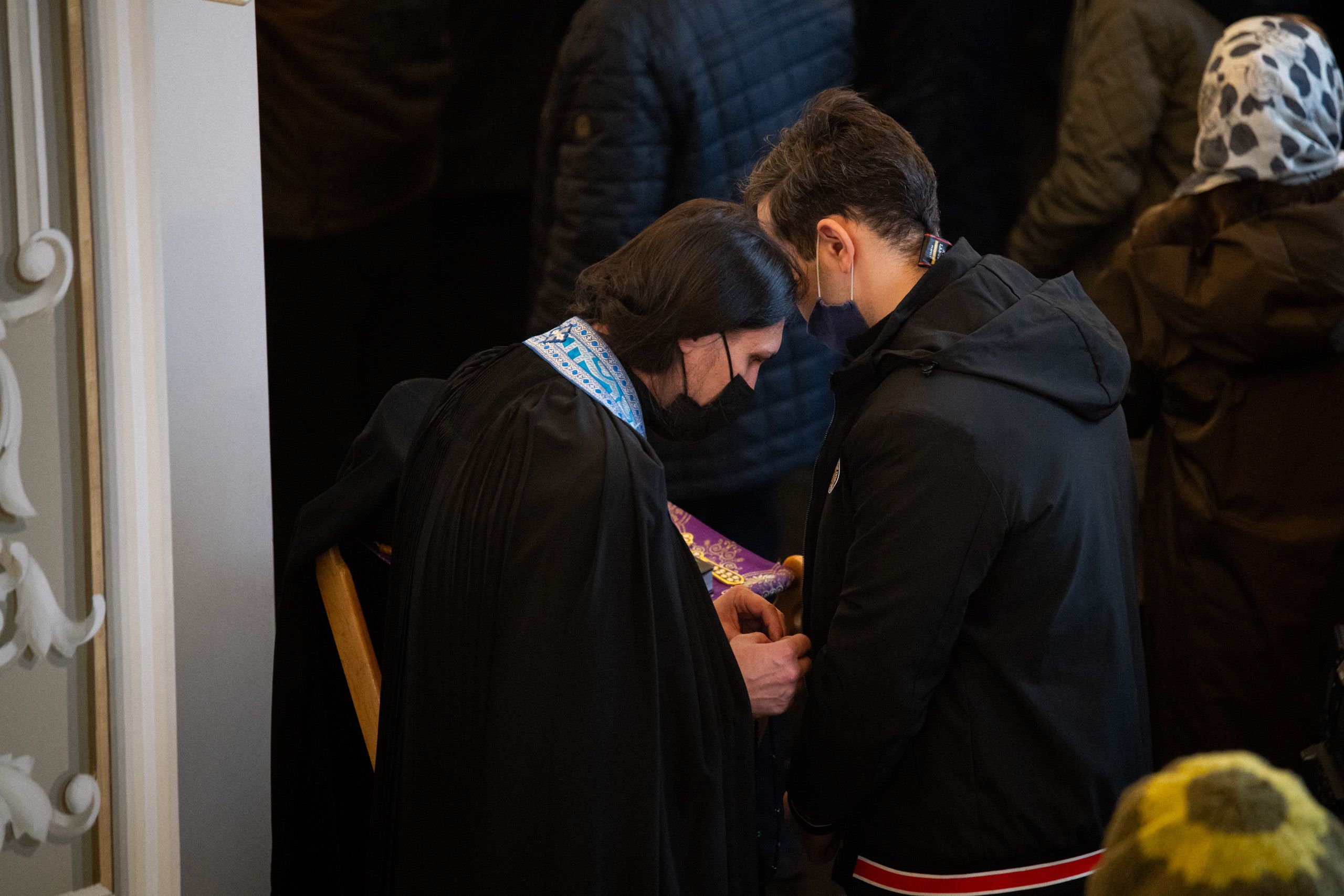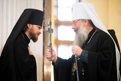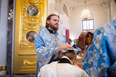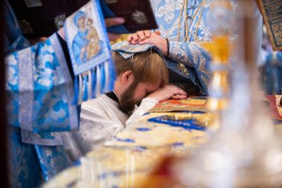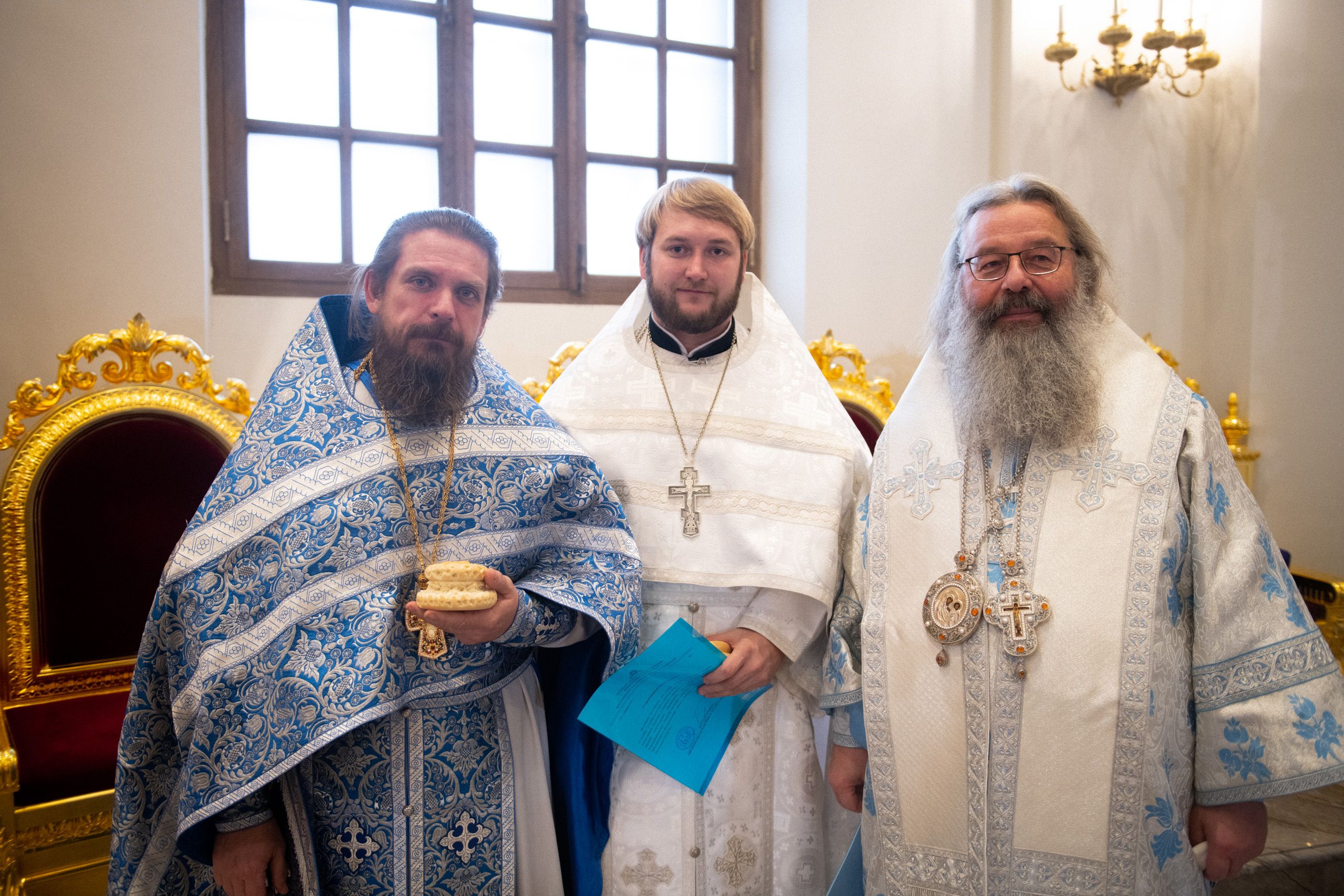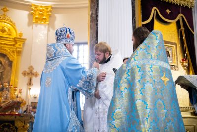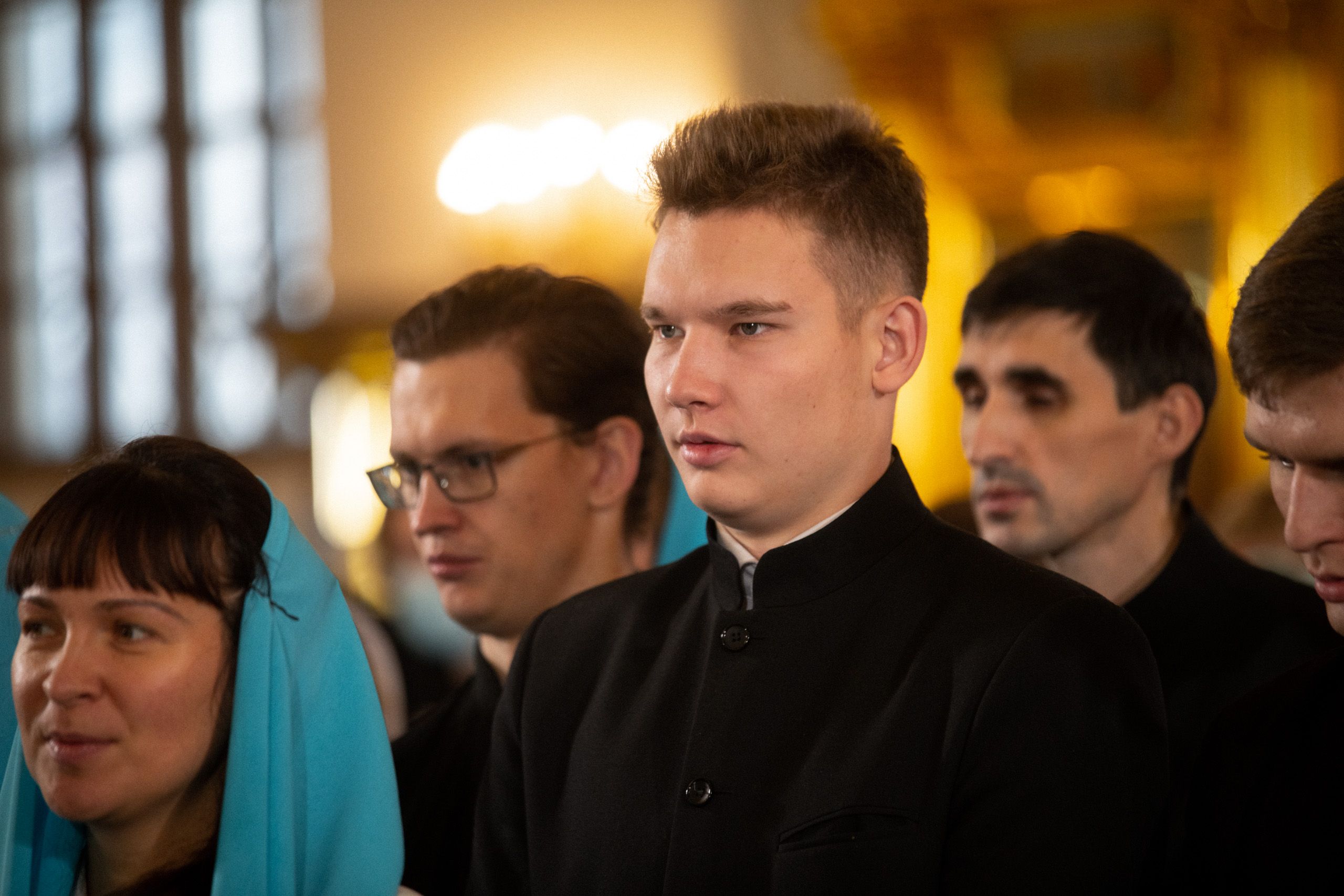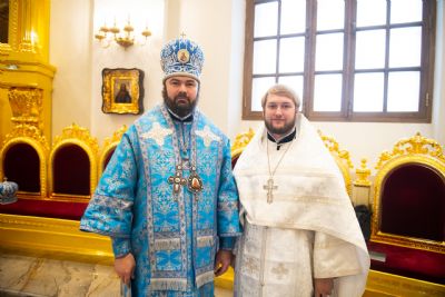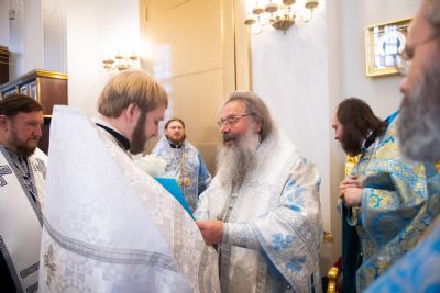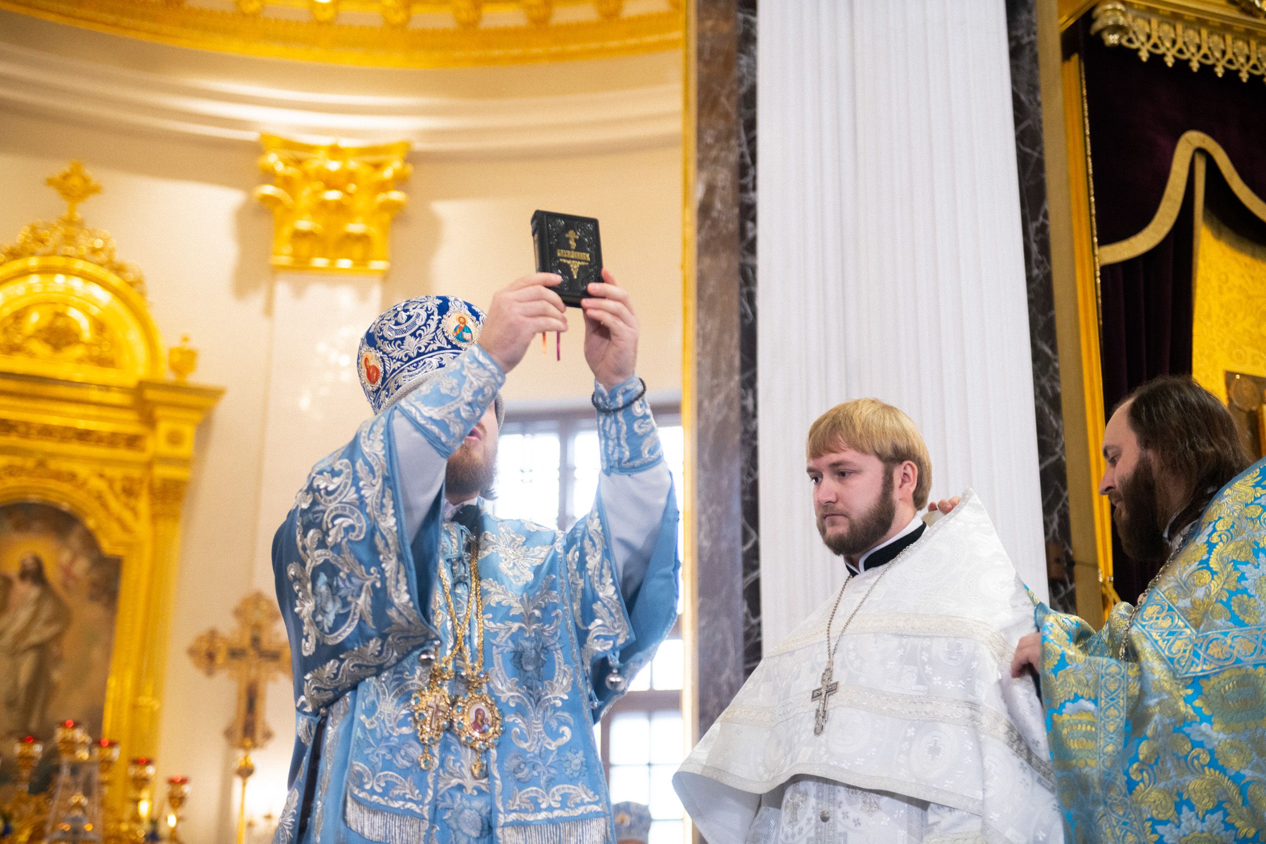 После великого входа по просьбе митрополита Казанского и Татарстанского Кирилла епископ Аргентинский и Южноамериканский Леонид совершил пресвитерскую хиротонию клирика Духосошественского храма города Казани диакона Артемия Лушкина.