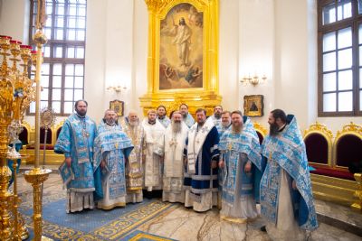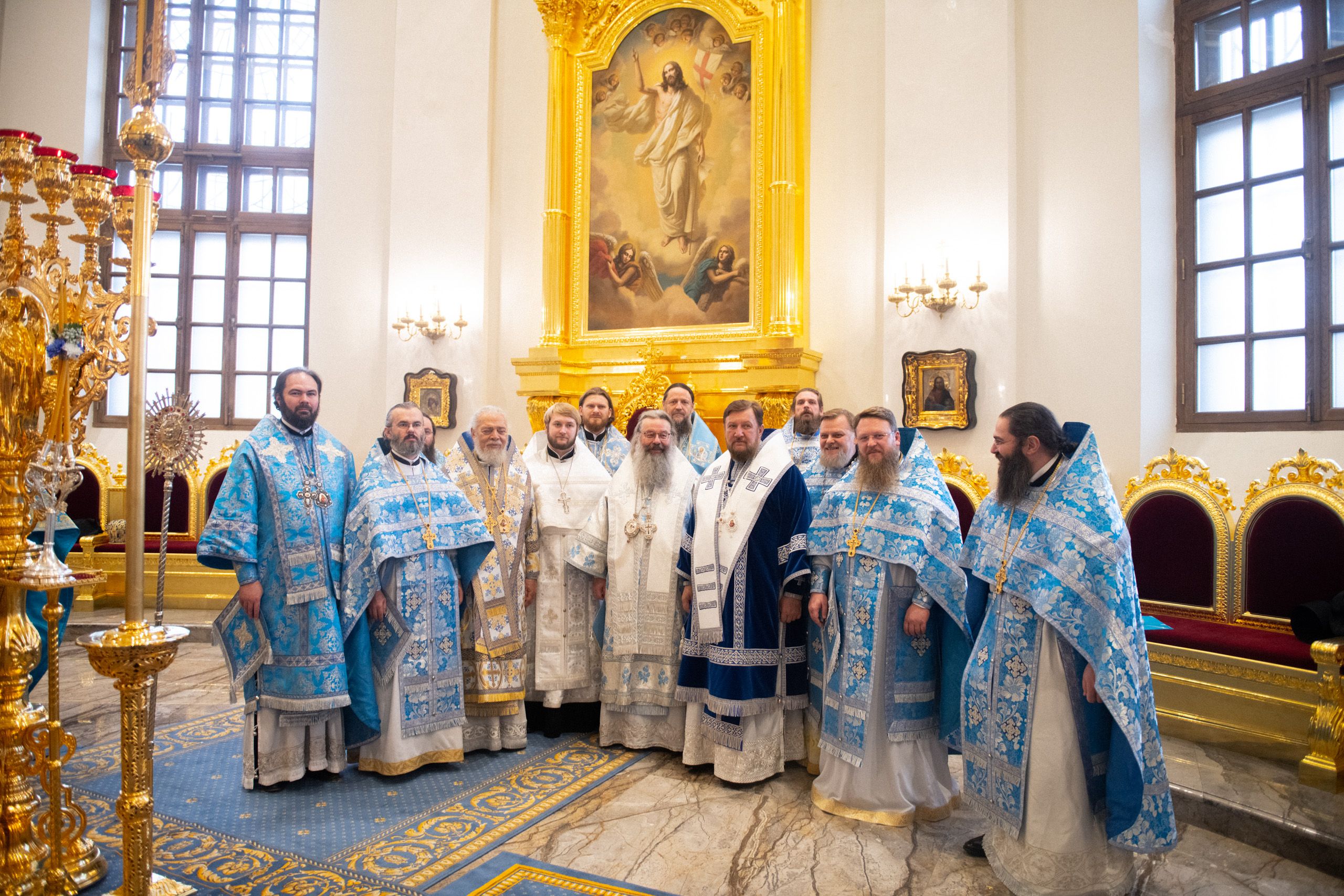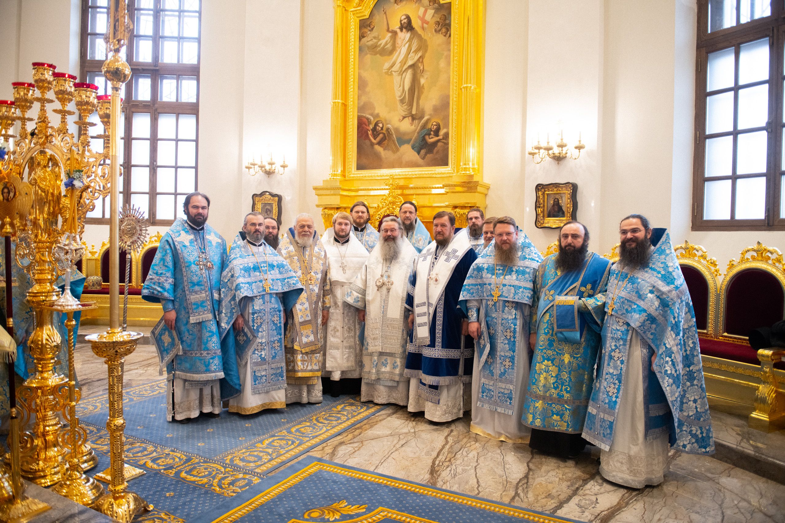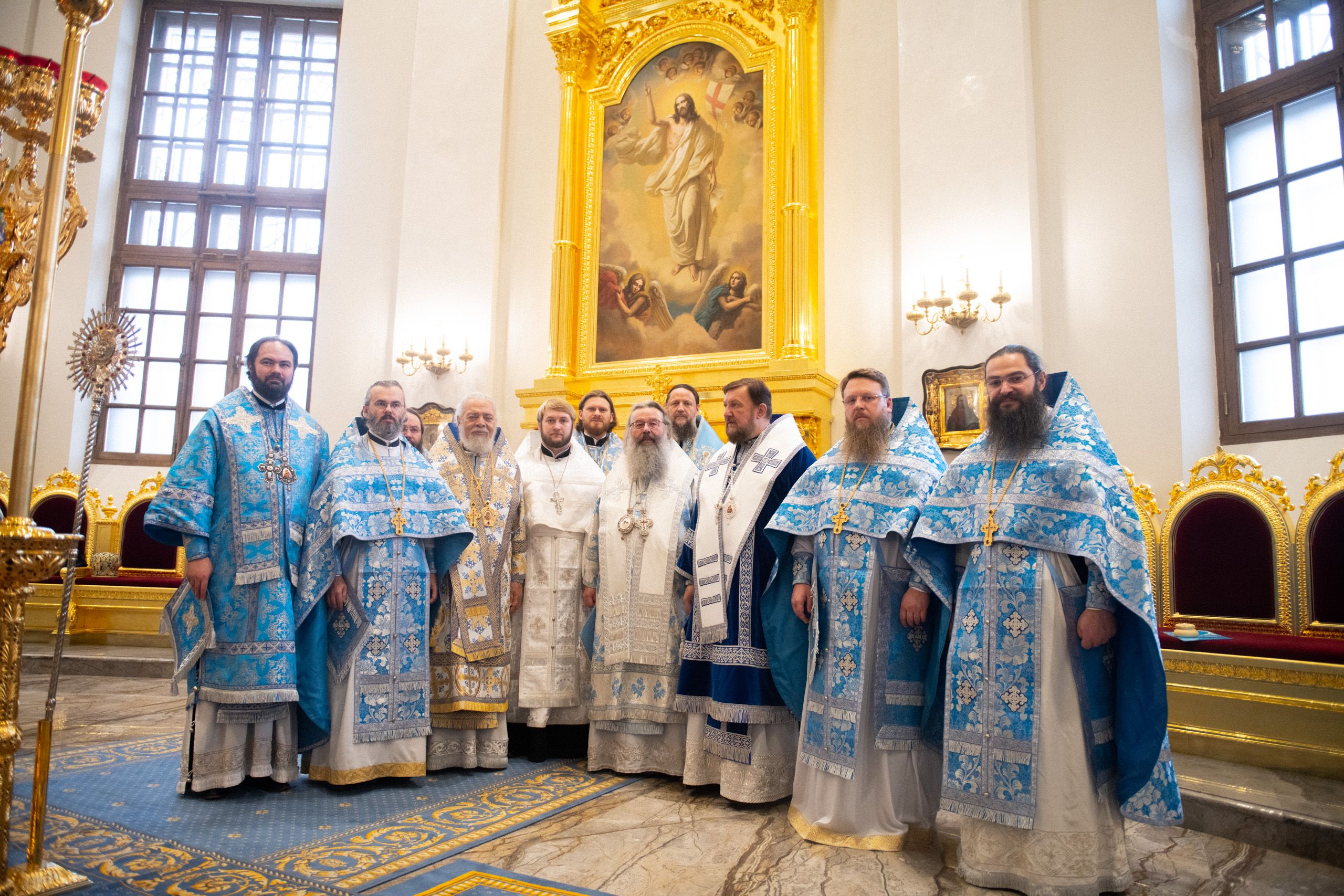 Архипастырям сослужили клирики Поместных Православных Церквей представитель Православной Церкви Чешских земель и Словакии при Патриархе Московском и всея Руси архимандрит Серафим (Шемятовский), представитель Православной Церкви в Америке при Патриархе Московском и всея Руси протоиерей Даниил Андреюк, клирик Грузинской Православной Церкви протоиерей Кахабер Гоготишвили; а также секретарь Татарстанской митрополии иеромонах Кирилл (Корытко), ректор Казанской духовной семинарии протоиерей Владимир Самойленко, наместник Казанско-Богородицкого мужского монастыря игумен Марк (Виленский), председатель Экспертного совета по церковному искусству, архитектуре и реставрации протоиерей Леонид Калинин, настоятели и наместники монастырей, благочинные церковных округов и настоятели храмов епархий Татарстанской митрополии.