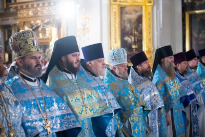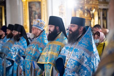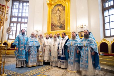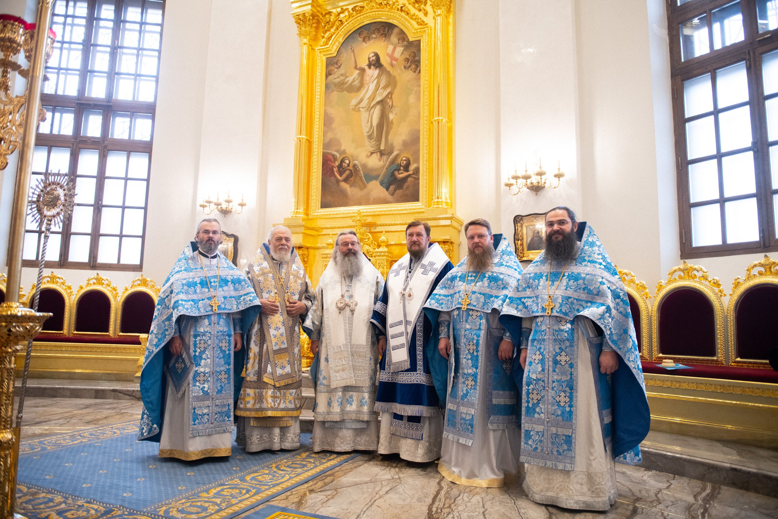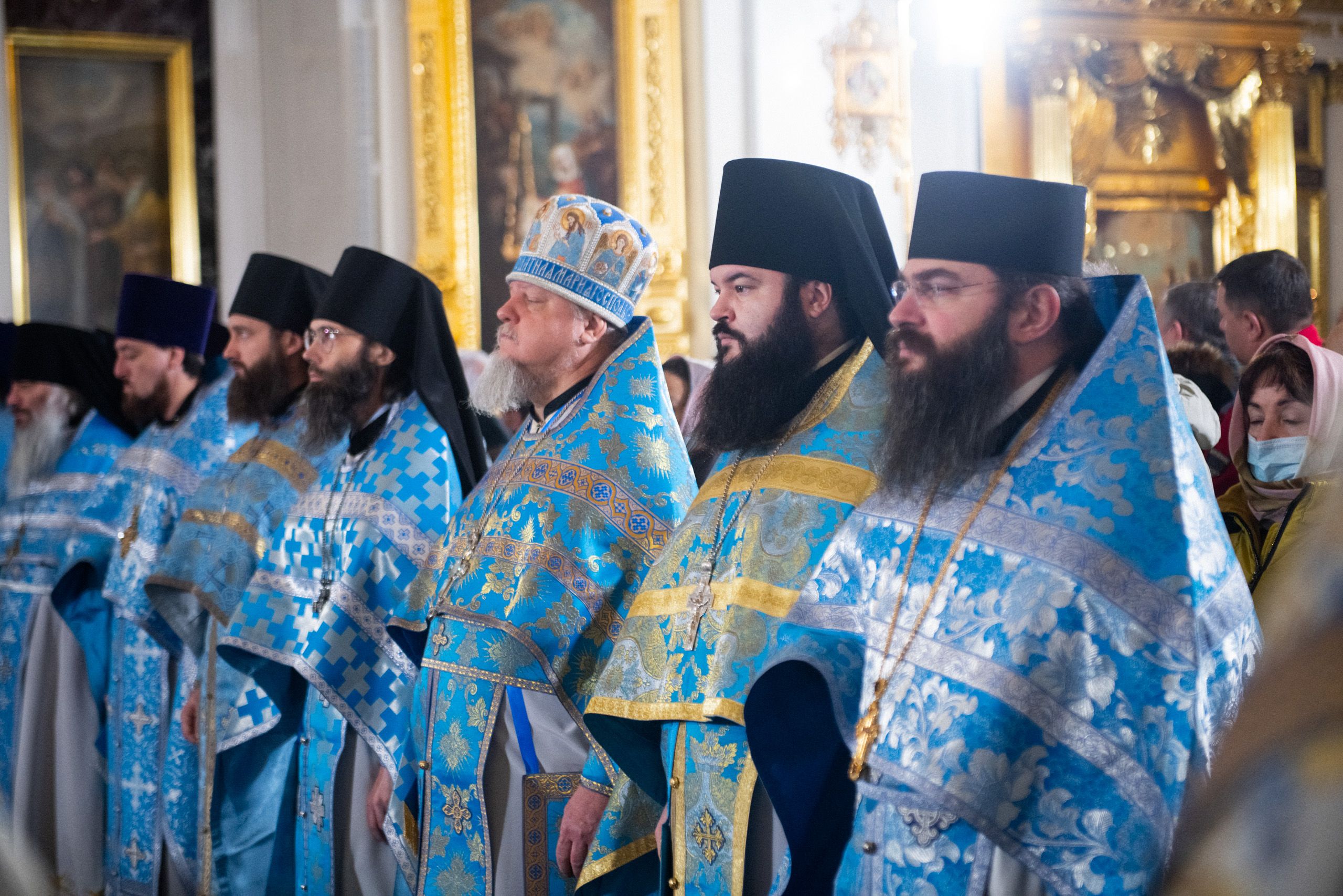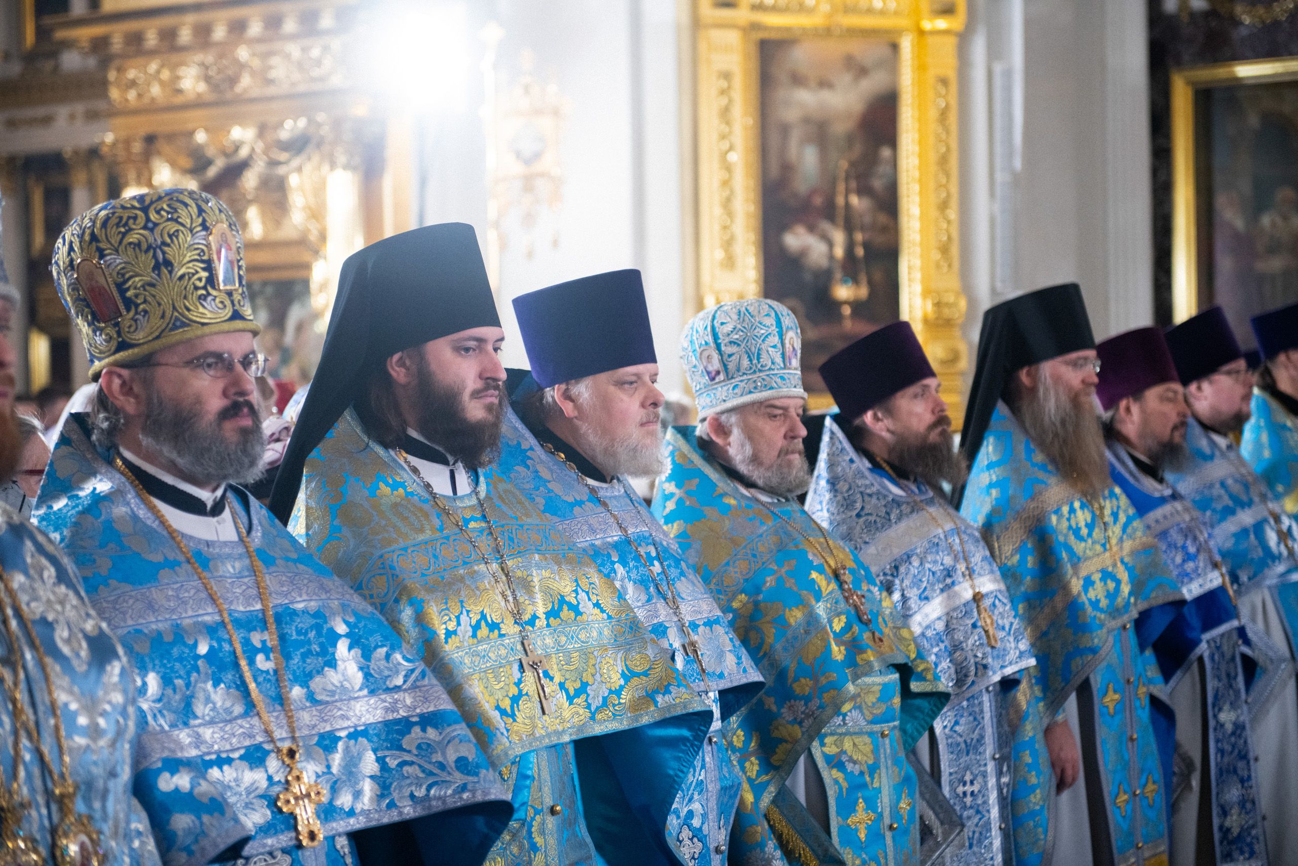 Архипастырям сослужили клирики Поместных Православных Церквей представитель Православной Церкви Чешских земель и Словакии при Патриархе Московском и всея Руси архимандрит Серафим (Шемятовский), представитель Православной Церкви в Америке при Патриархе Московском и всея Руси протоиерей Даниил Андреюк, клирик Грузинской Православной Церкви протоиерей Кахабер Гоготишвили; а также секретарь Татарстанской митрополии иеромонах Кирилл (Корытко), ректор Казанской духовной семинарии протоиерей Владимир Самойленко, наместник Казанско-Богородицкого мужского монастыря игумен Марк (Виленский), председатель Экспертного совета по церковному искусству, архитектуре и реставрации протоиерей Леонид Калинин, настоятели и наместники монастырей, благочинные церковных округов и настоятели храмов епархий Татарстанской митрополии.