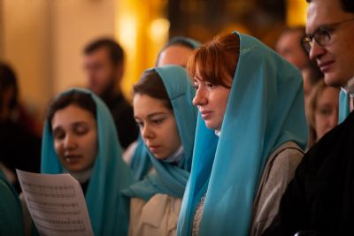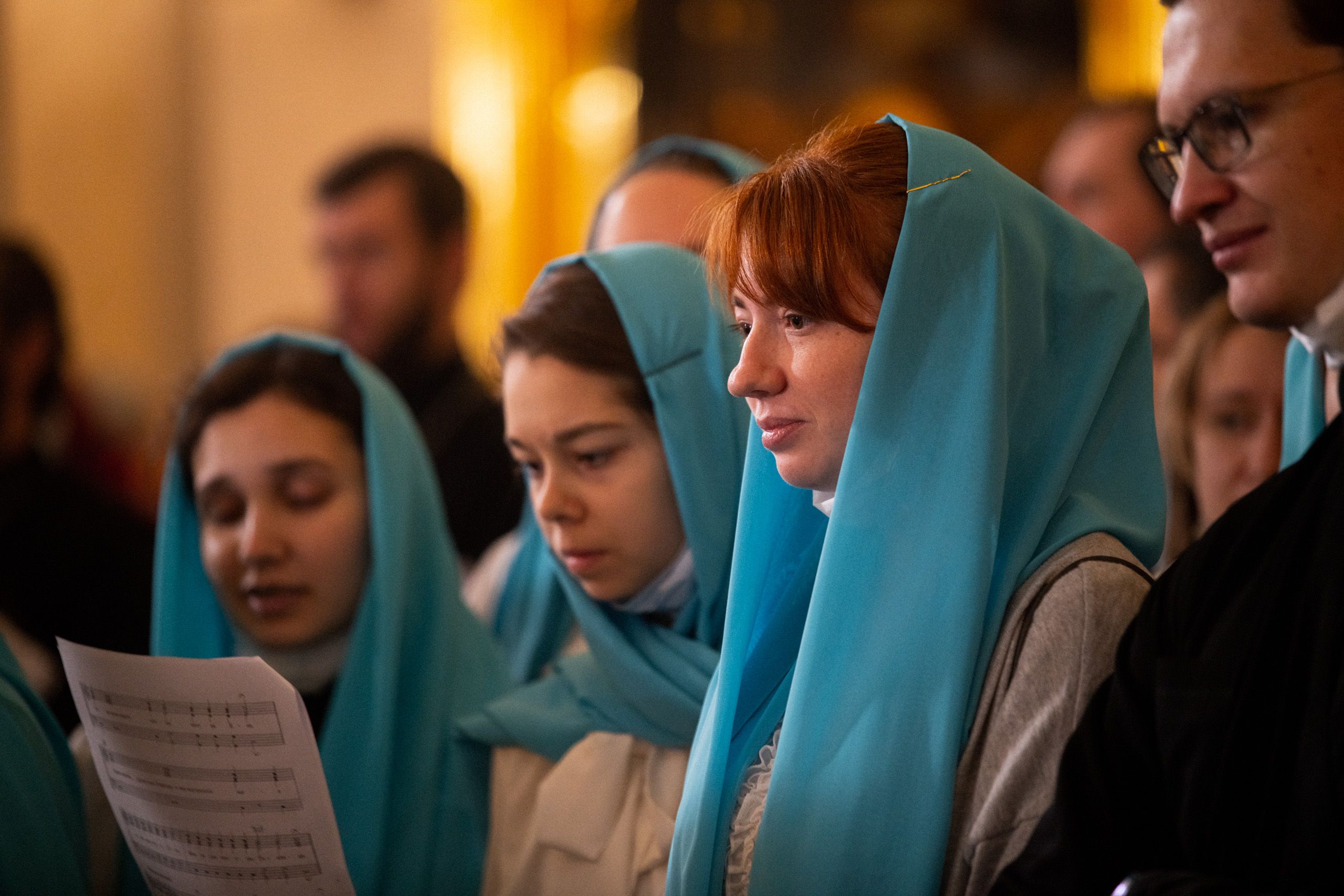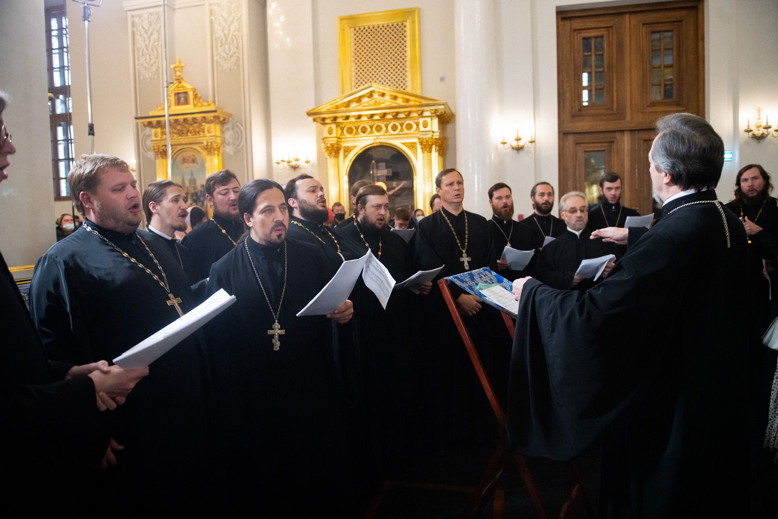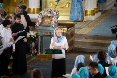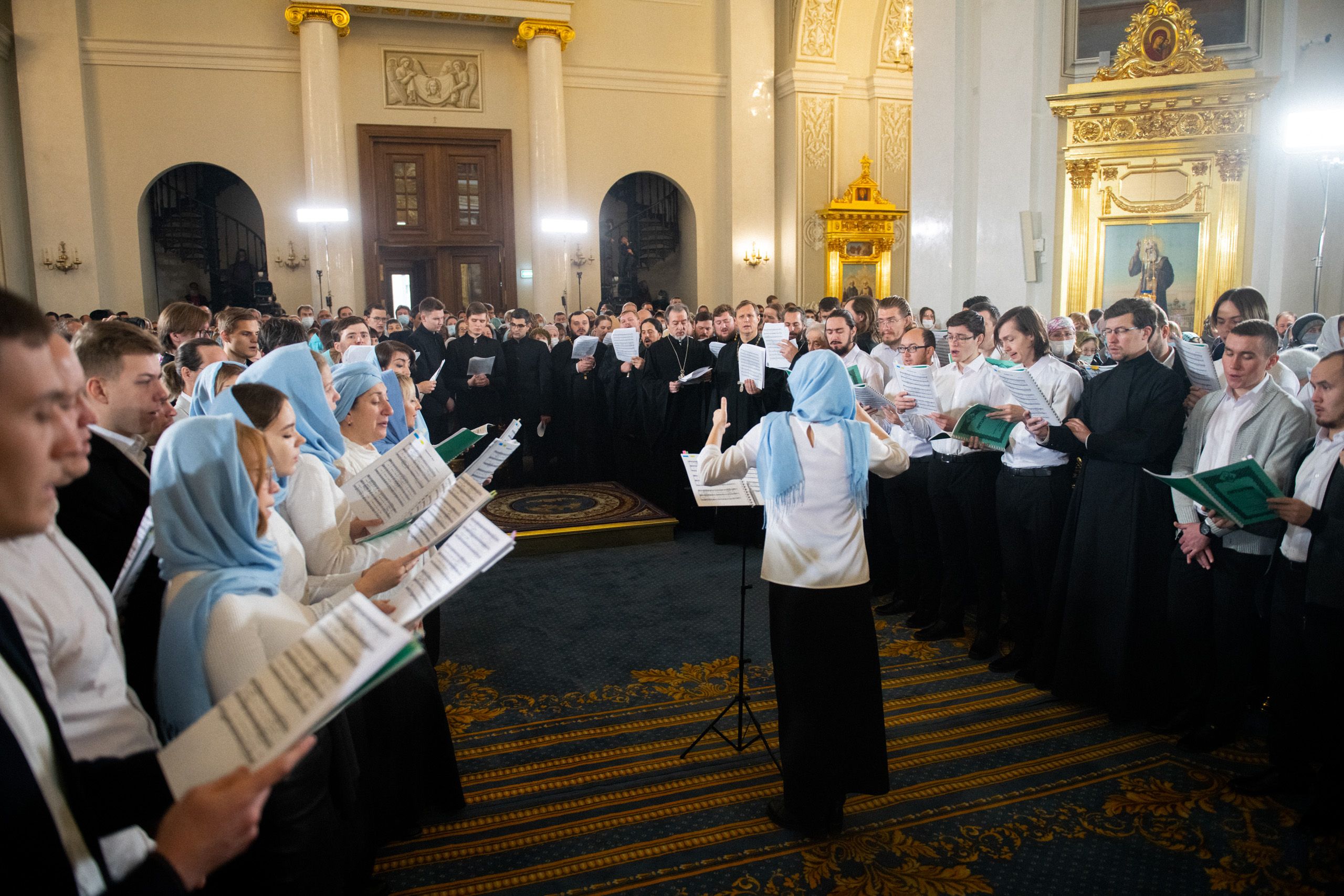 Богослужебные песнопения исполнялись мужским архиерейским хором под управлением Дениса Рогова, смешанным архиерейским хором под управлением Марины Литвиненко, мужским хором духовенства Казанской епархии, смешанным хором Казанской духовной семинарии.