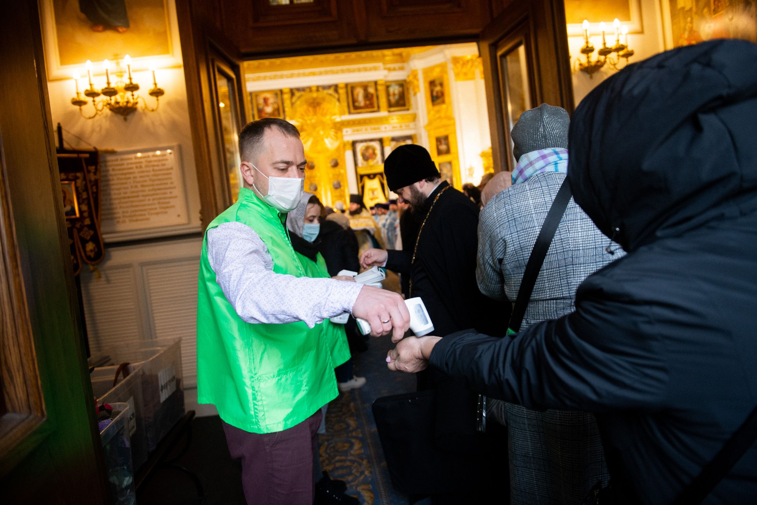 За соблюдением мер по профилактике распространения коронавирусной инфекции следили представители молодёжного движения «Казанские православные добровольцы».