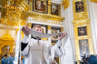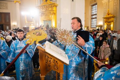 Проповедь по запричастном стихе произнёс благочинный I Казанского округа протоиерей Алексий Чубаков.