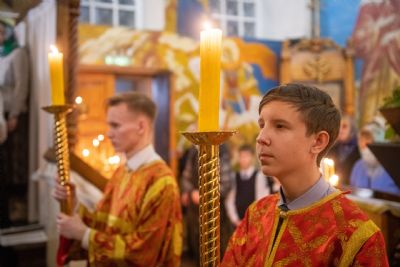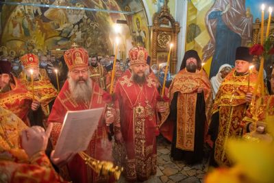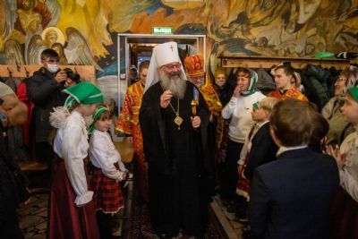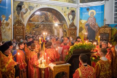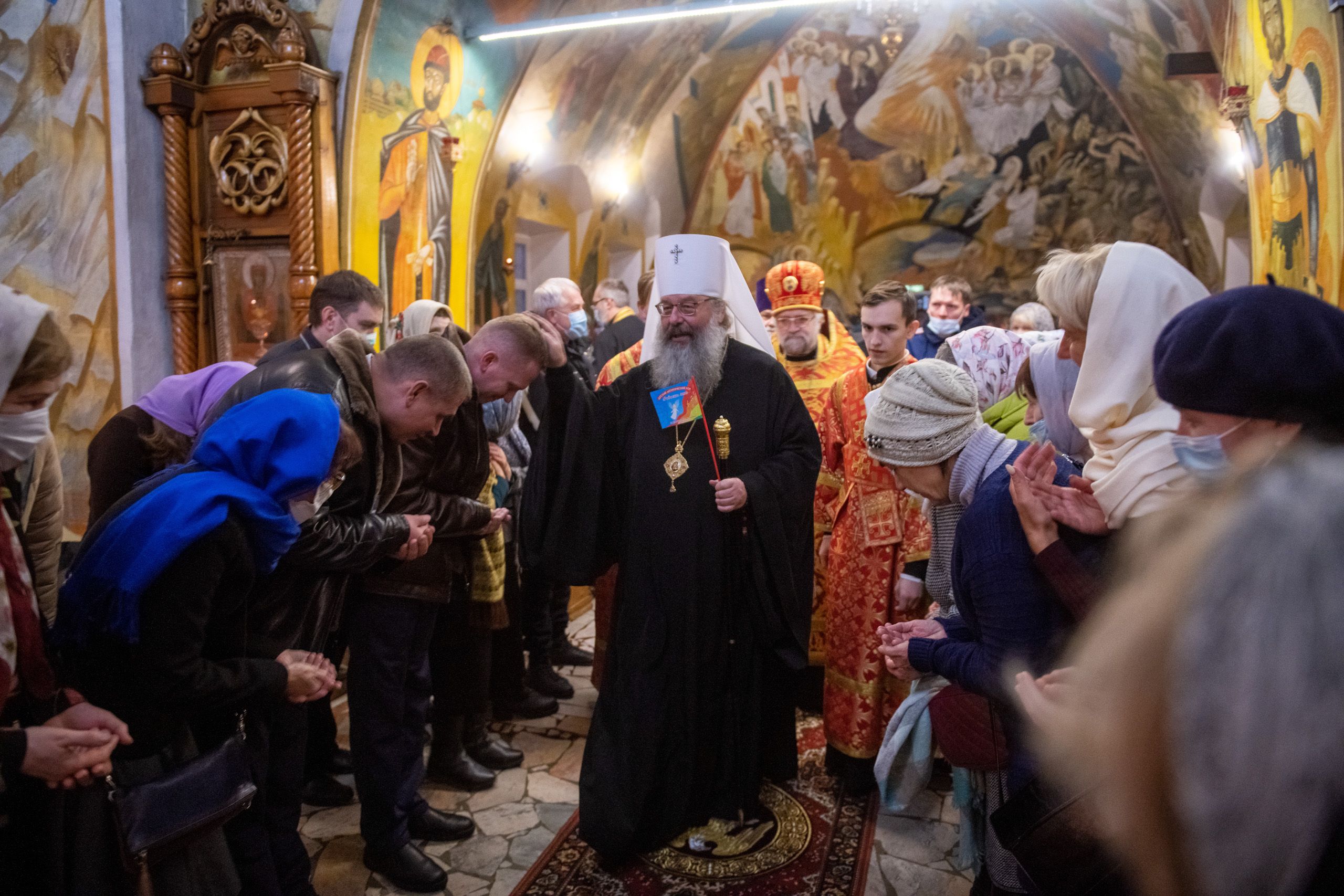 В завершение всенощного бдения духовенством и мирянами были пропеты тропарь, кондак и величание святым покровителям храма бессребреникам и чудотворцам Косме и Дамиану. Митрополит Кирилл преподал верующим благословение.