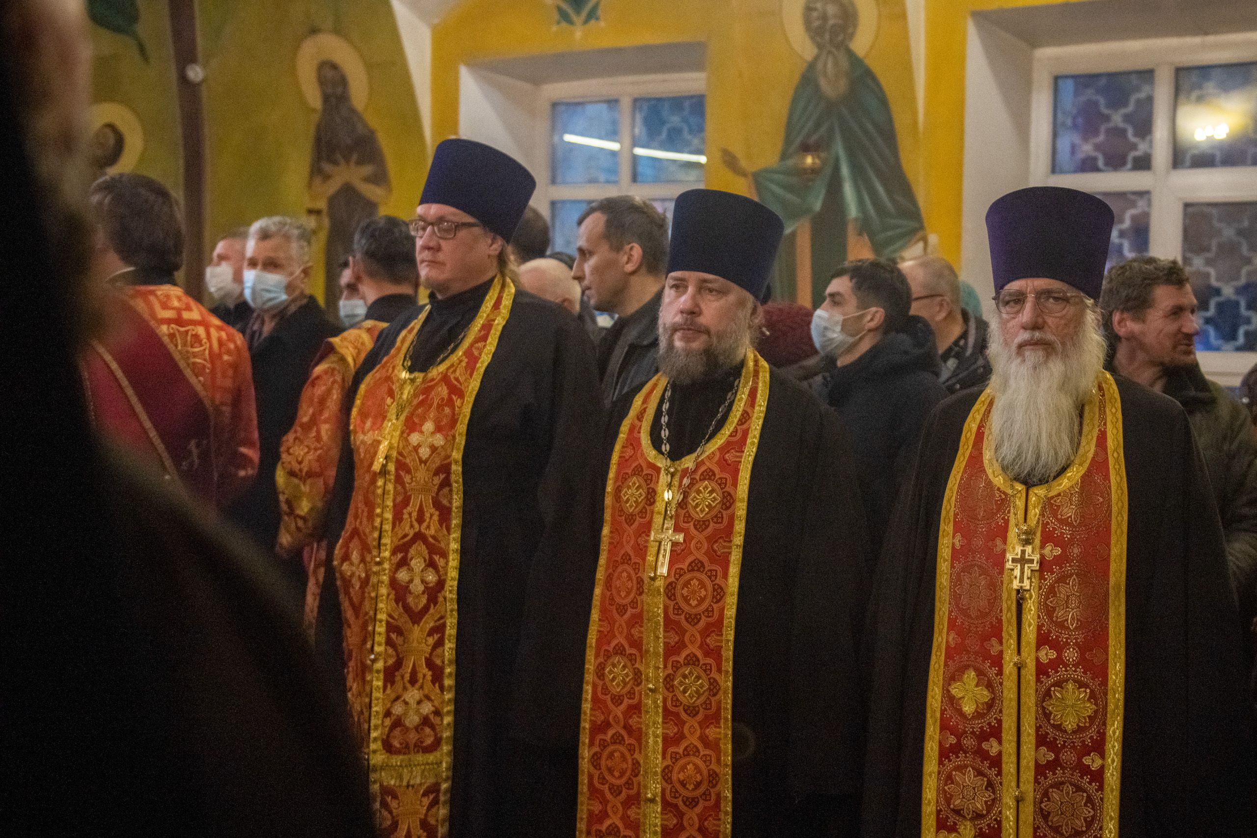 Архипастырям сослужили секретарь Татарстанской митрополии иеромонах Кирилл (Корытко), благочинный Закамского округа протоиерей Андрей Дубровин, настоятель храма святых Космы и Дамиана протоиерей Олег Богданов, благочинный I Казанского округа протоиерей Алексий Чубаков, настоятели храмов Набережных Челнов, клирики Космо-Дамиановского прихода.