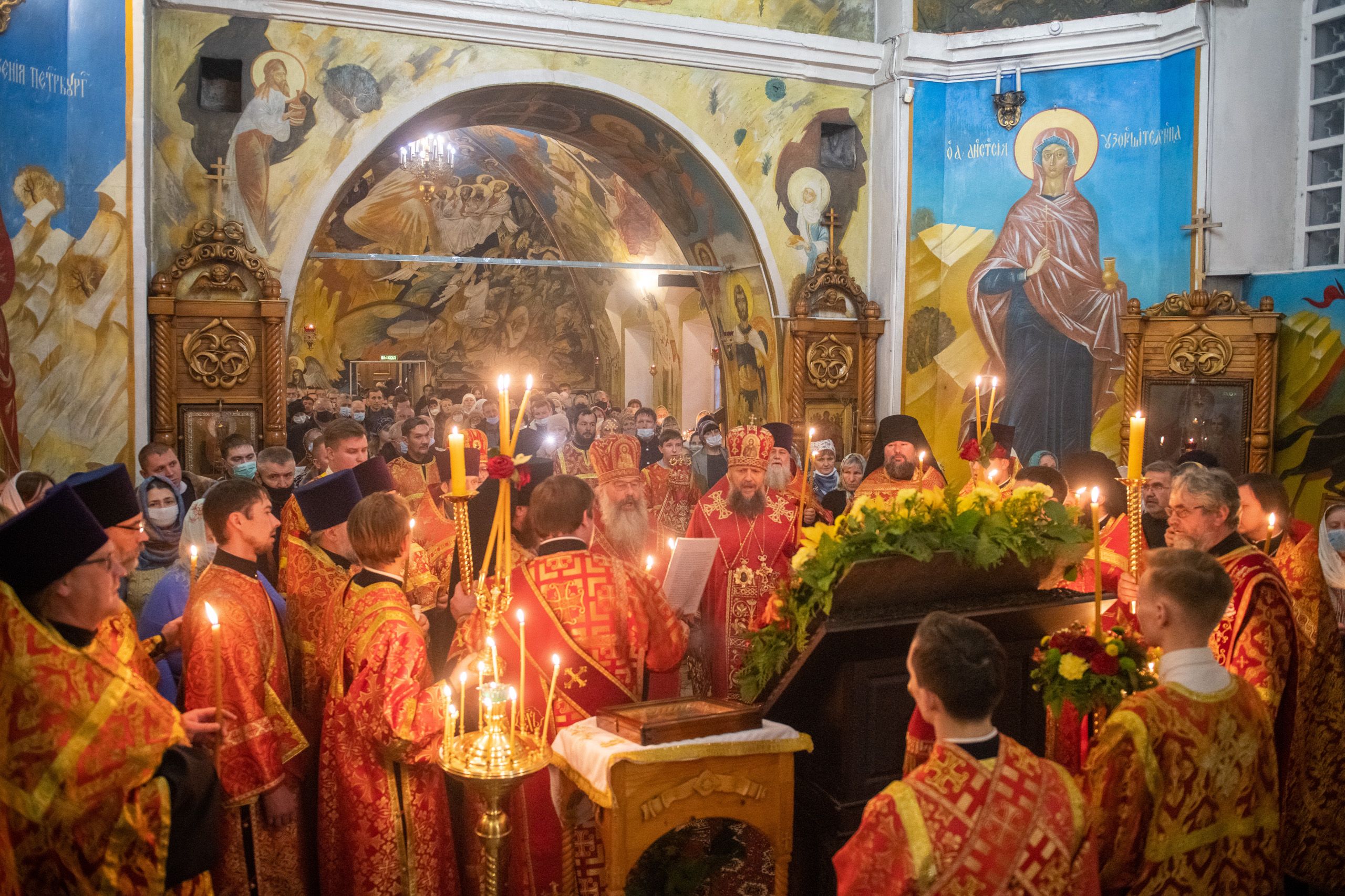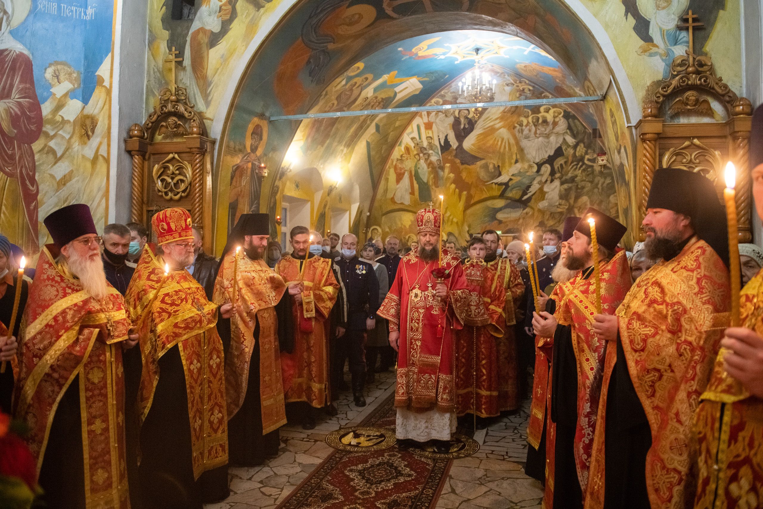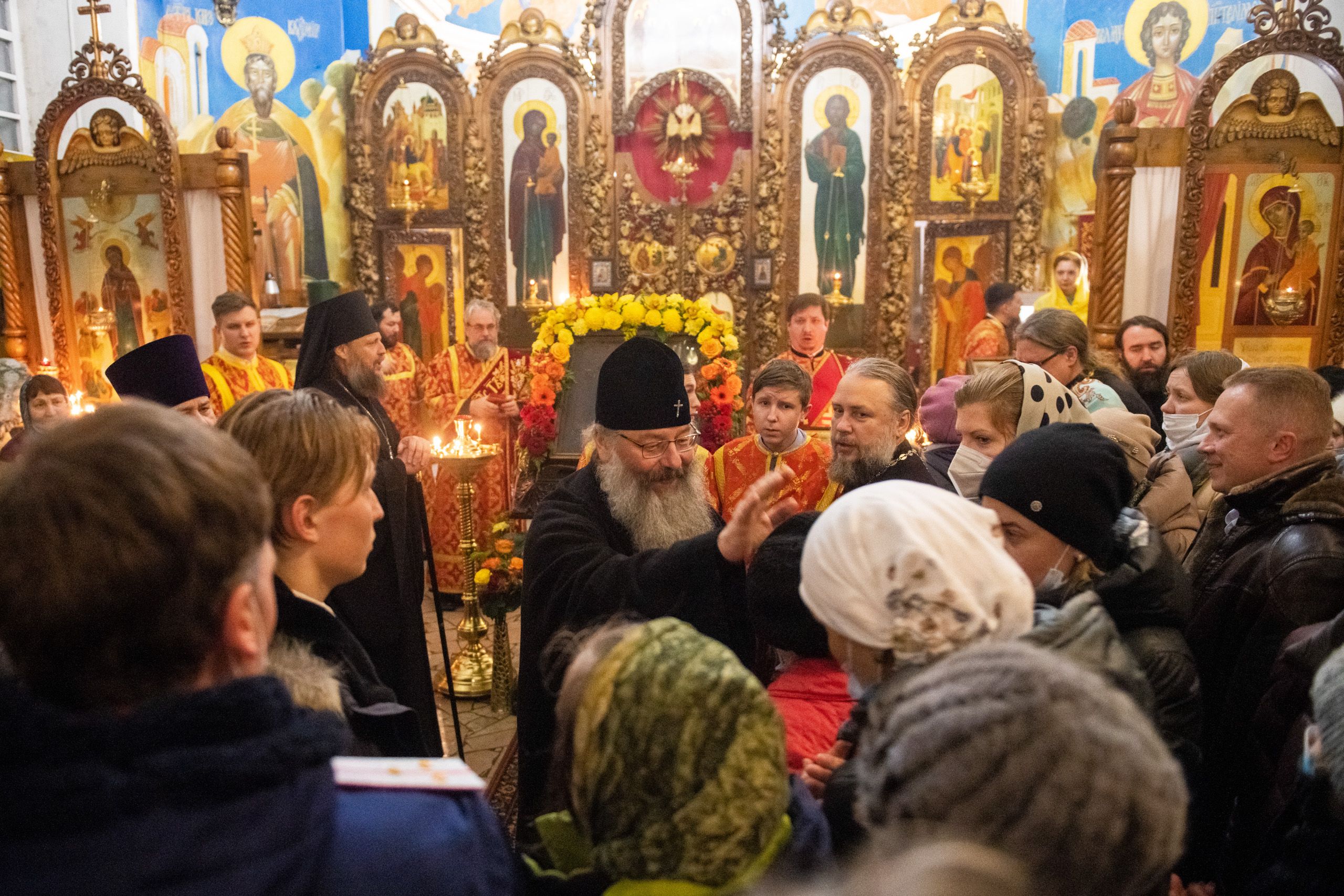 Вечером 13 ноября 2021 года, в канун Недели 21-й по Пятидесятнице, дня памяти святых бессребреников и чудотворцев Космы и Дамиана, митрополит Казанский и Татарстанский Кирилл и викарий Киевской епархии епископ Макаровский Гедеон совершили всенощное бдение в Космо-Дамиановском храме города Набережные Челны.