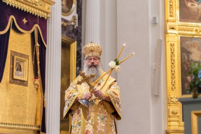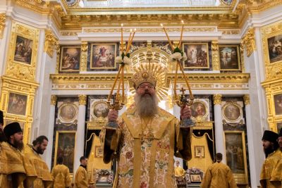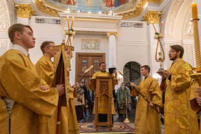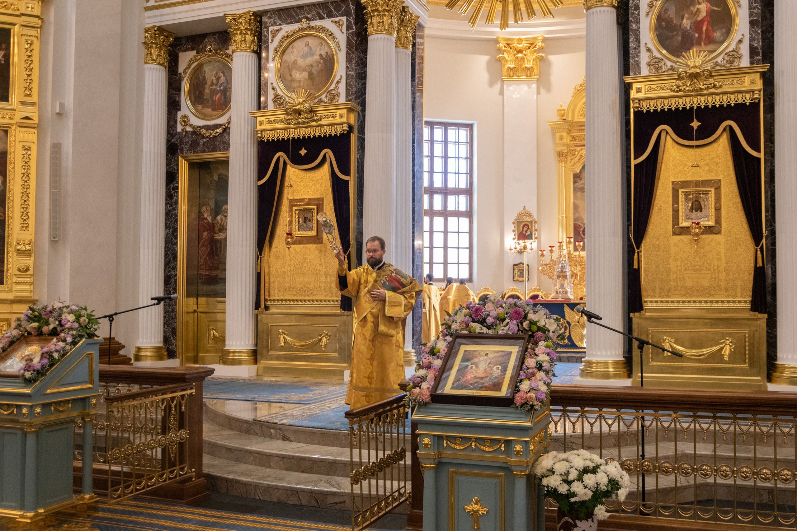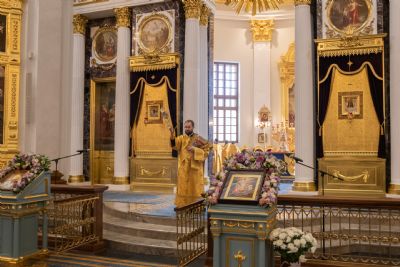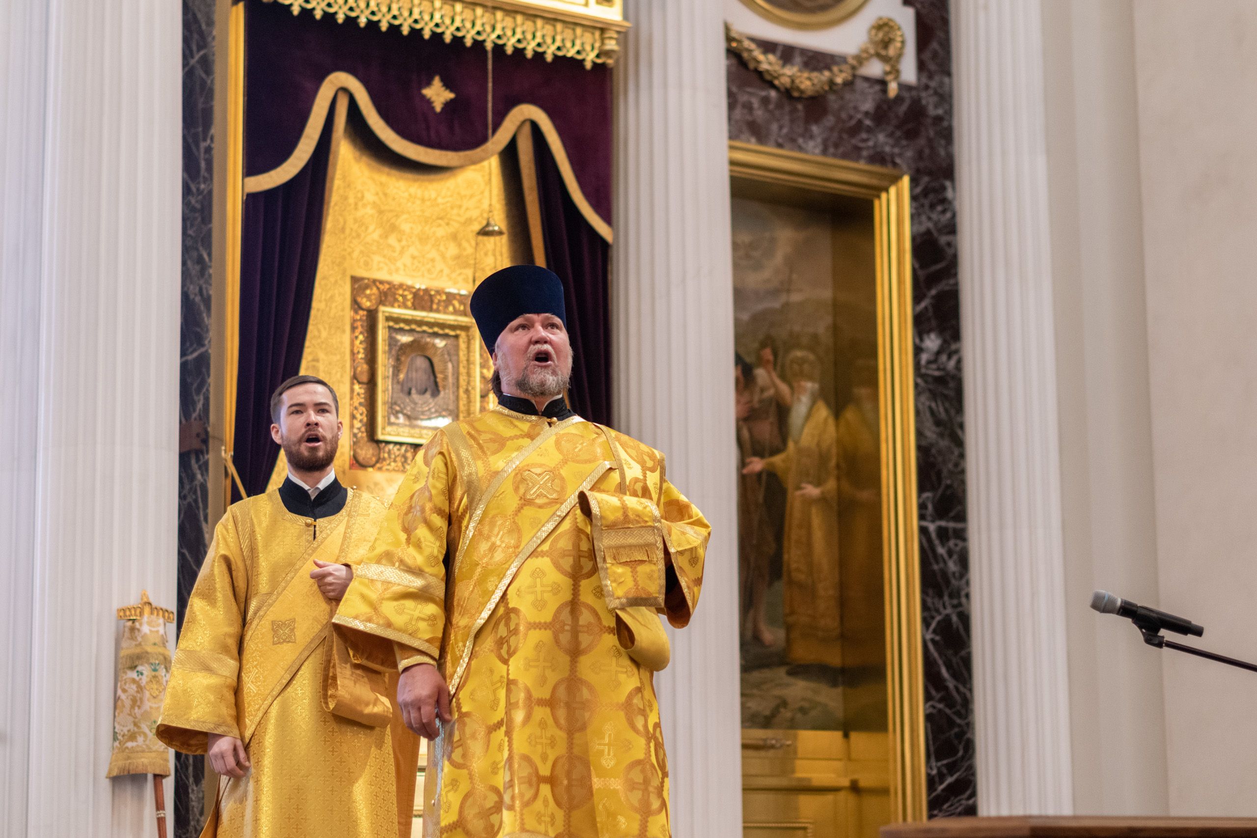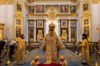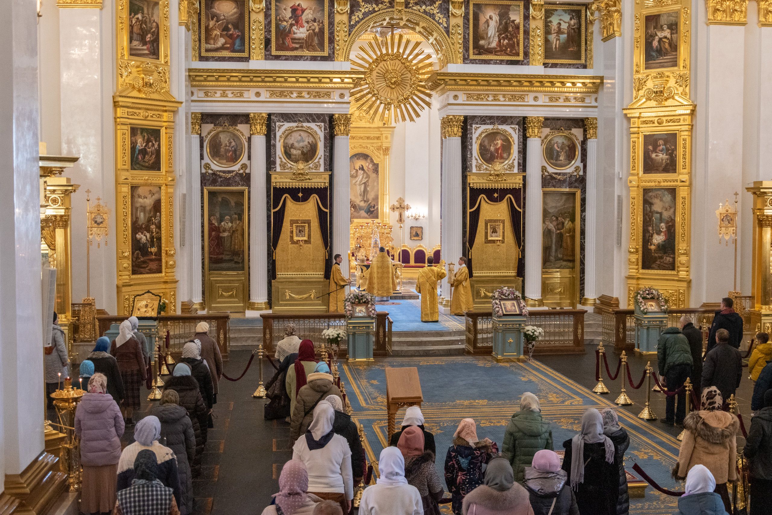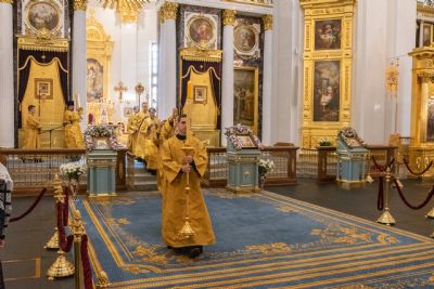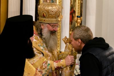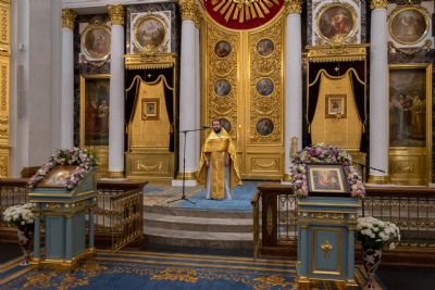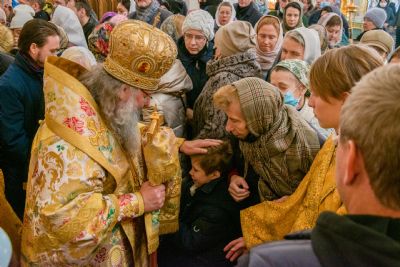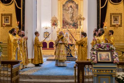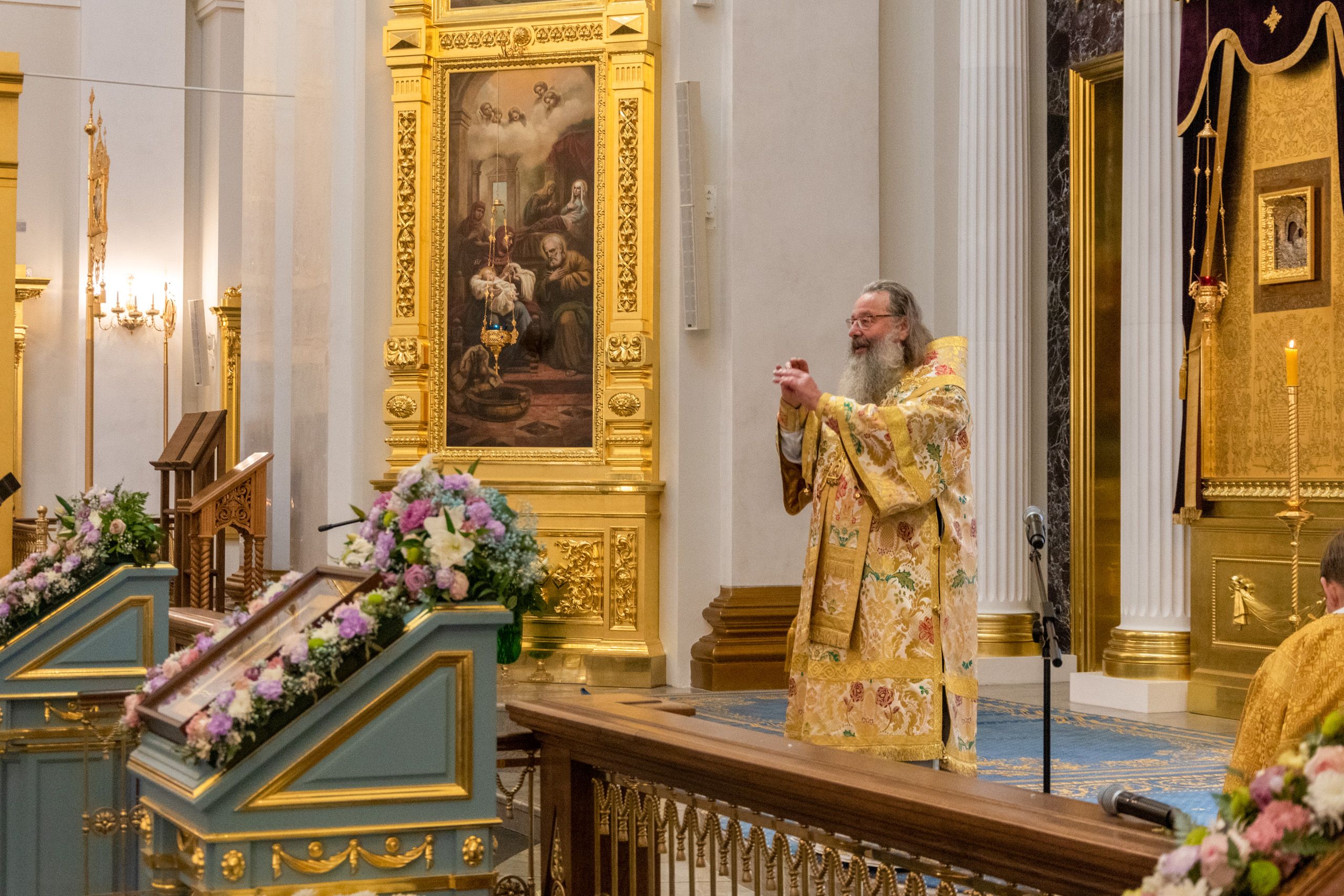 Богослужебные песнопения исполнил архиерейский смешанный хор под управлением Марины Литвиненко. По запричастном стихе проповедь произнёс иерей Кирилл Поморцев. В завершение богослужения архипастырь и священнослужители совершили славление перед Казанским образом Божией Матери.
