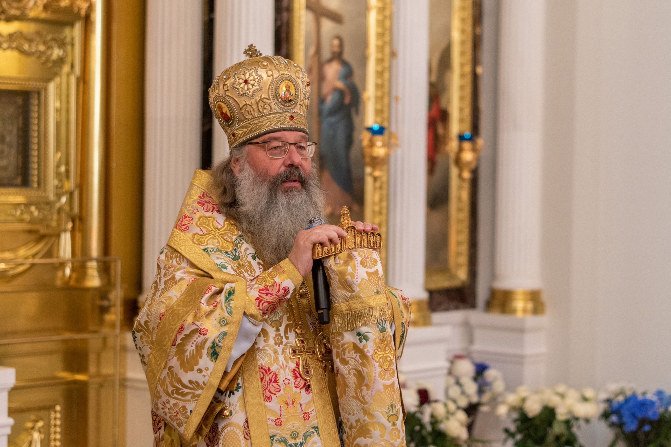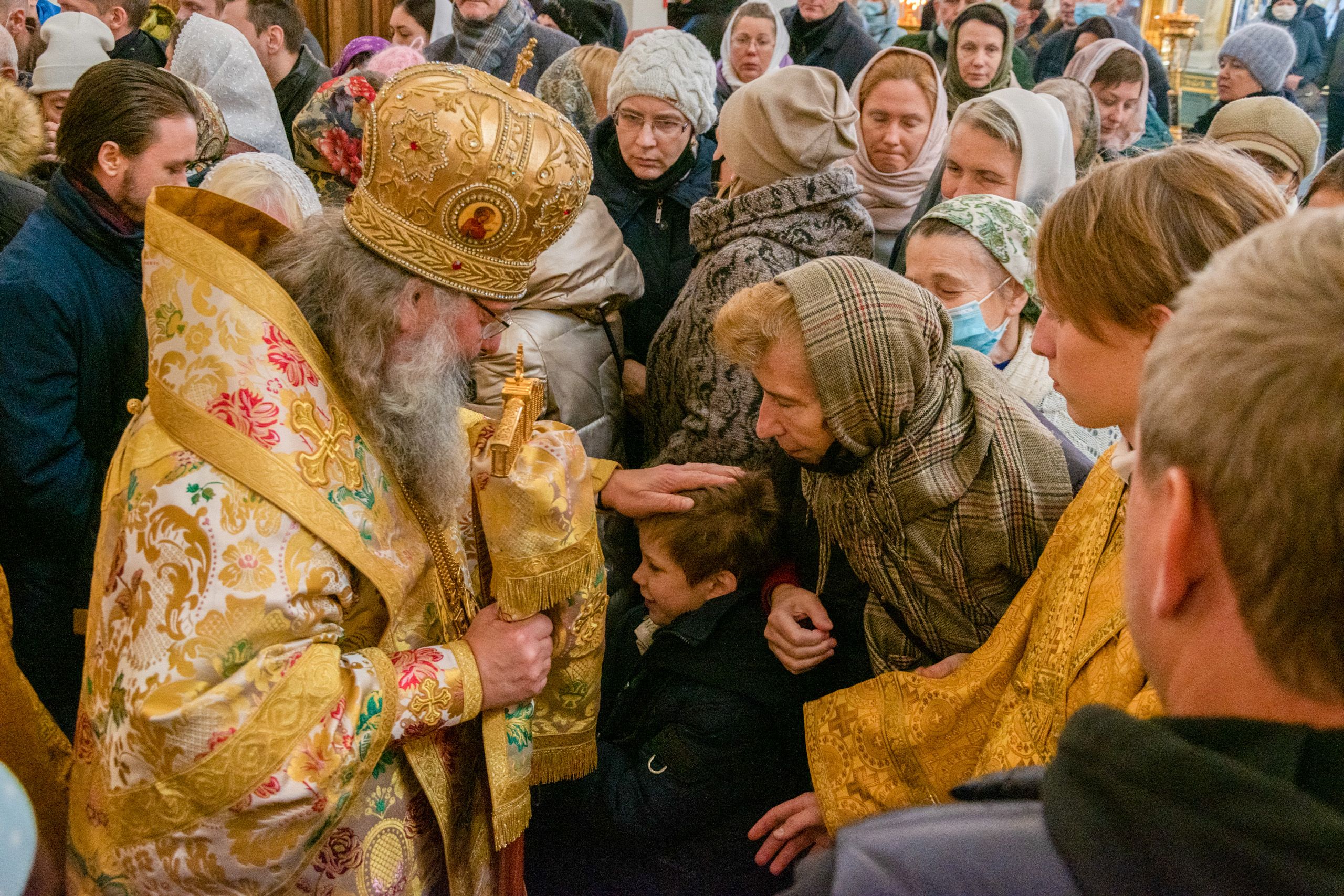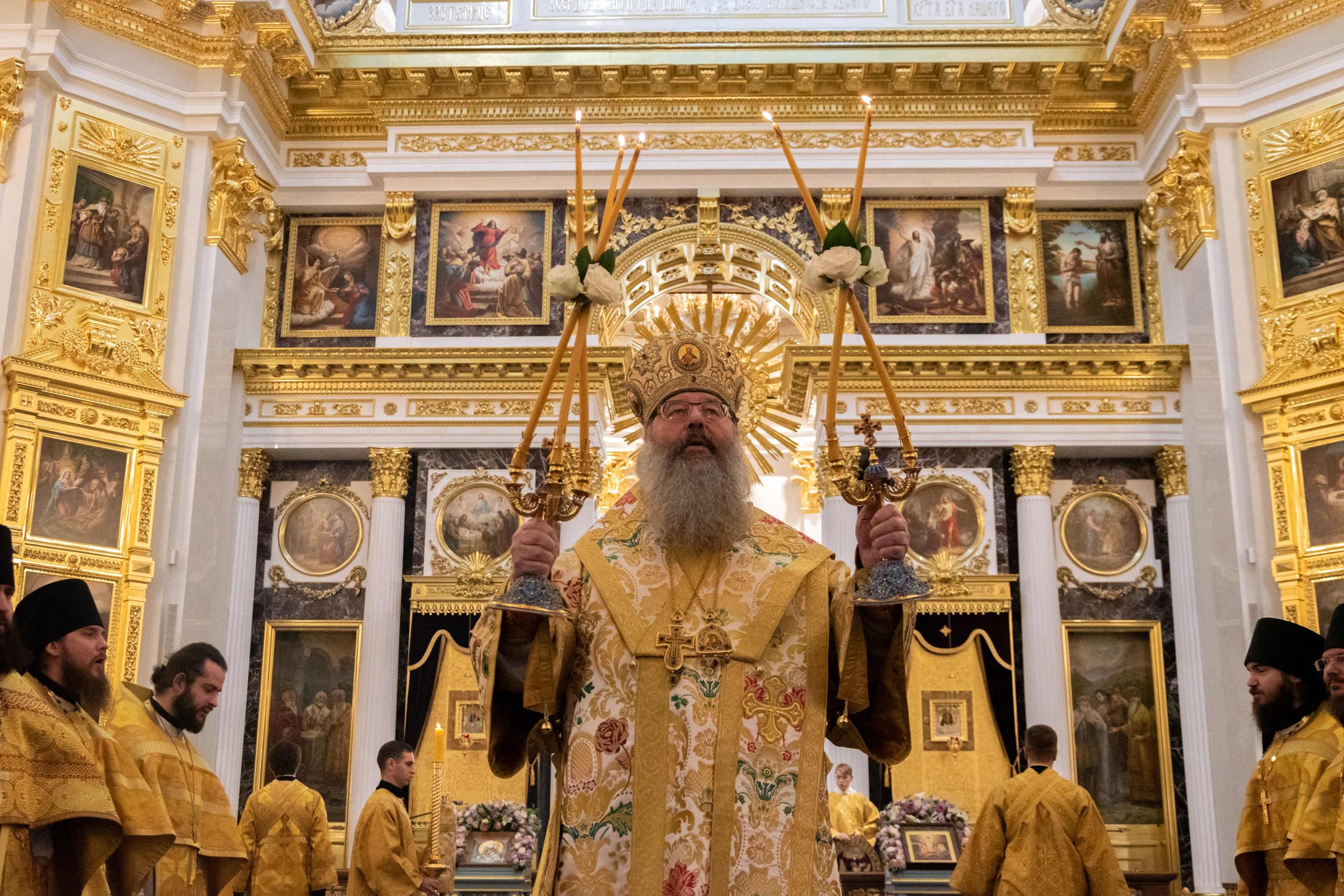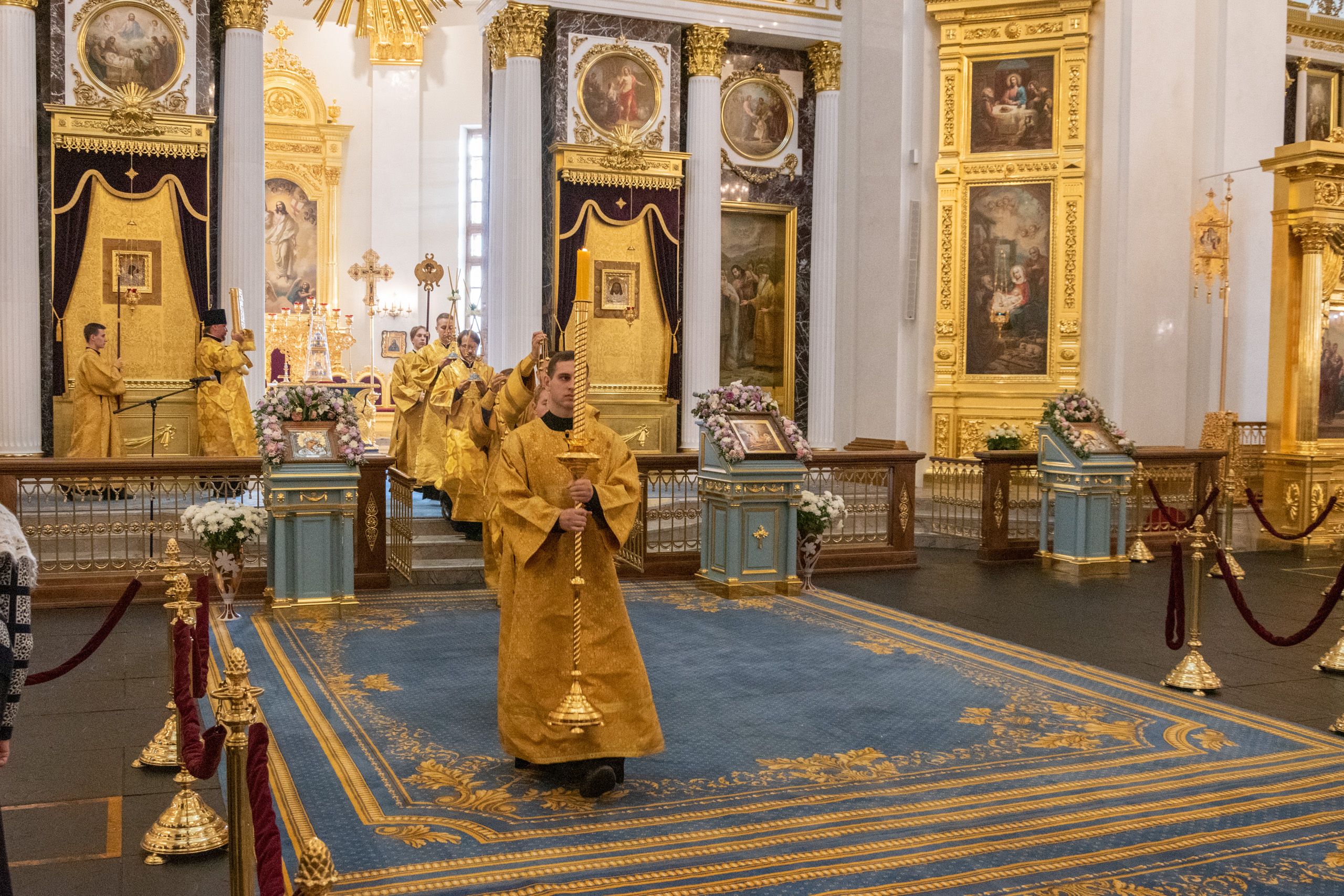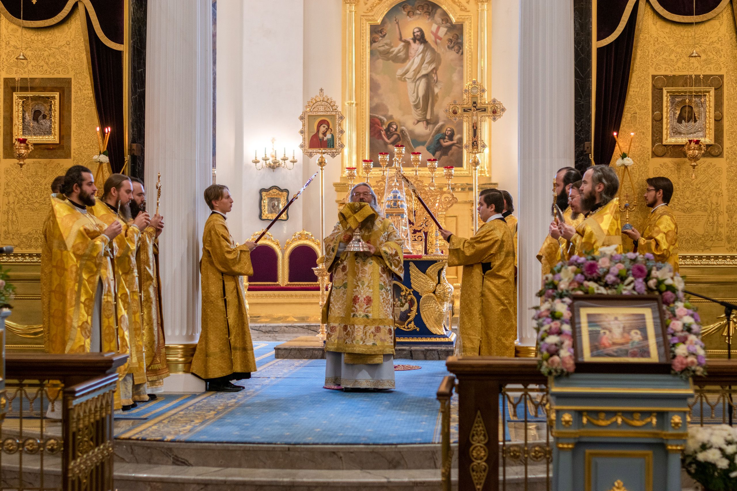 Богослужебные песнопения исполнил архиерейский смешанный хор под управлением Марины Литвиненко. По запричастном стихе проповедь произнёс иерей Кирилл Поморцев. В завершение богослужения архипастырь и священнослужители совершили славление перед Казанским образом Божией Матери.